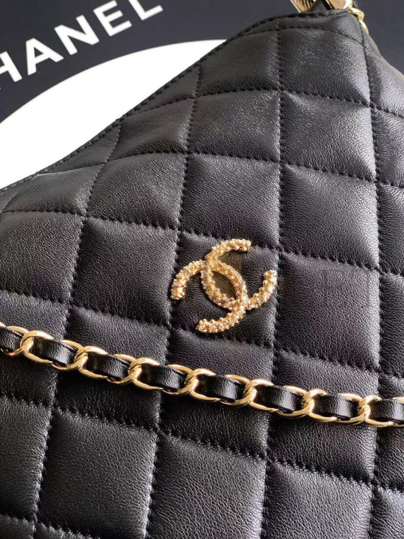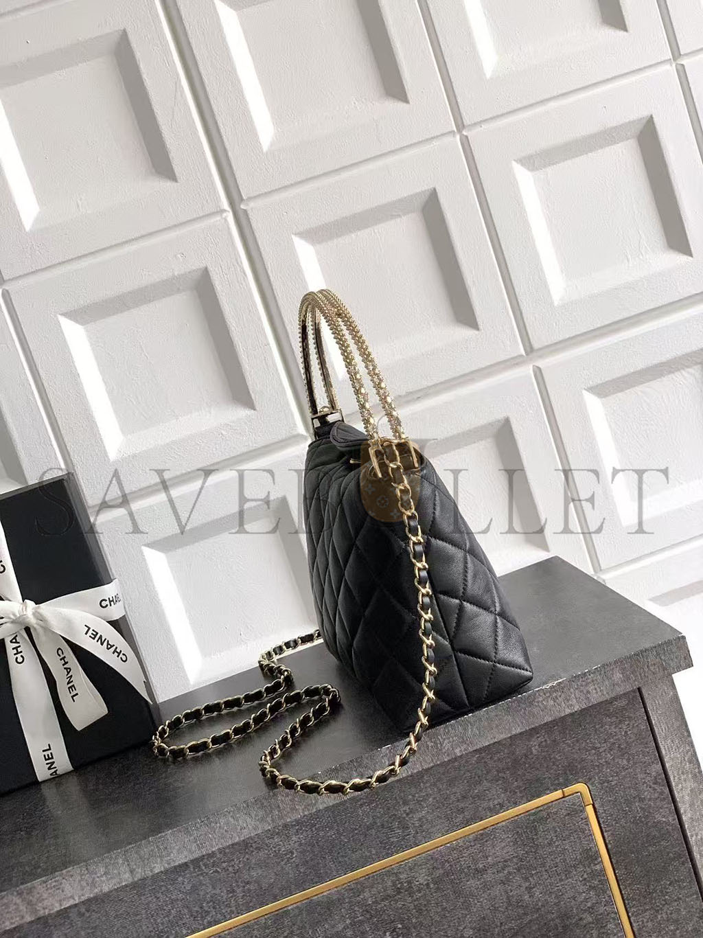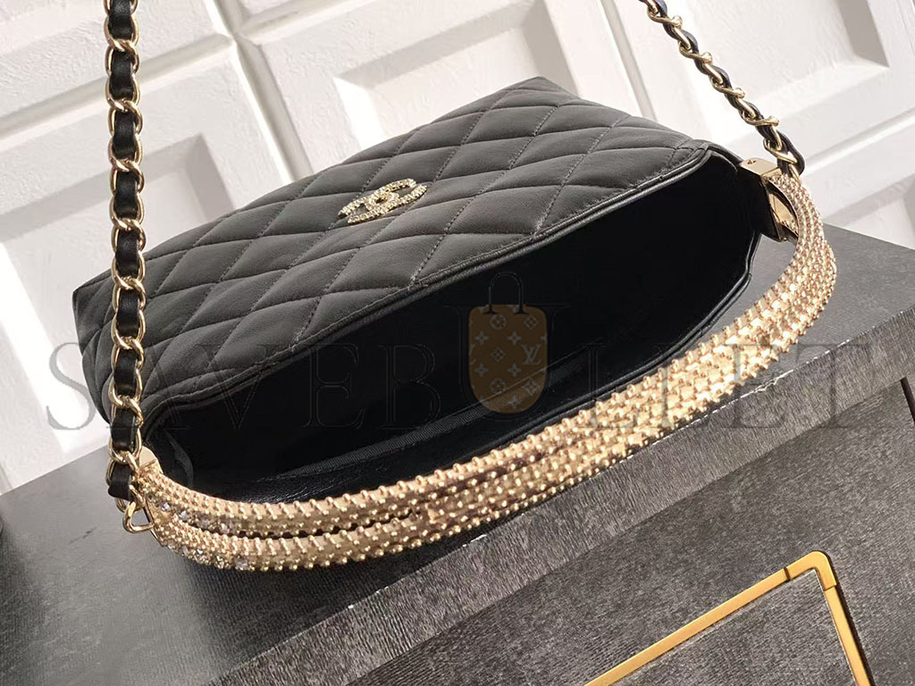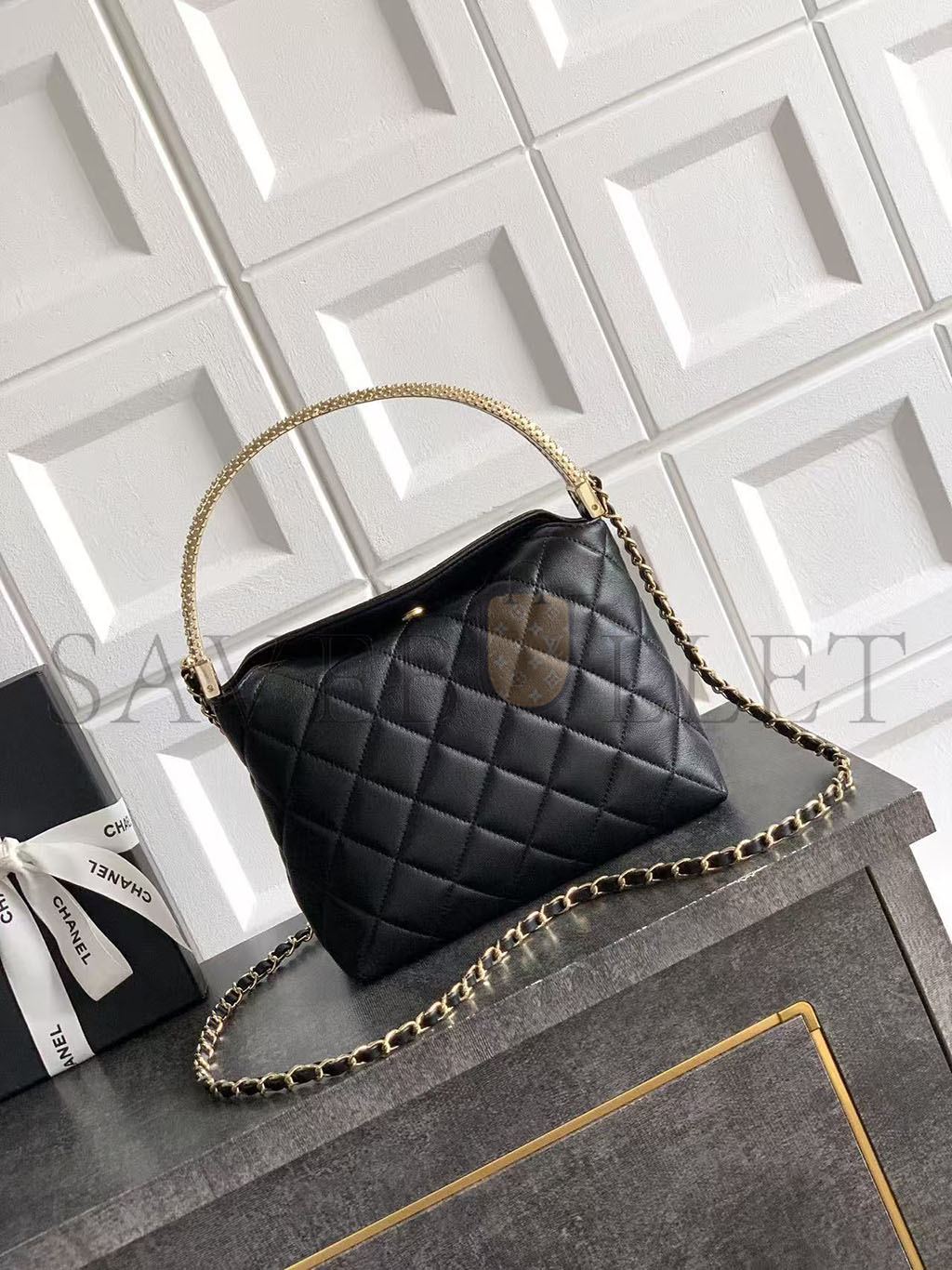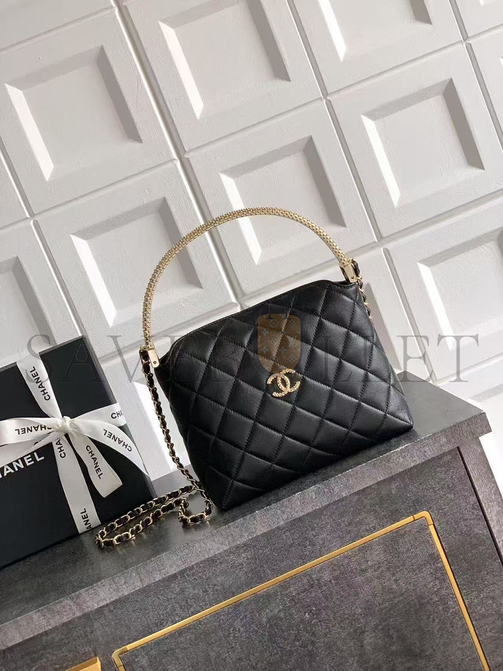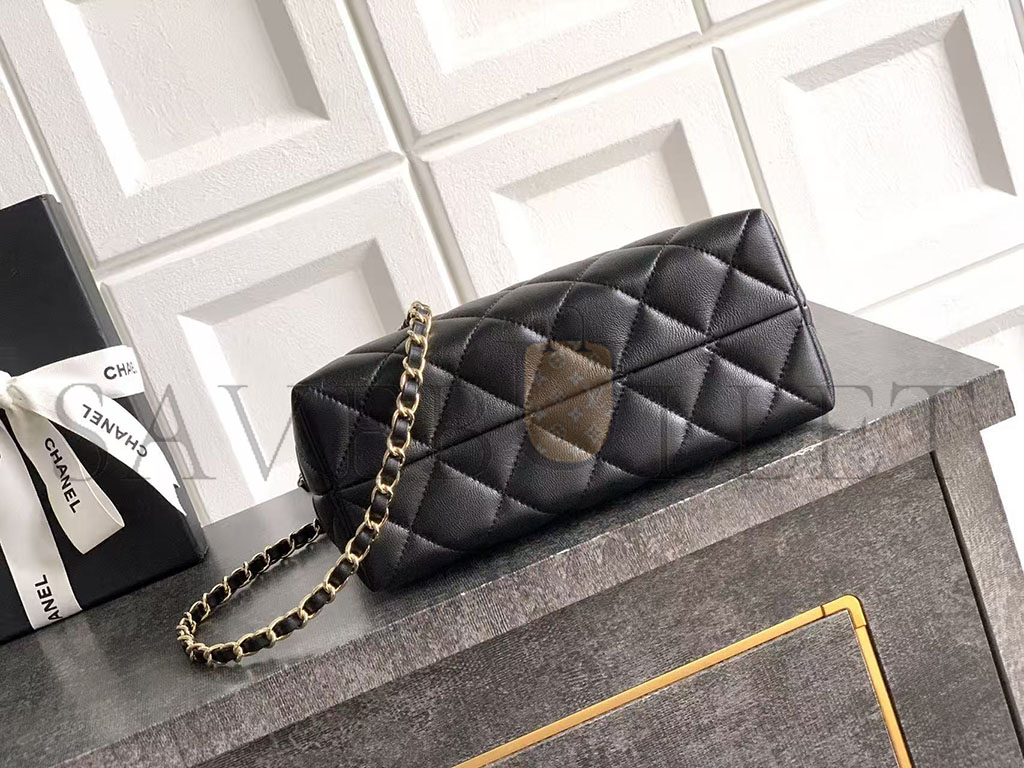 CHANEL 25B BLACK GOLD RHINESTONE HANDLE LUNCH BOX BAG (17*9.5*8cm)