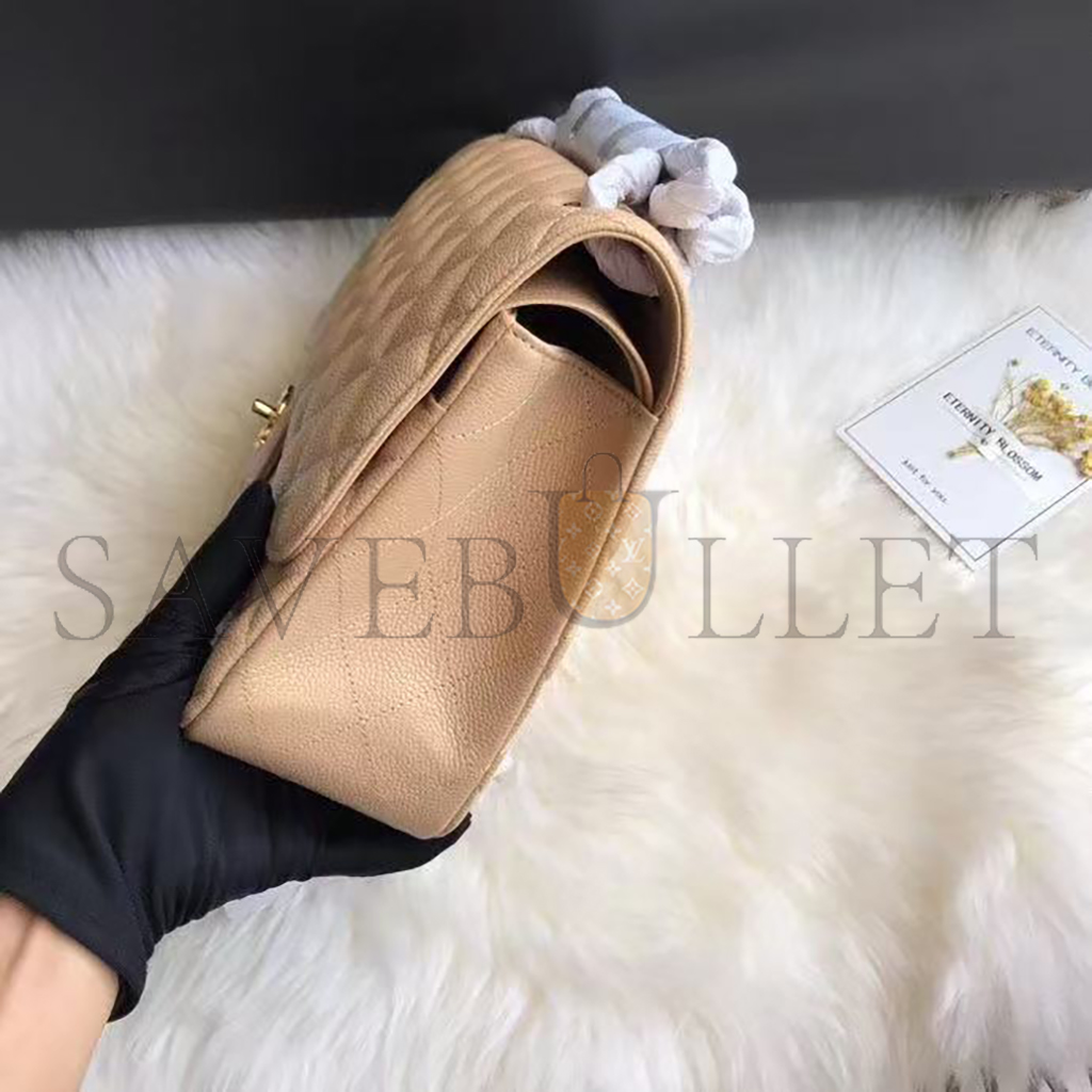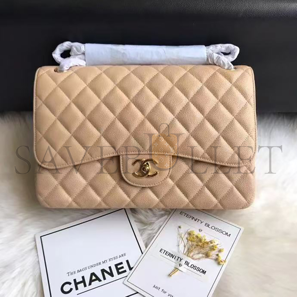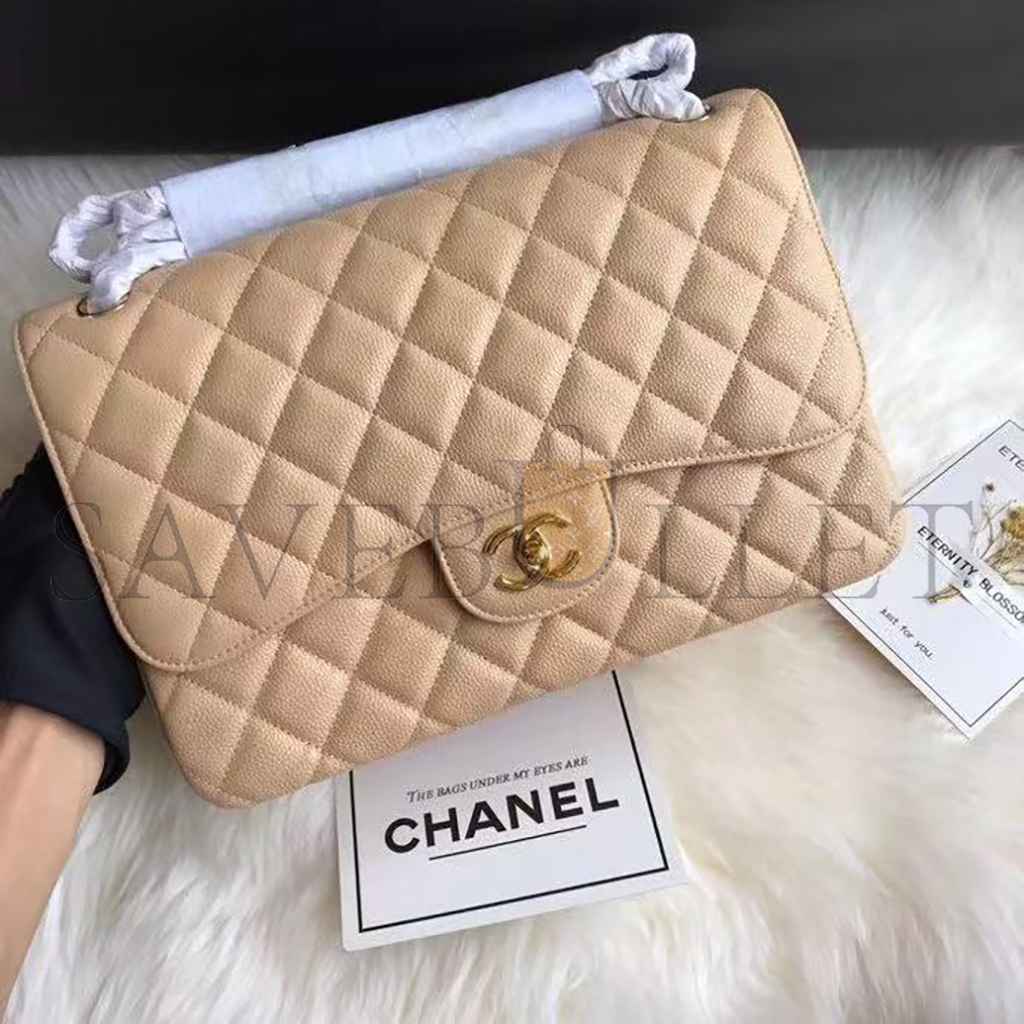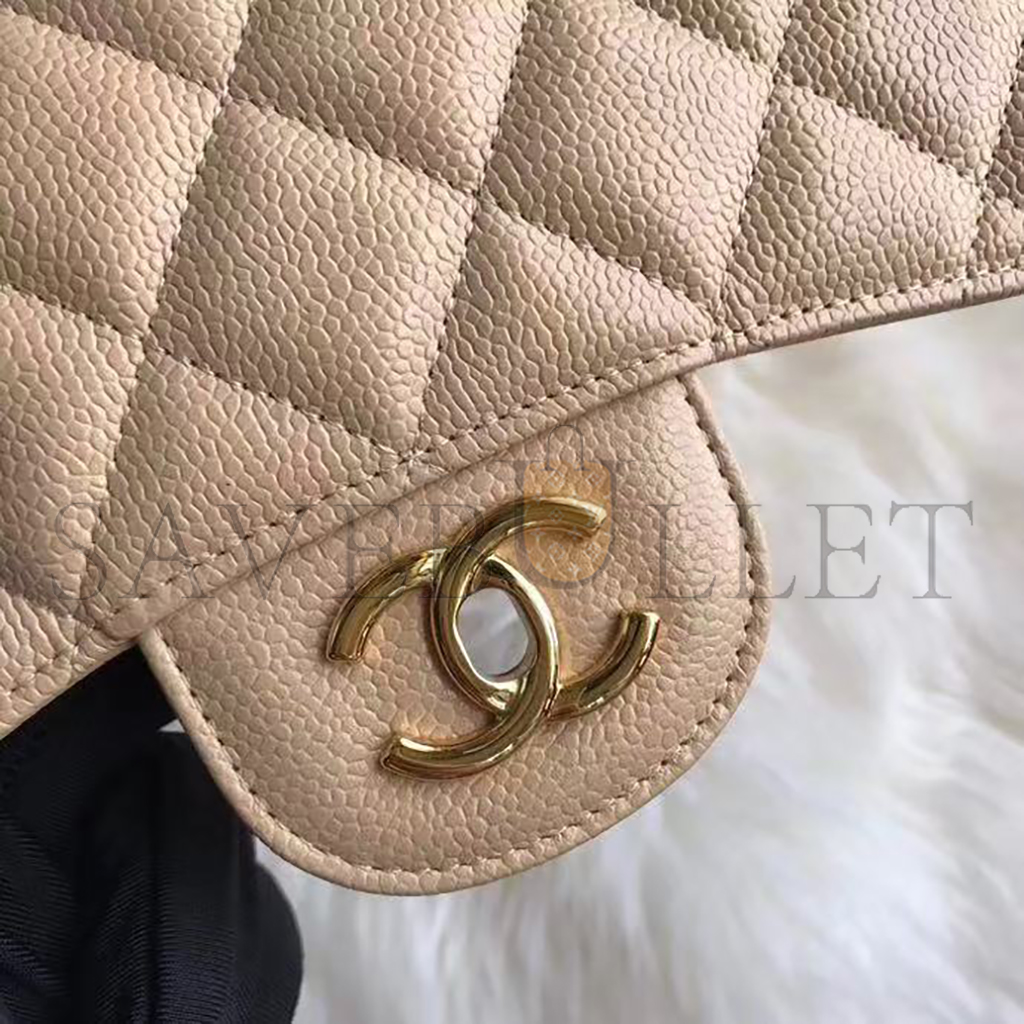 CHANEL JUMBO CLASSIC DOUBLE FLAP BAG BEIGE CAVIAR GOLD HARDWARE (30*21*9cm)