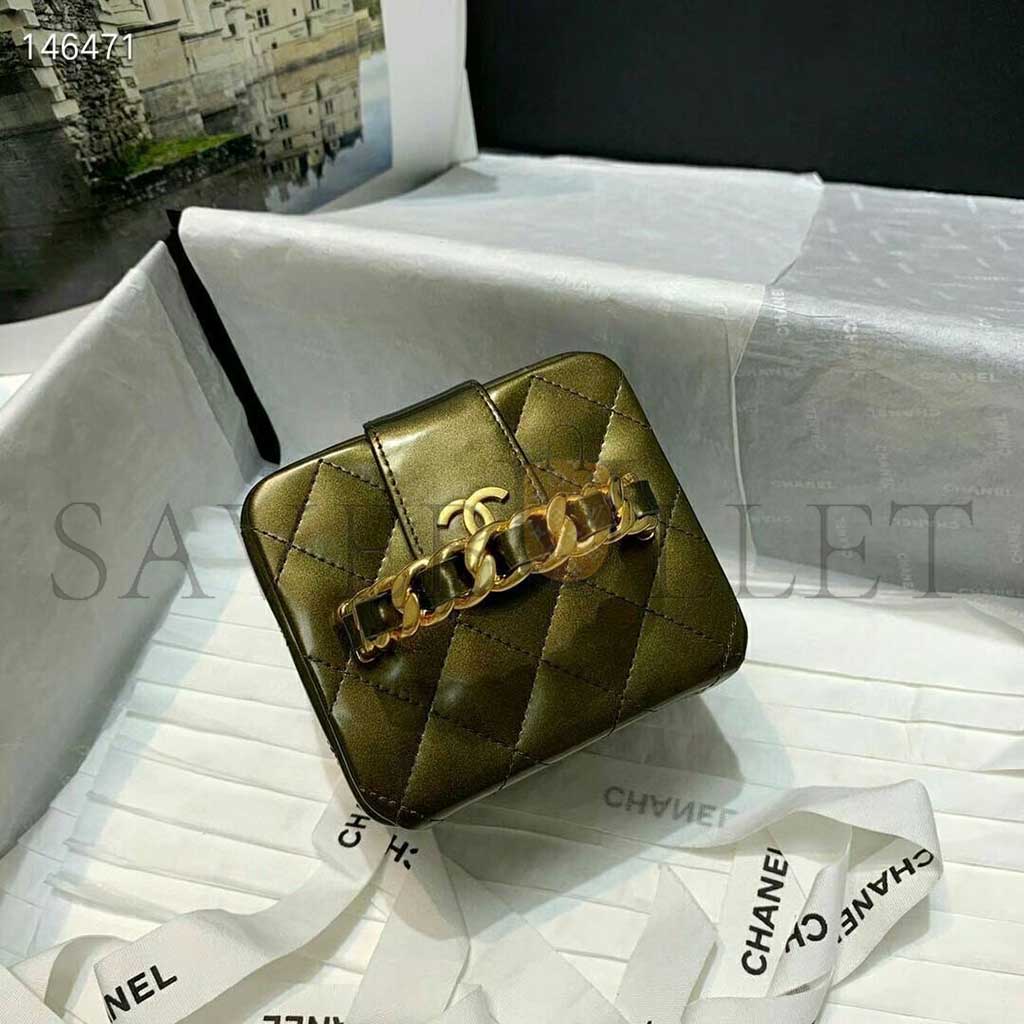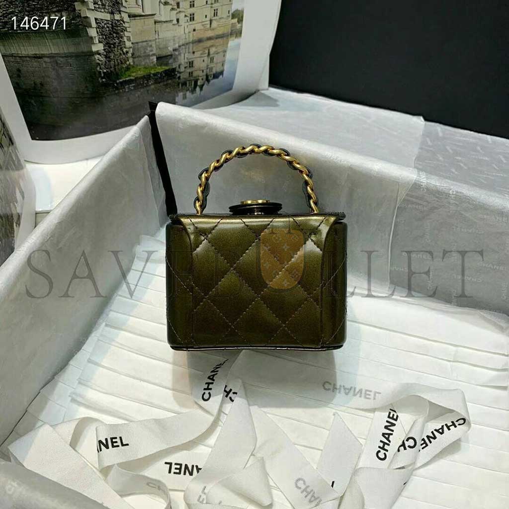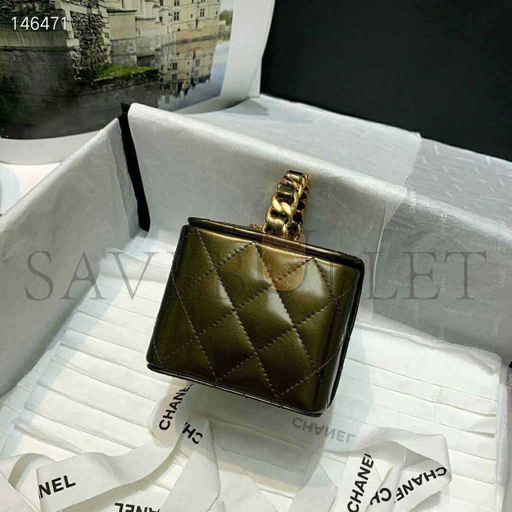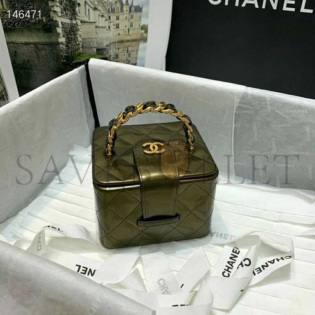 CHANEL MINI CC VANITY CASE OLIVE GREEN IRIDESCENT QUILTED PATENT LEATHER A2227 (11*9.5*8.5cm)