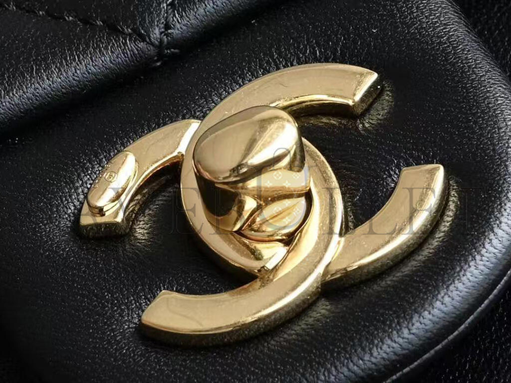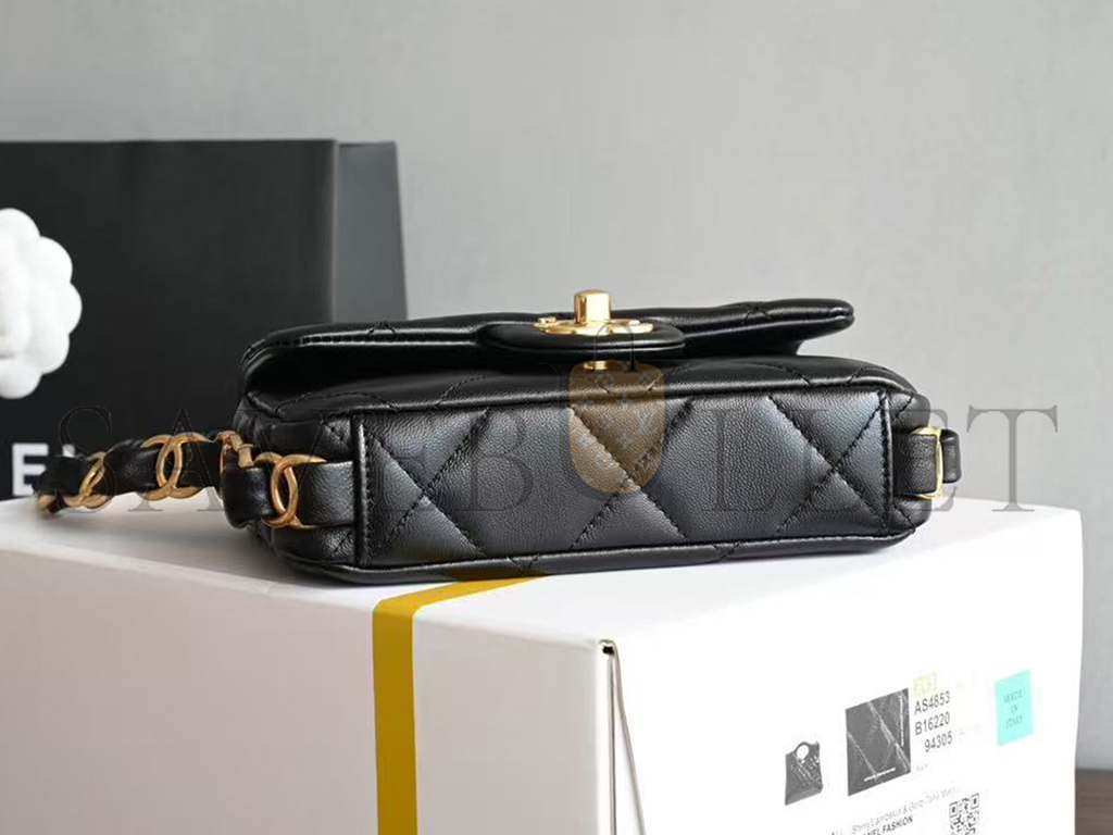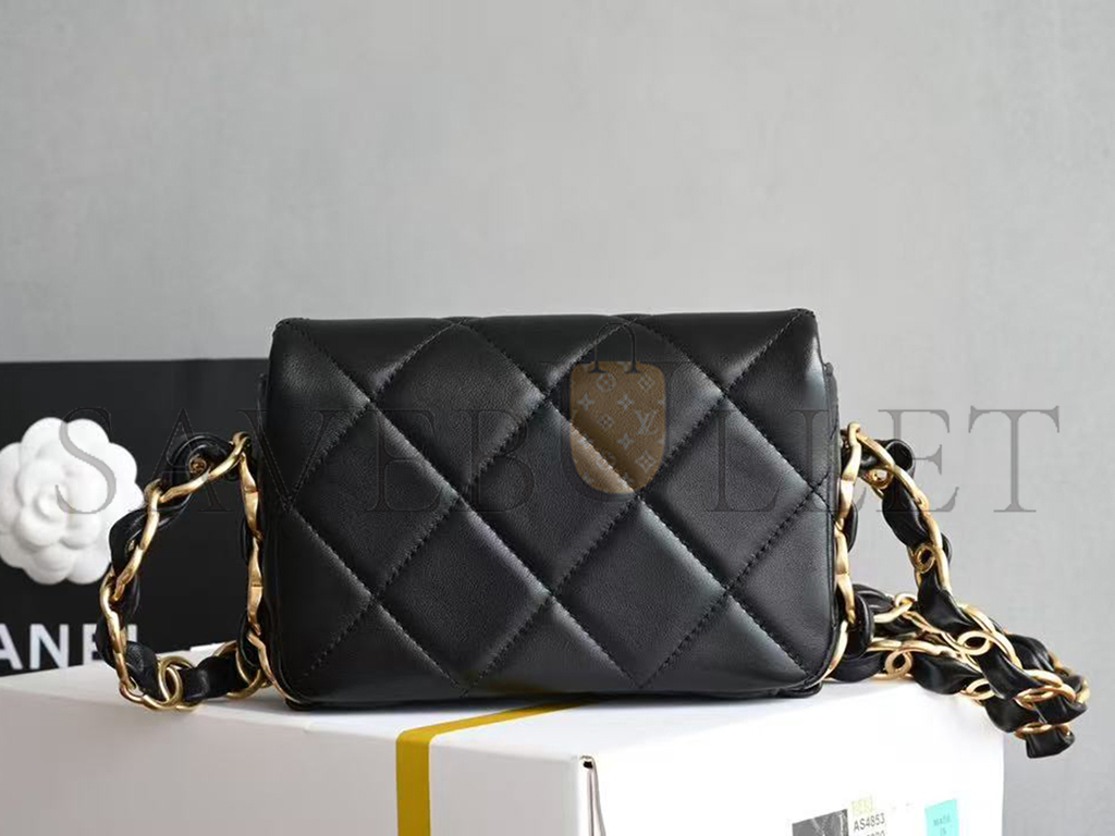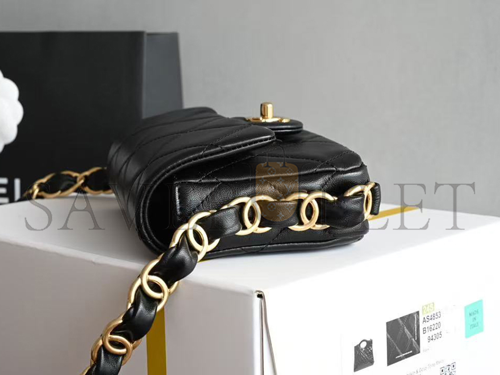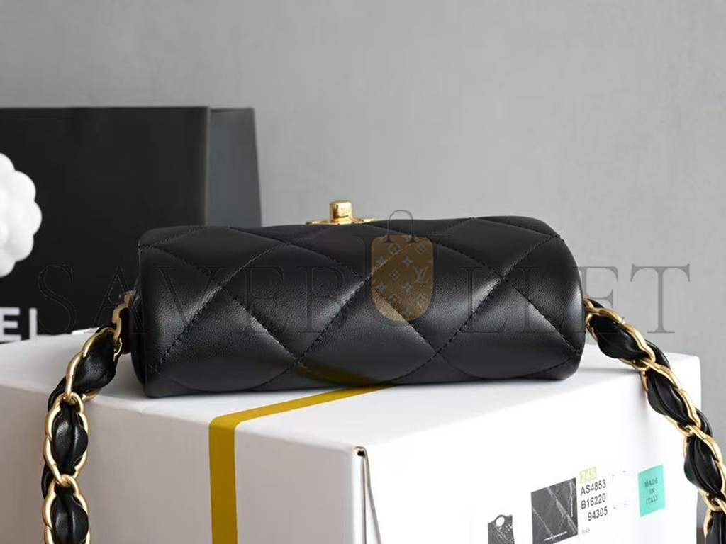 CHANEL 24K FLAP SHOULDER BAG WITH CHUNKY CHAIN STRAP LAMBSKIN AS5175 (17*11*4cm)