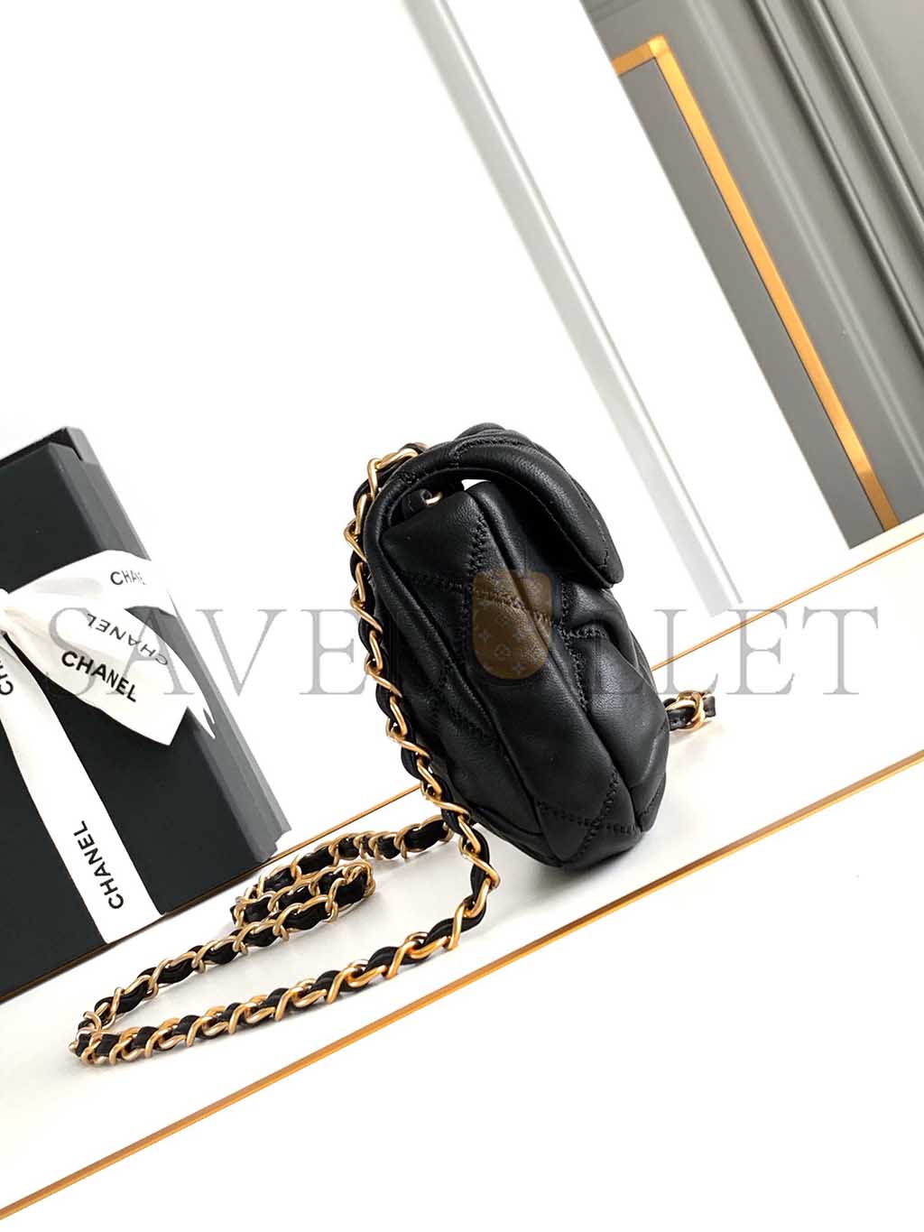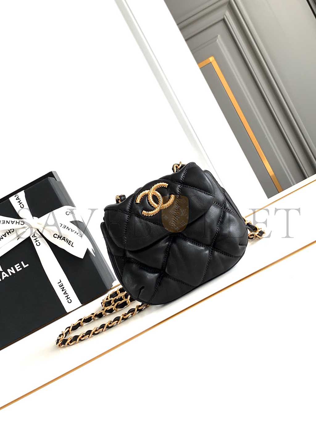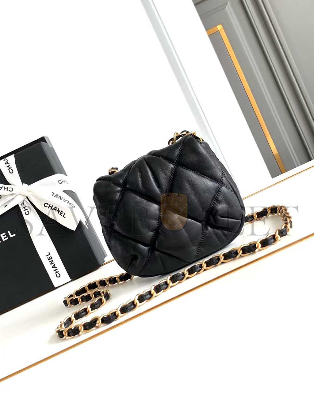 CHANEL BLACK MINI QUILTED BUBBLE CROSSBODY BAG (14*11*5cm)