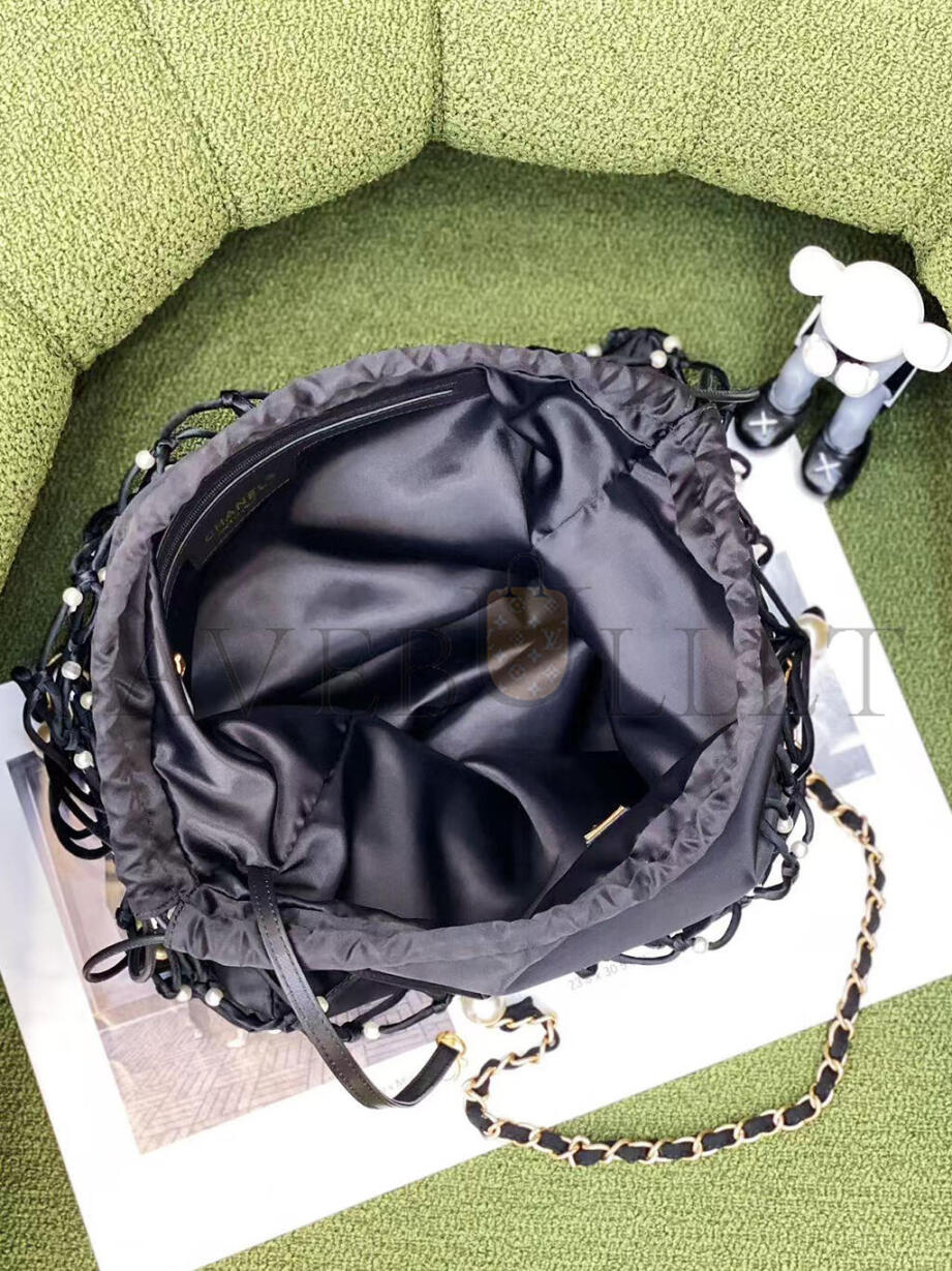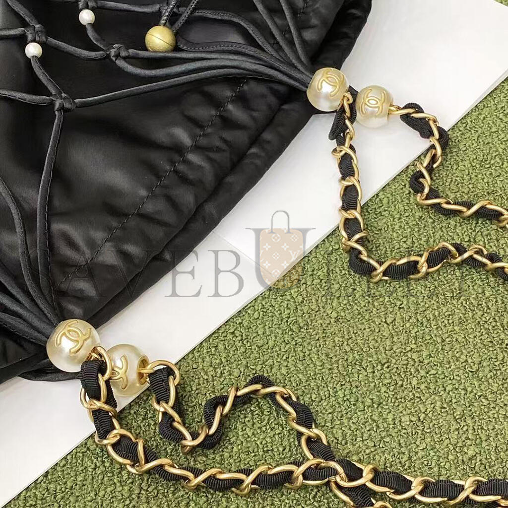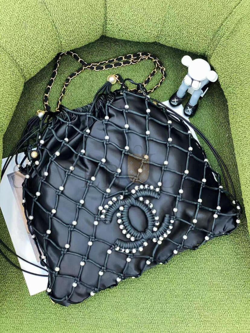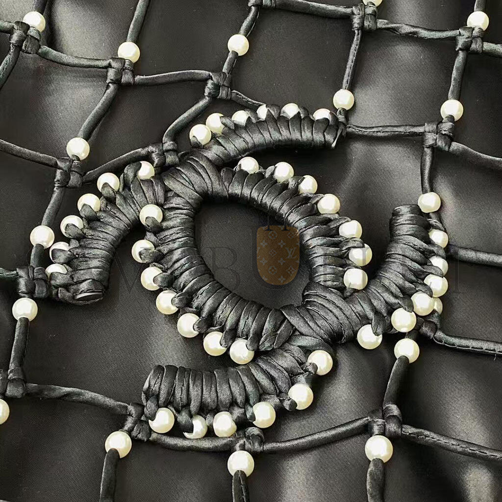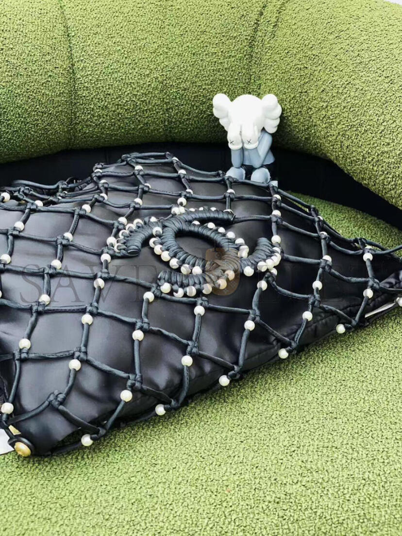 CHANEL NYLON PEARL COCO BEACH NET TOTE BLACK AS29384 (39*33*5cm)