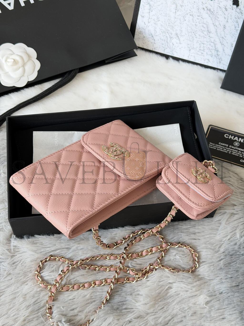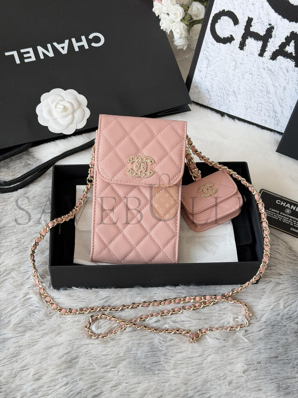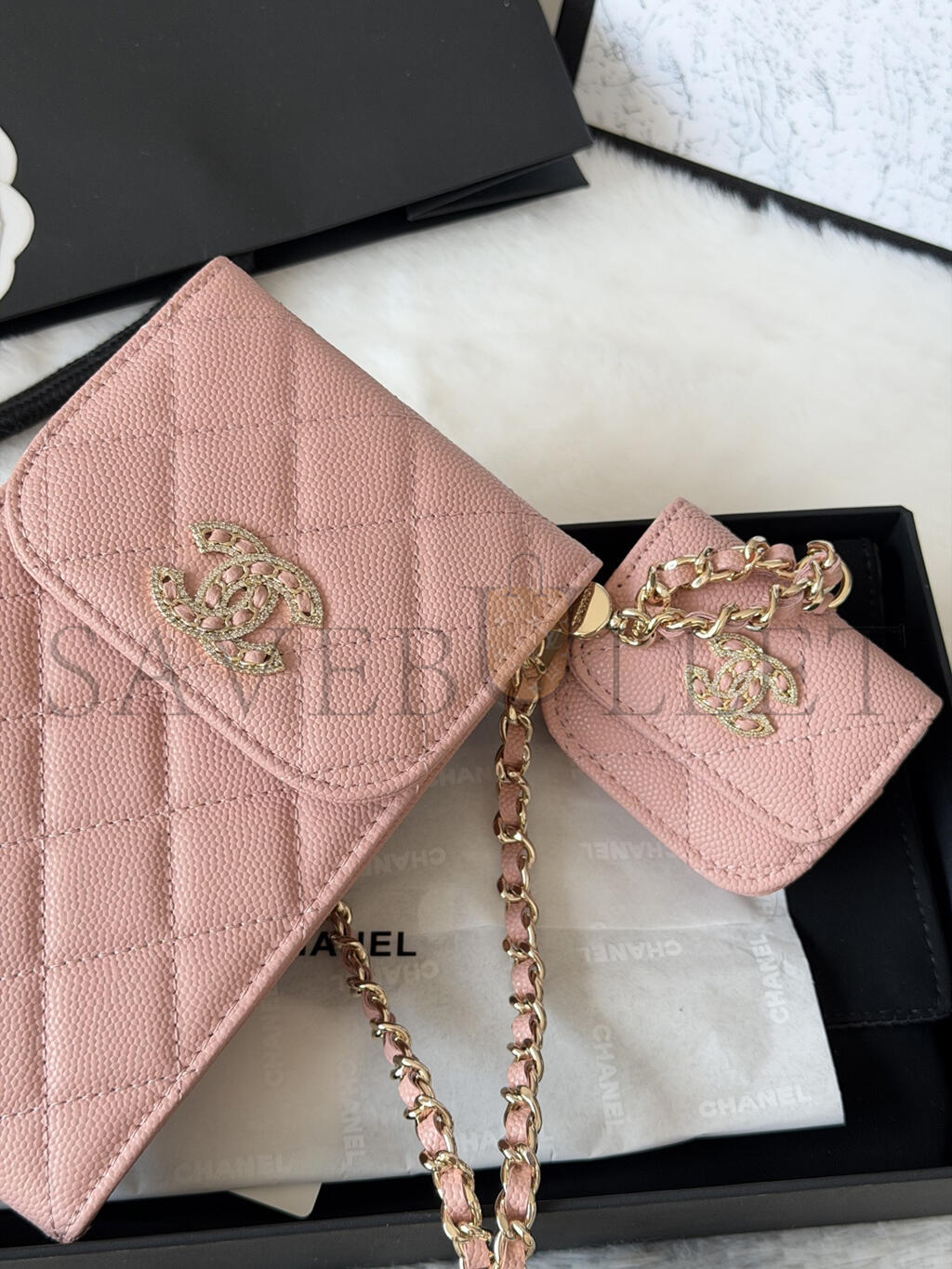 CHANEL 22S PHONE CASE BAG WITH AIRPOD CASE IN PINK CAVIAR LEATHER AP2742 (16.5*10cm)