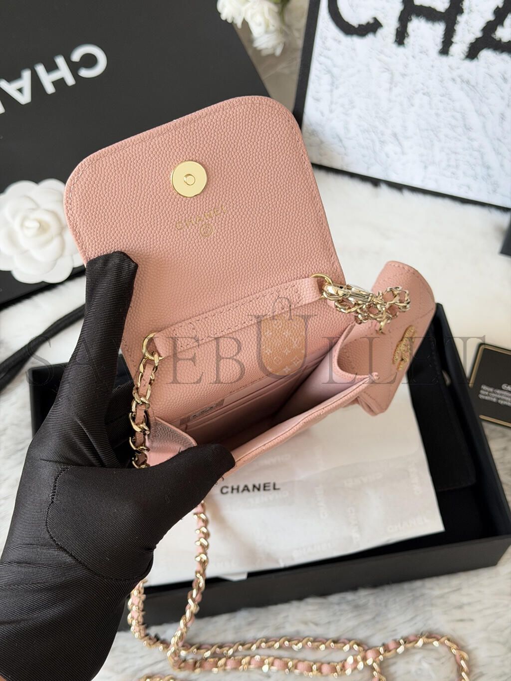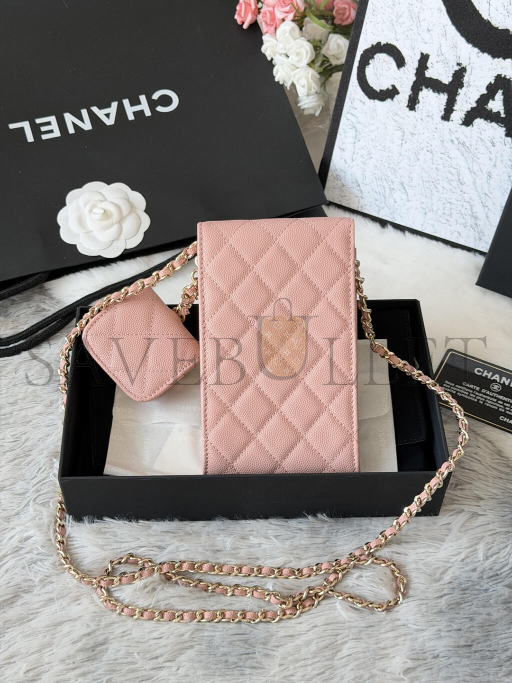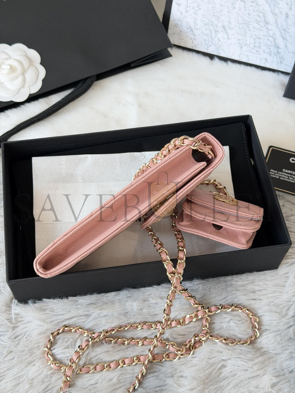 CHANEL 22S PHONE CASE BAG WITH AIRPOD CASE IN PINK CAVIAR LEATHER AP2742 (16.5*10cm)
