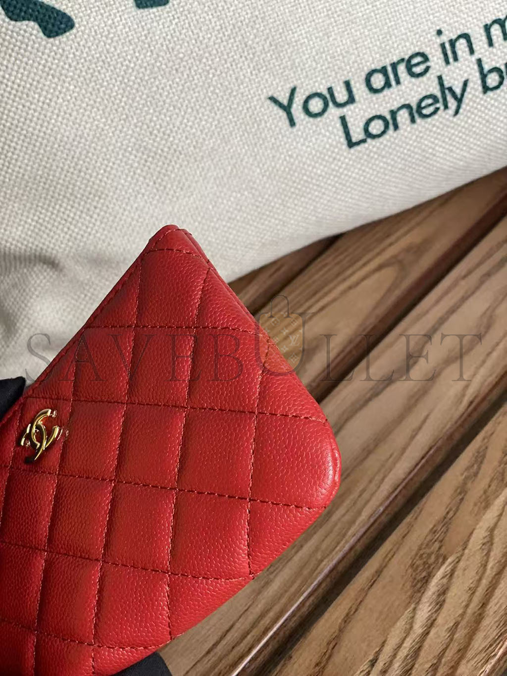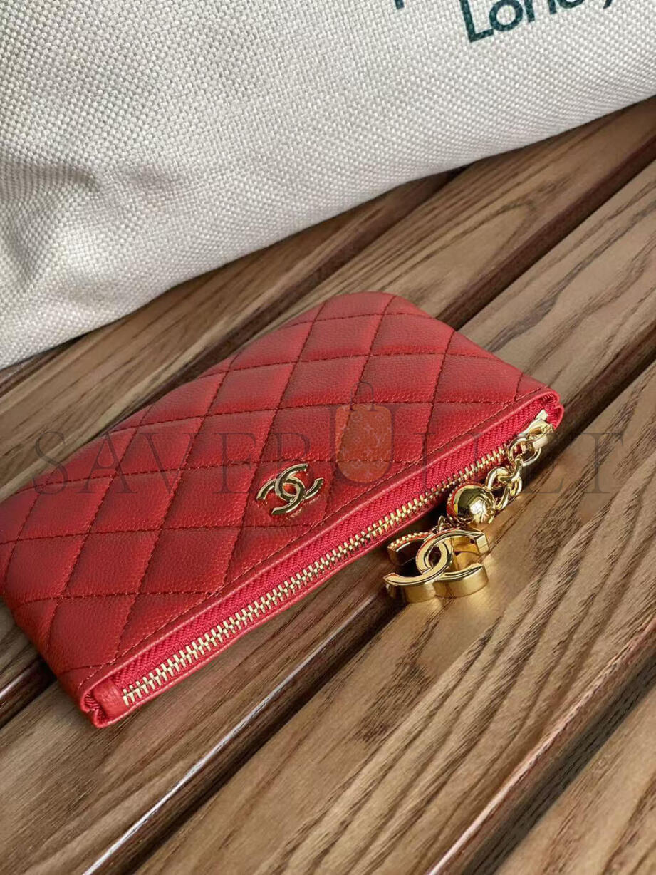 CHANEL RED QUILTED CLASSIC ZIPPED COIN PURSE A50168 (15*9.5*0.5cm)