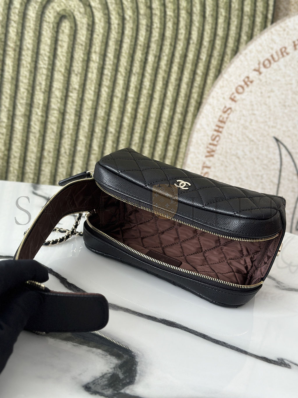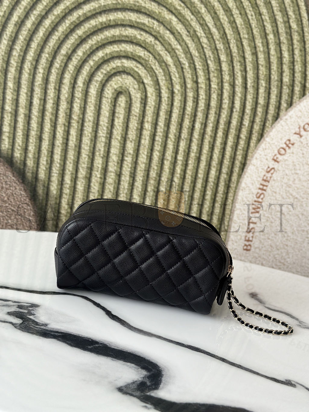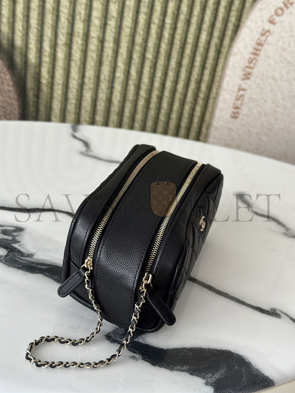 CHANEL CAVIAR QUILTED TOILETRY CASE WITH CHAIN BLACK (18*10*10cm)