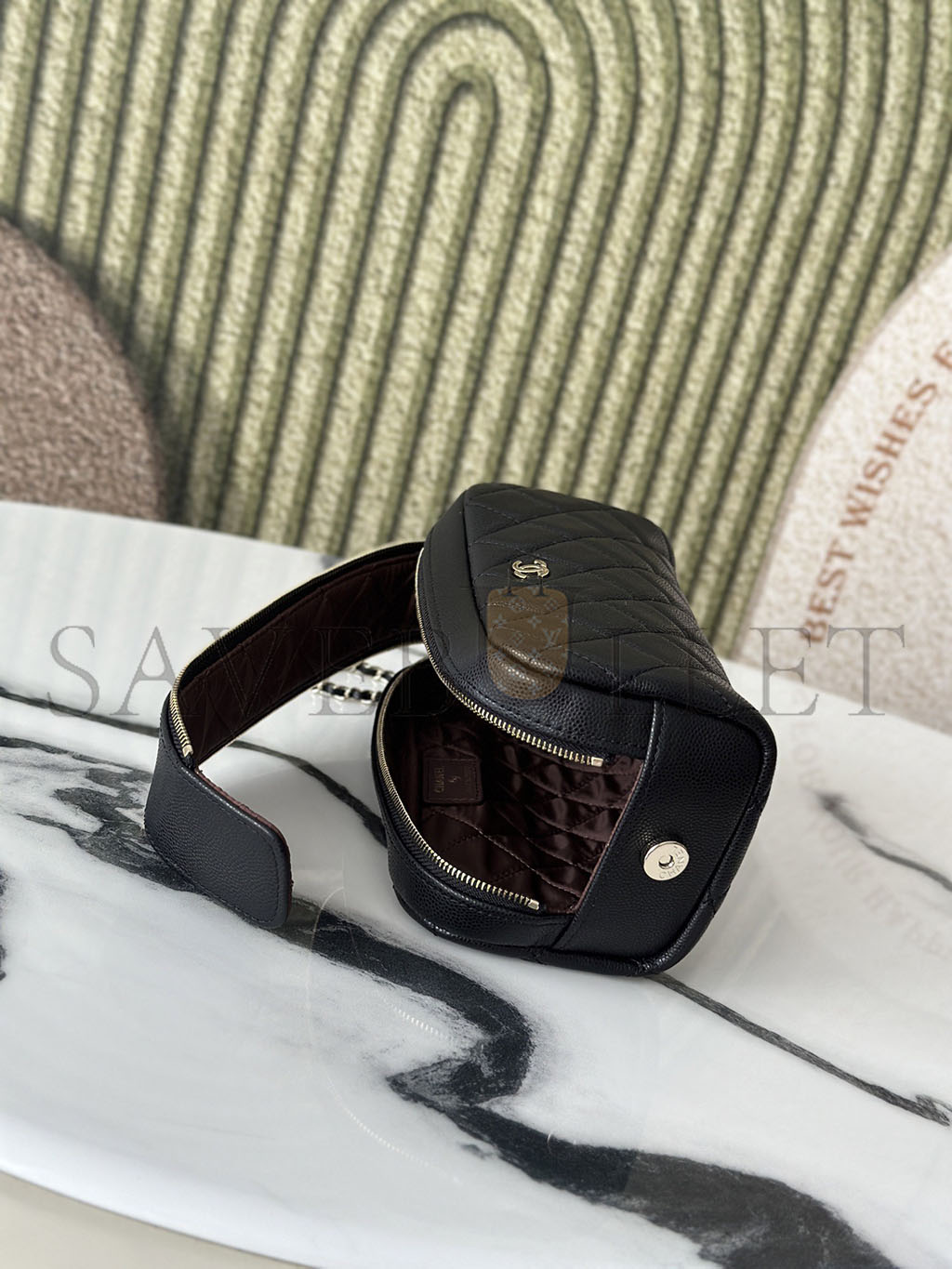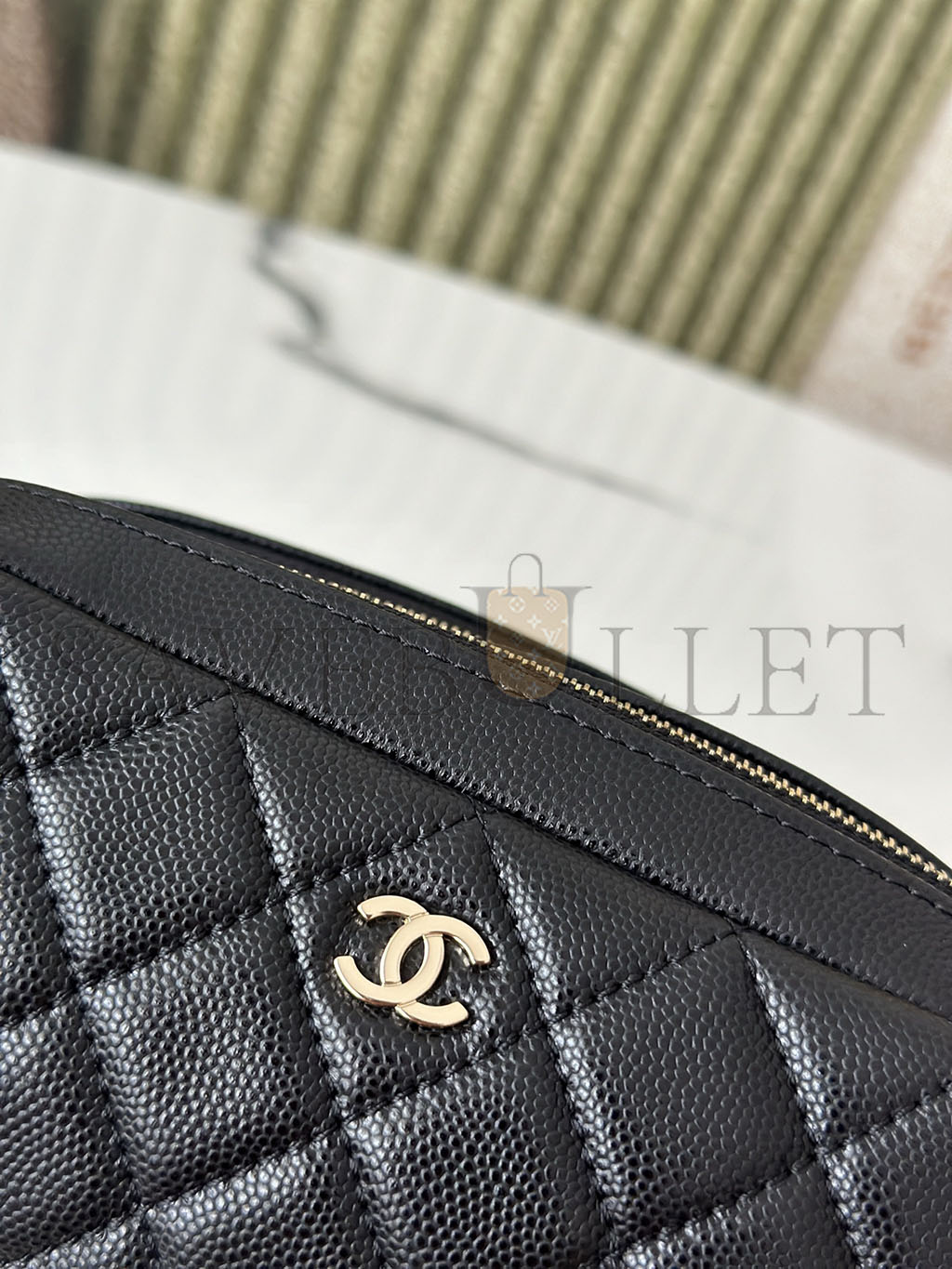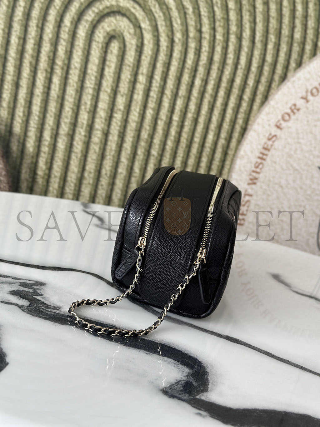 CHANEL CAVIAR QUILTED TOILETRY CASE WITH CHAIN BLACK (18*10*10cm)