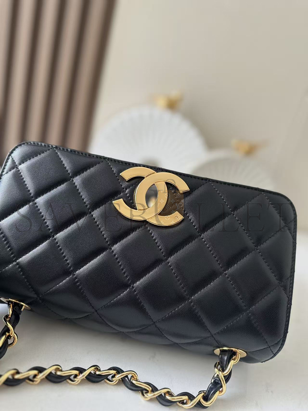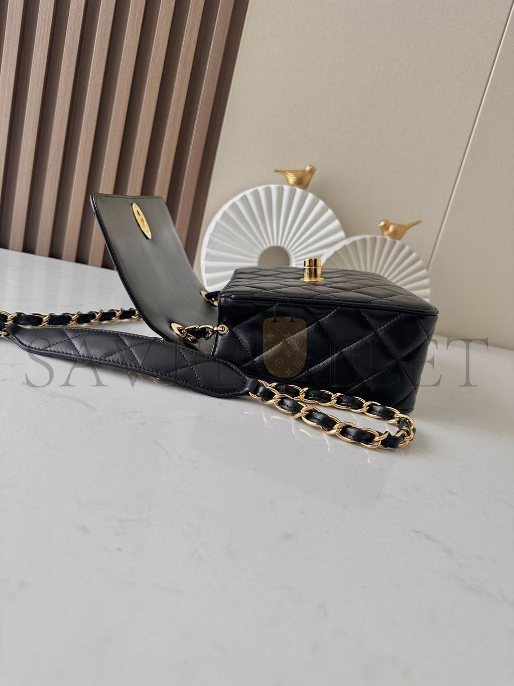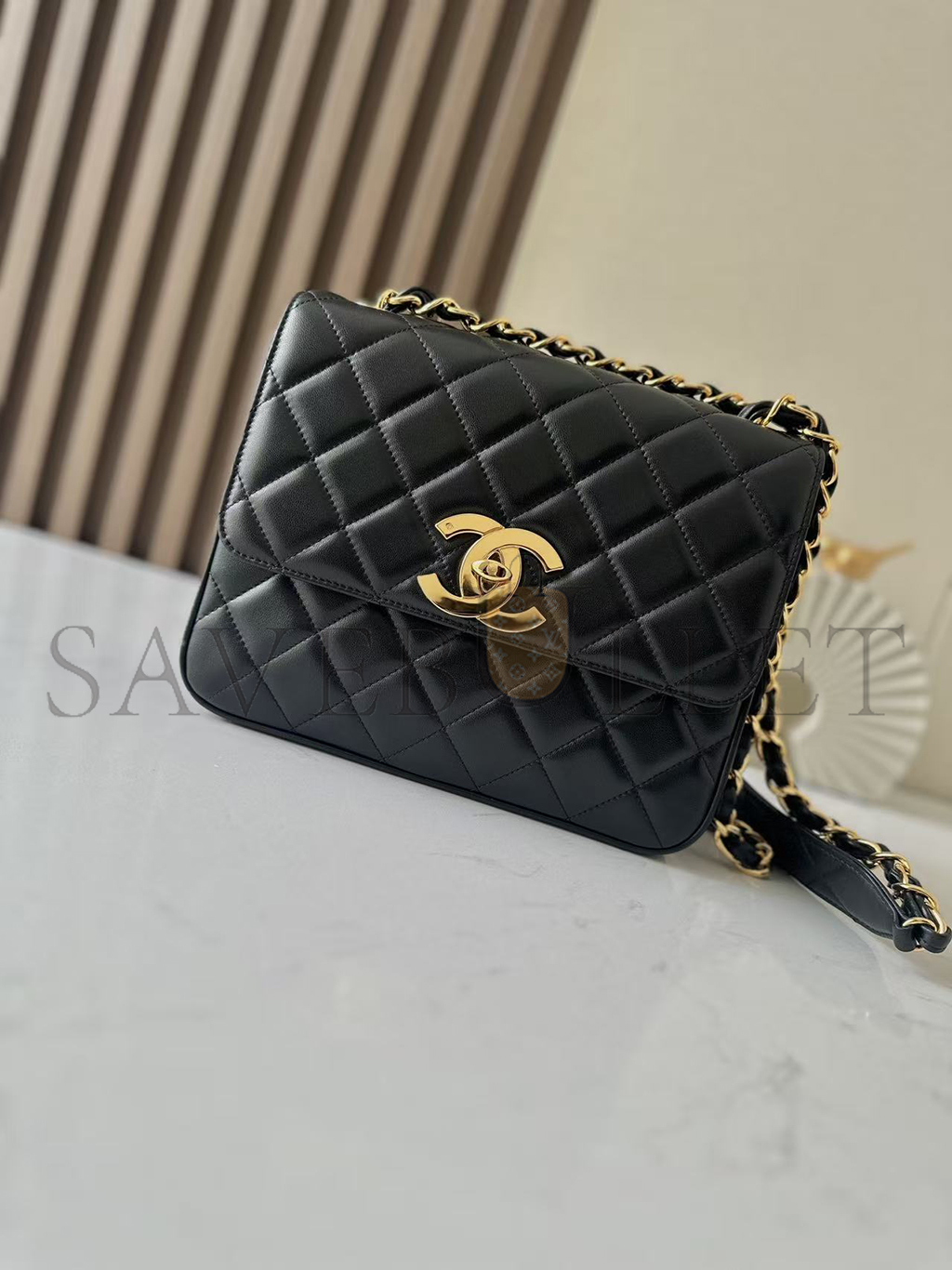 CHANEL CLASSIC FLAP BAG DECA SQUARED LAMBSKIN BLACK (25*20*9cm)