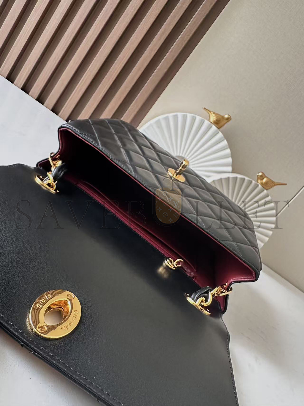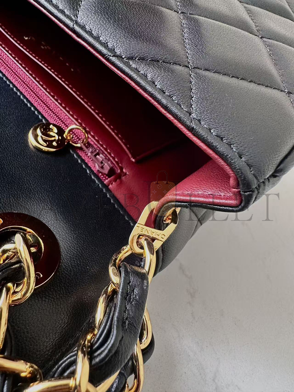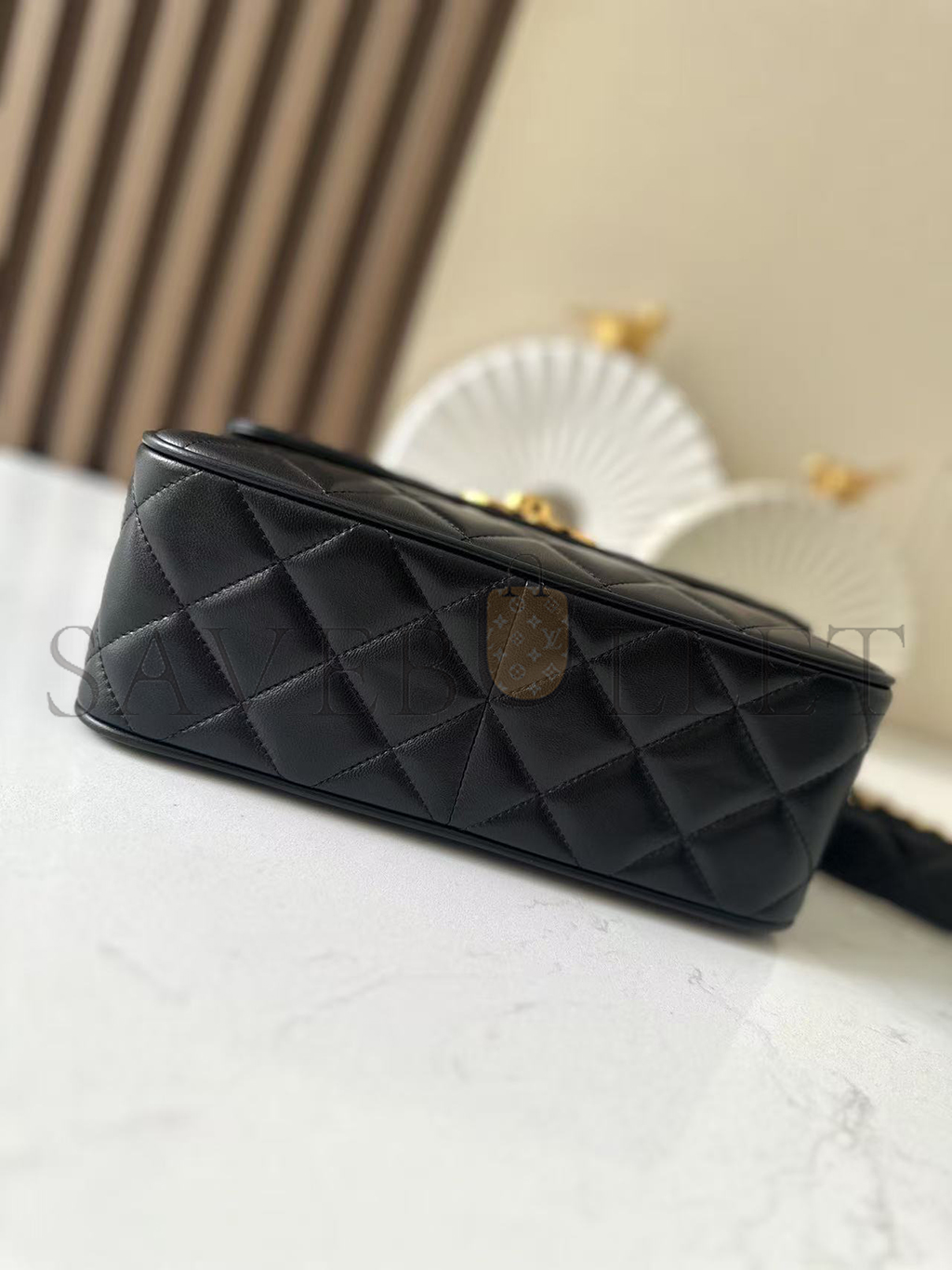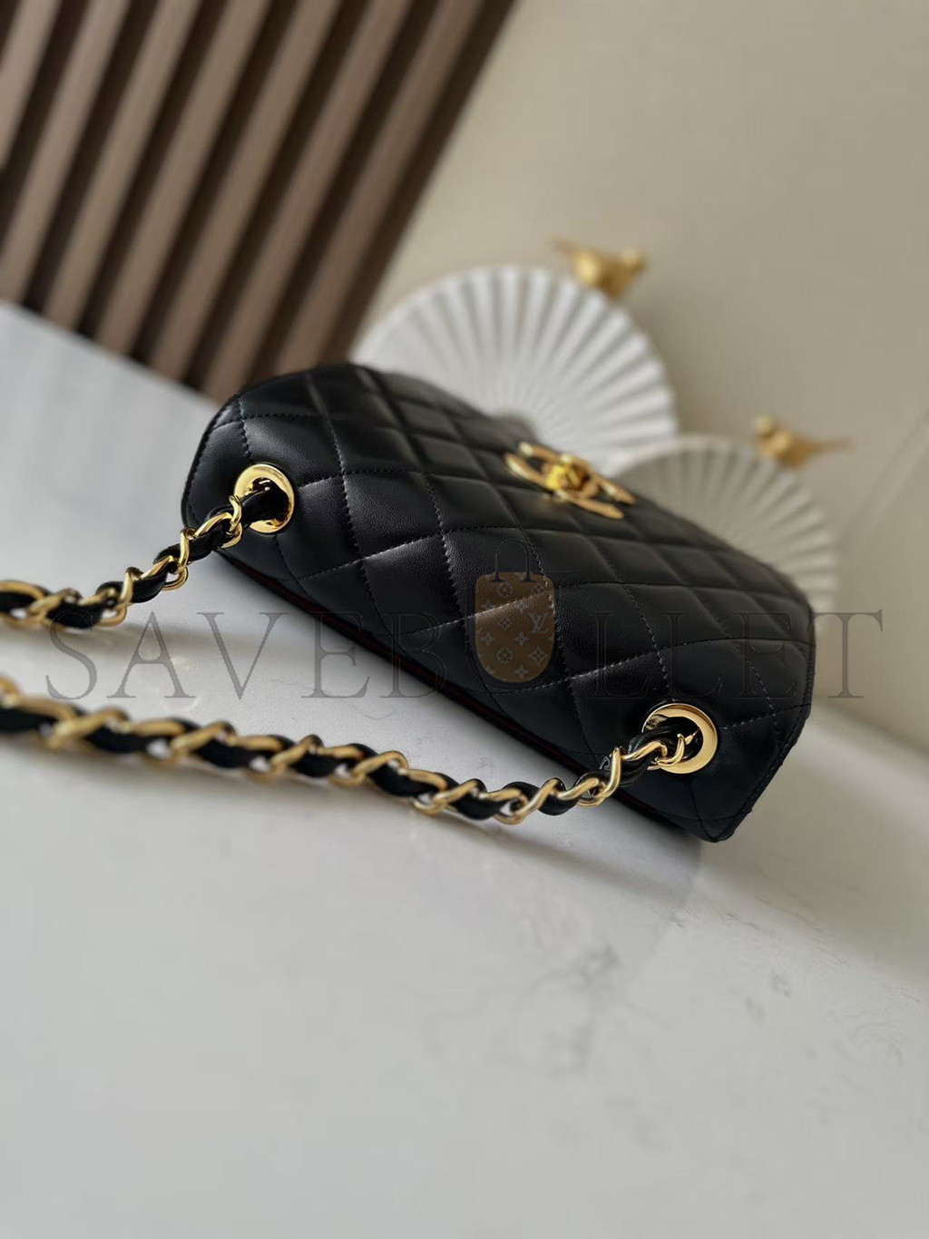 CHANEL CLASSIC FLAP BAG DECA SQUARED LAMBSKIN BLACK (25*20*9cm)
