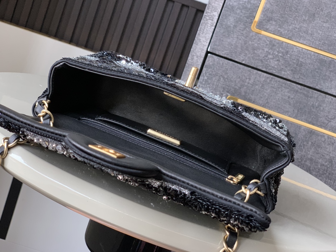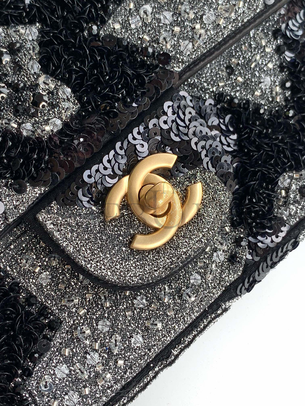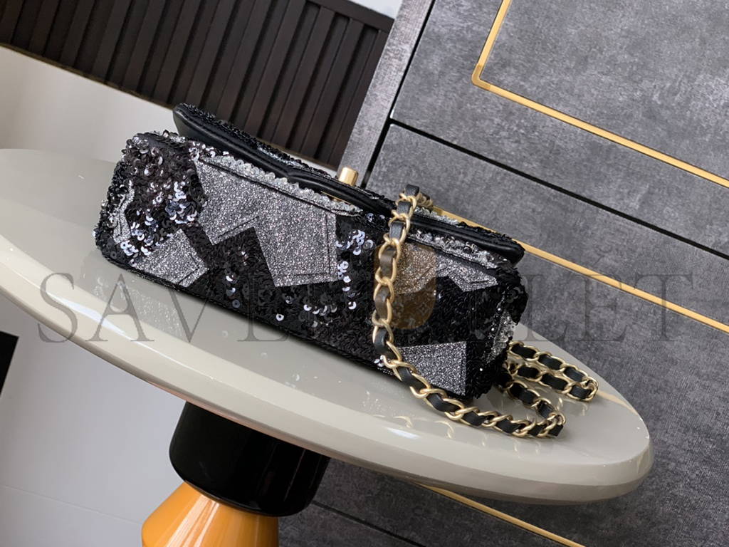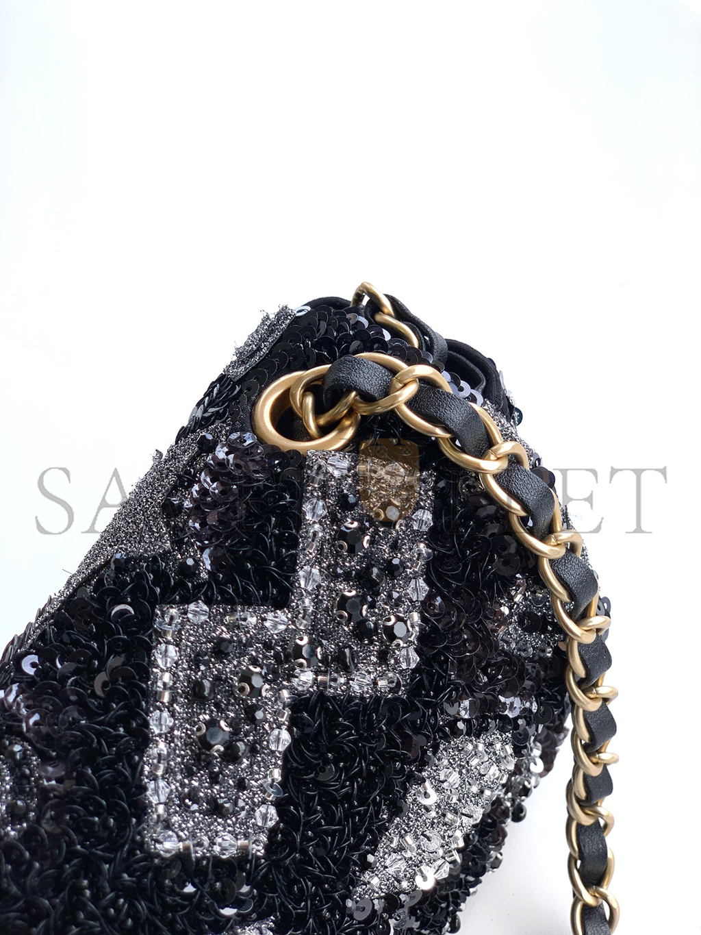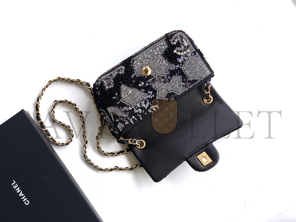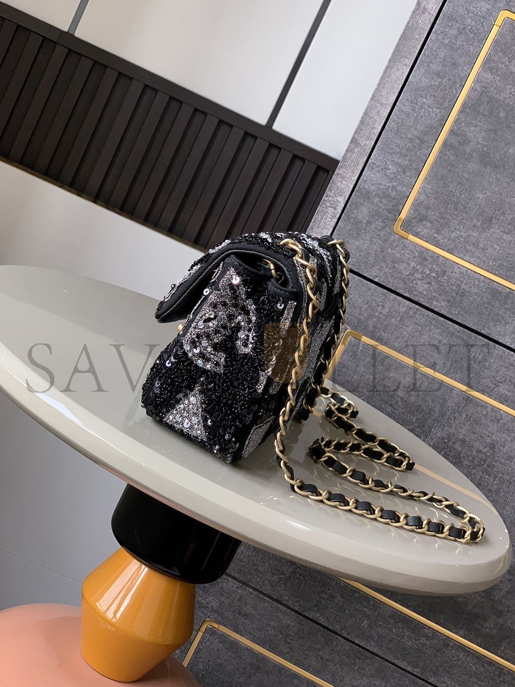 CHANEL 25P CLASSIC FLAP SEQUINS & GOLD-TONE METAL BLACK (20*12*6cm)