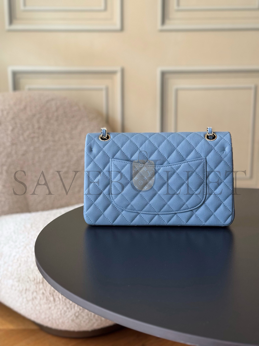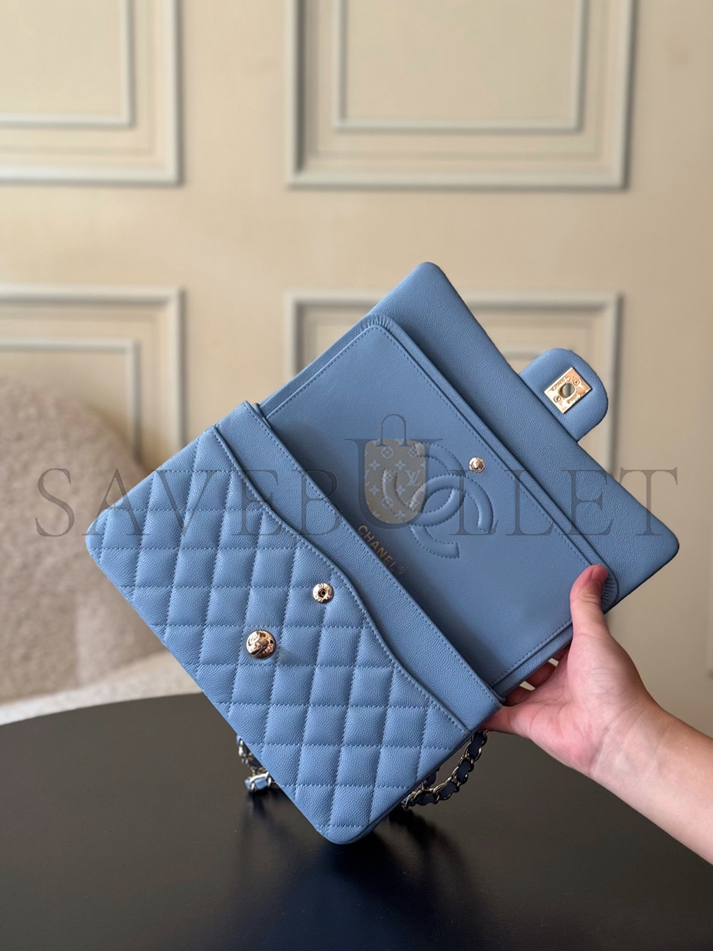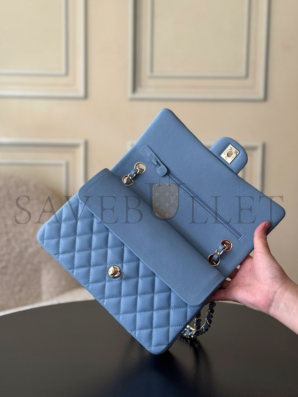 CHANEL MEDIUM CLASSIC DOUBLE FLAP BLUE CAVIAR GOLD HARDWARE A01112 (25.5*15.5*6.5cm)