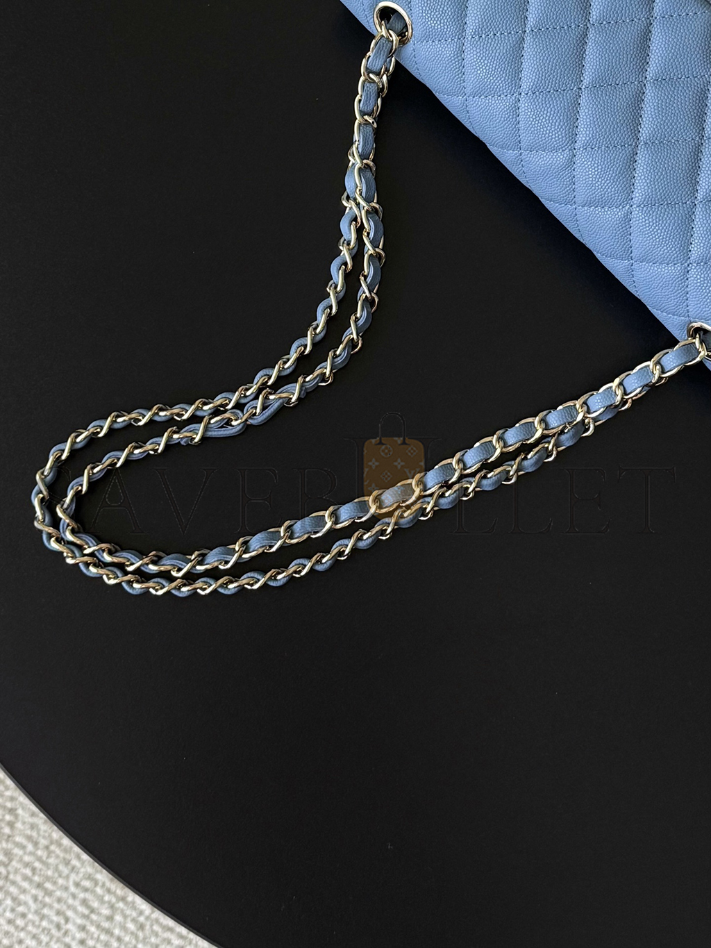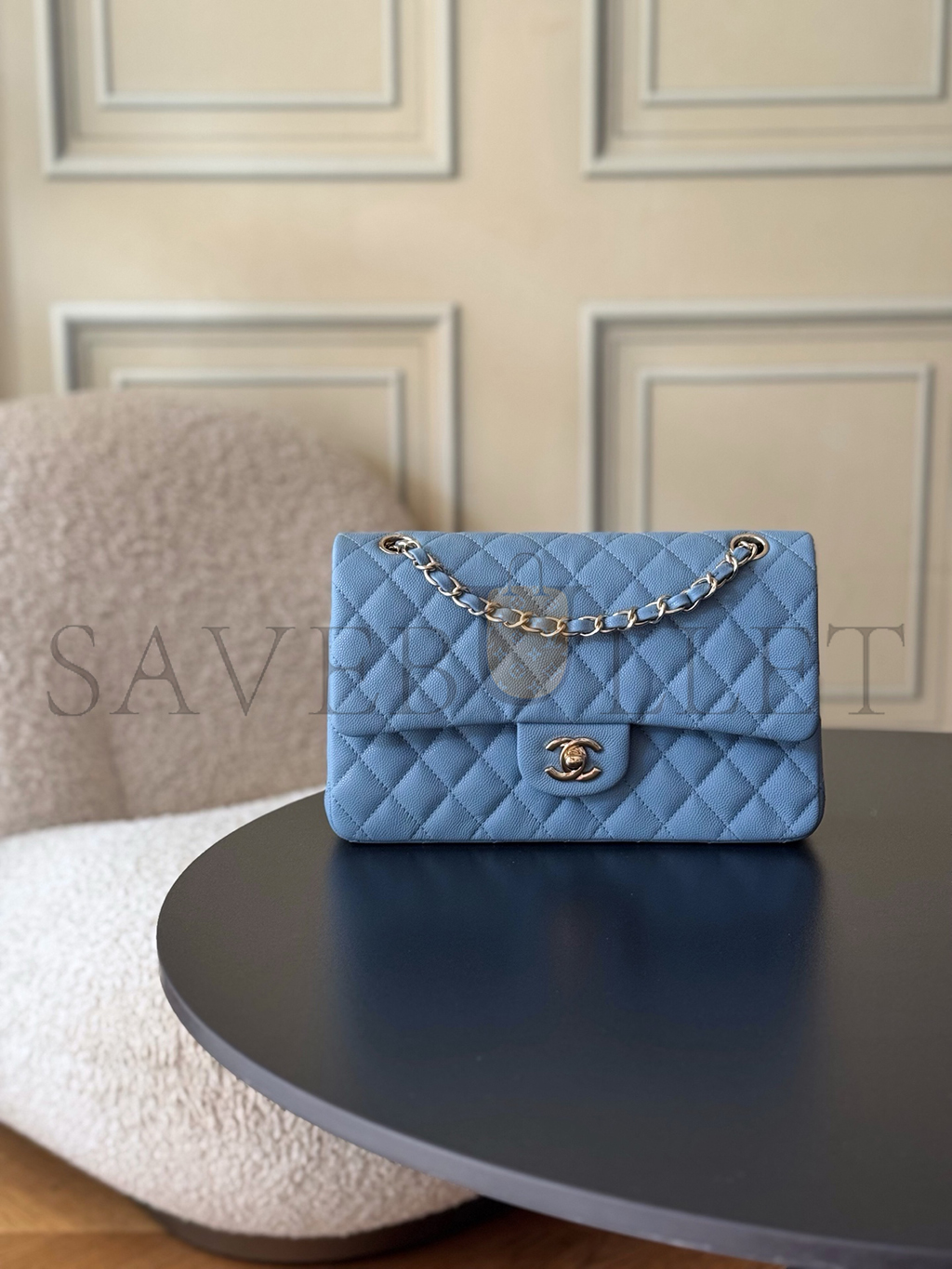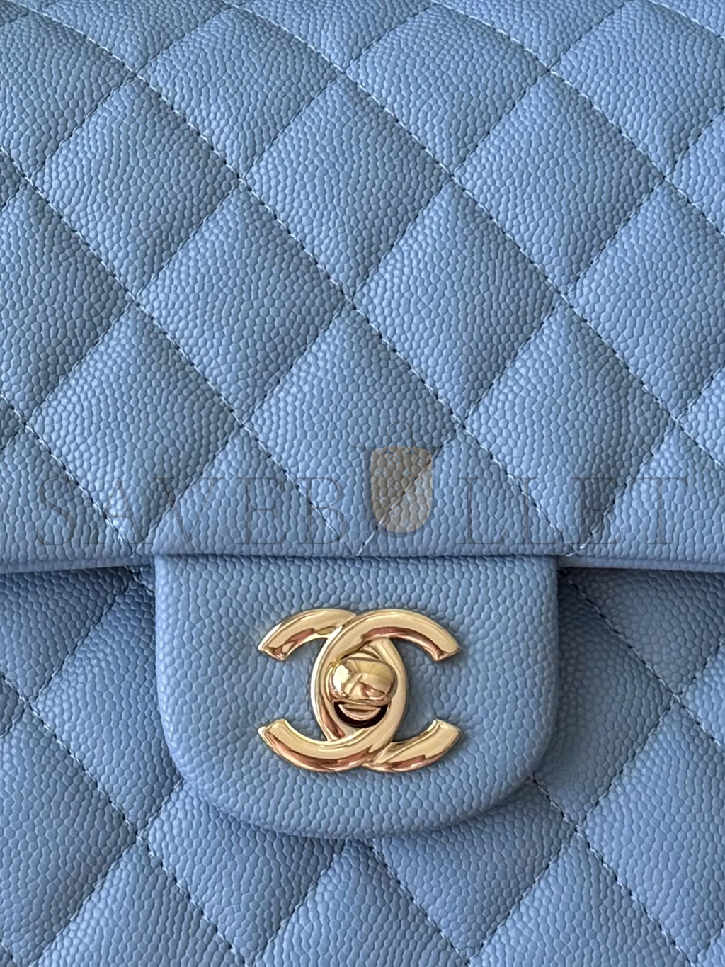 CHANEL MEDIUM CLASSIC DOUBLE FLAP BLUE CAVIAR GOLD HARDWARE A01112 (25.5*15.5*6.5cm)