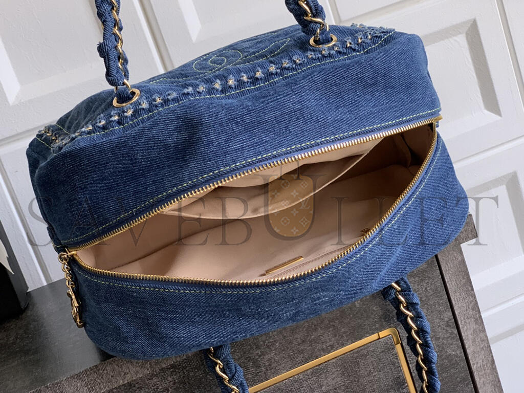 CHANEL DENIM LUXE LIGNE BOWLER BAG (33*20.5*15cm)