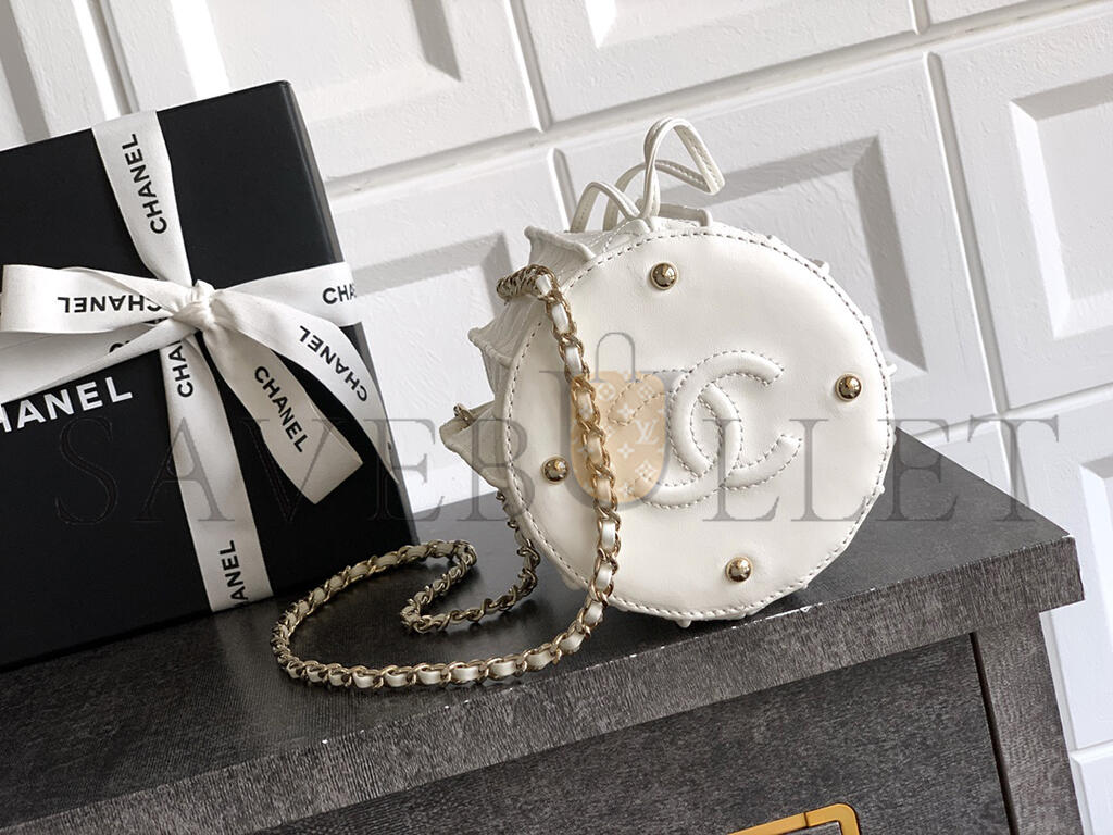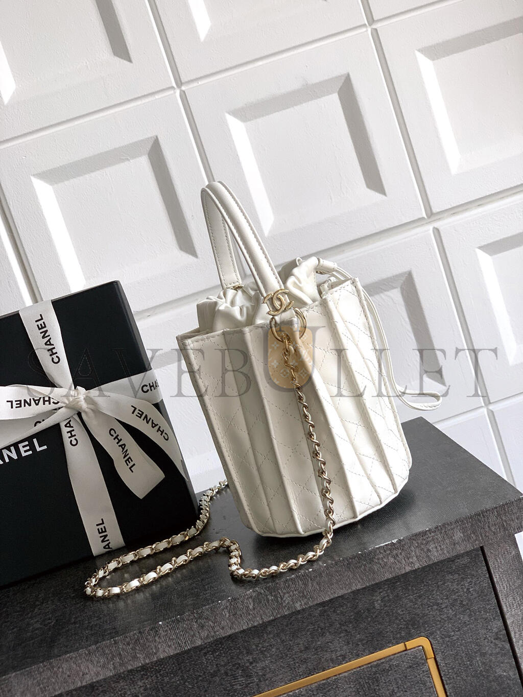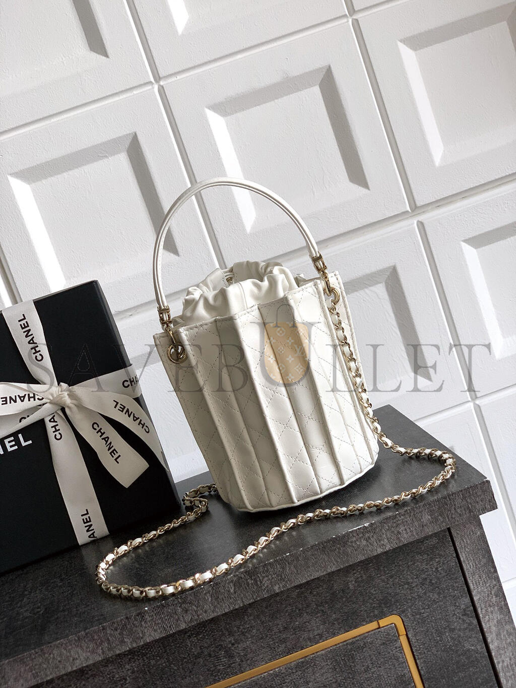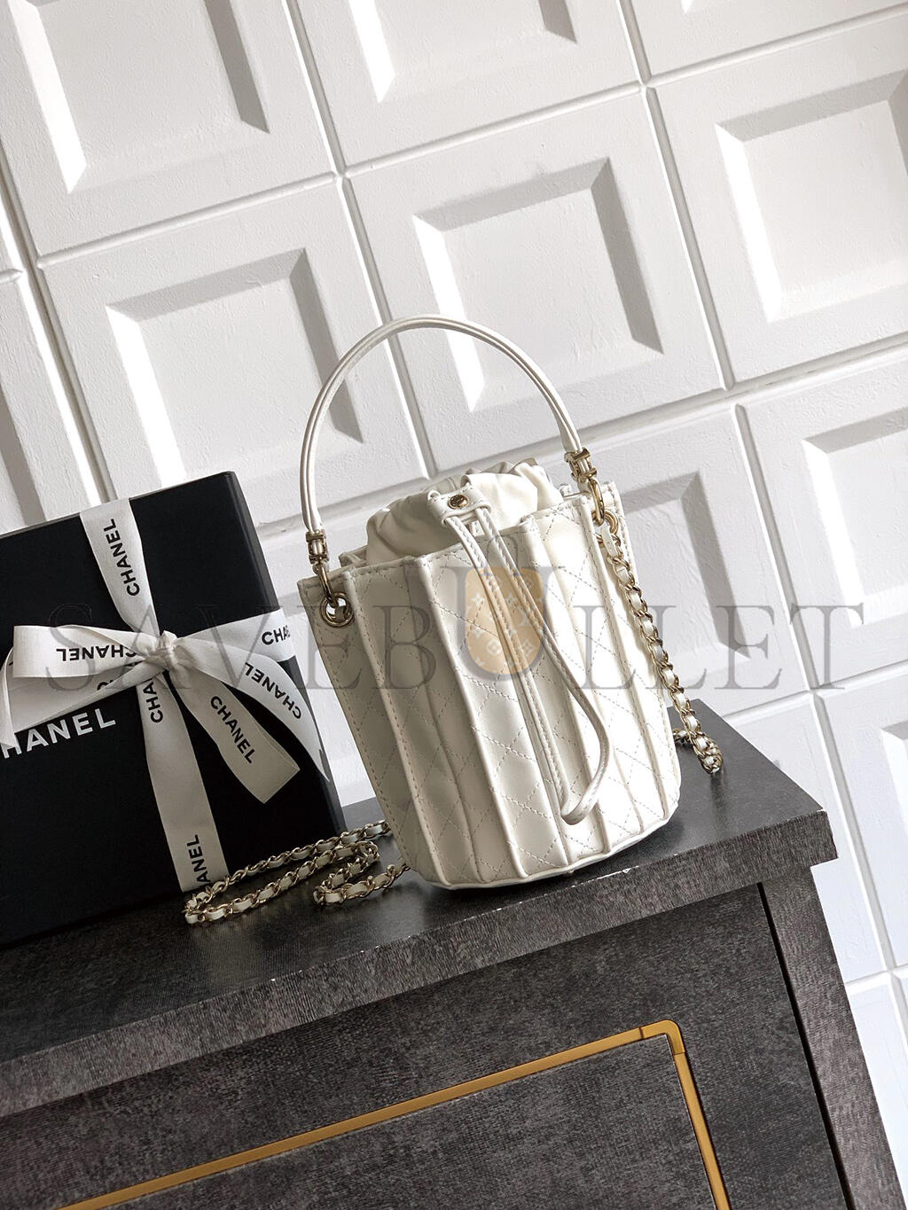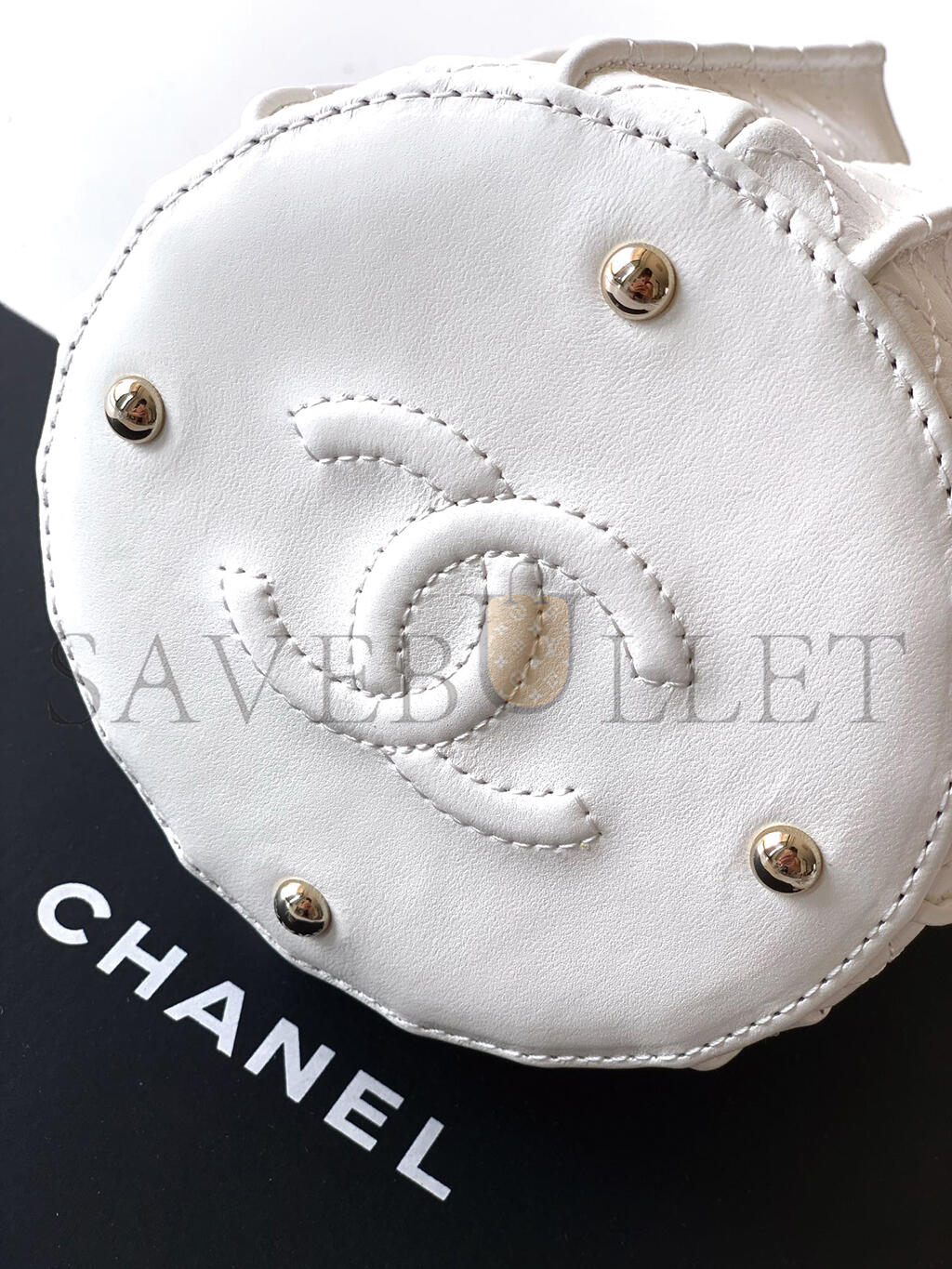CHANEL MINI BUCKET BAG LAMBSKIN WHITE AS5486 (15.2*14*14cm)