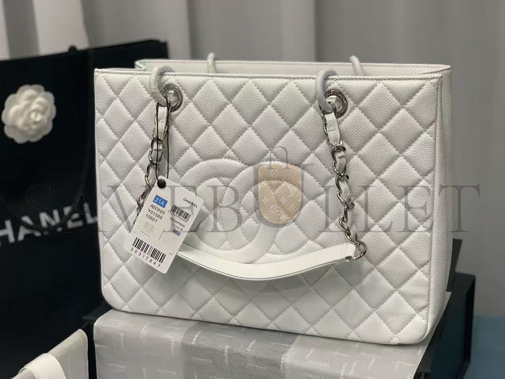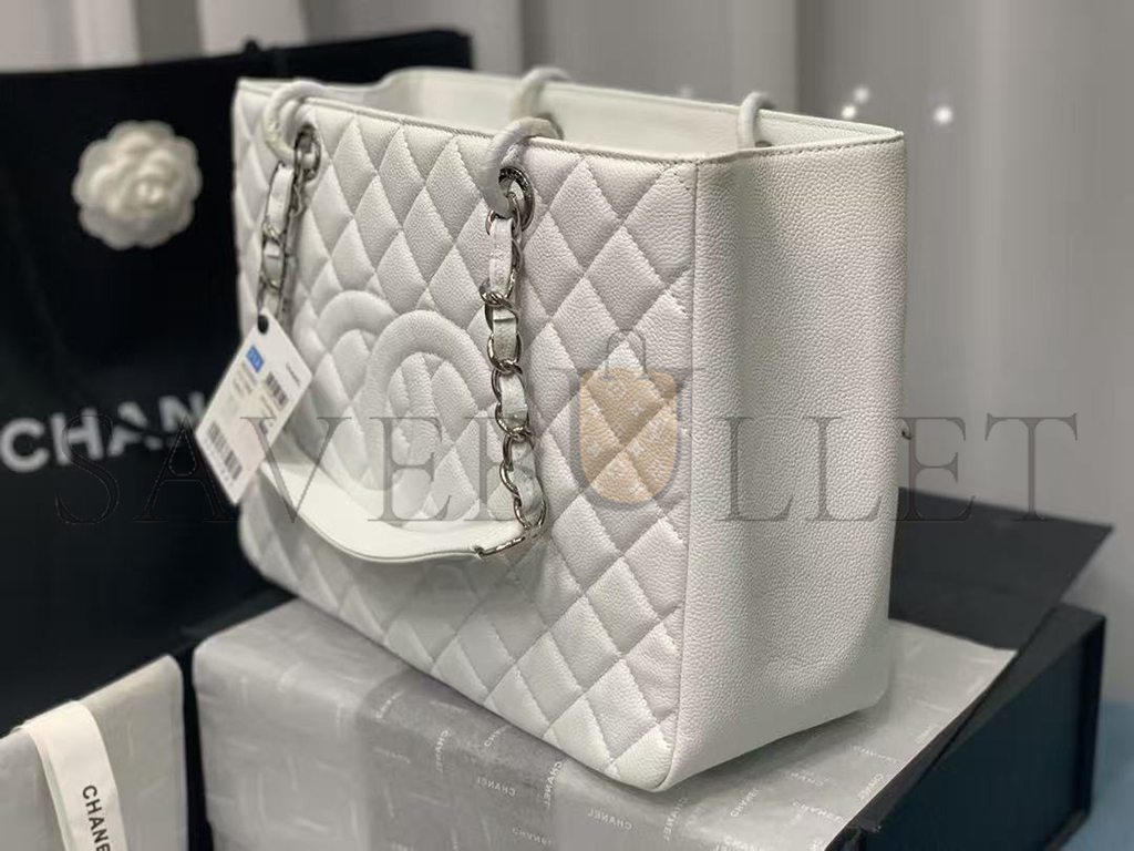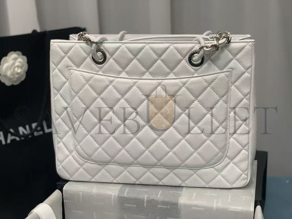 CHANEL CAVIAR QUILTED GRAND SHOPPING TOTE WHITE (34*24*13cm)
