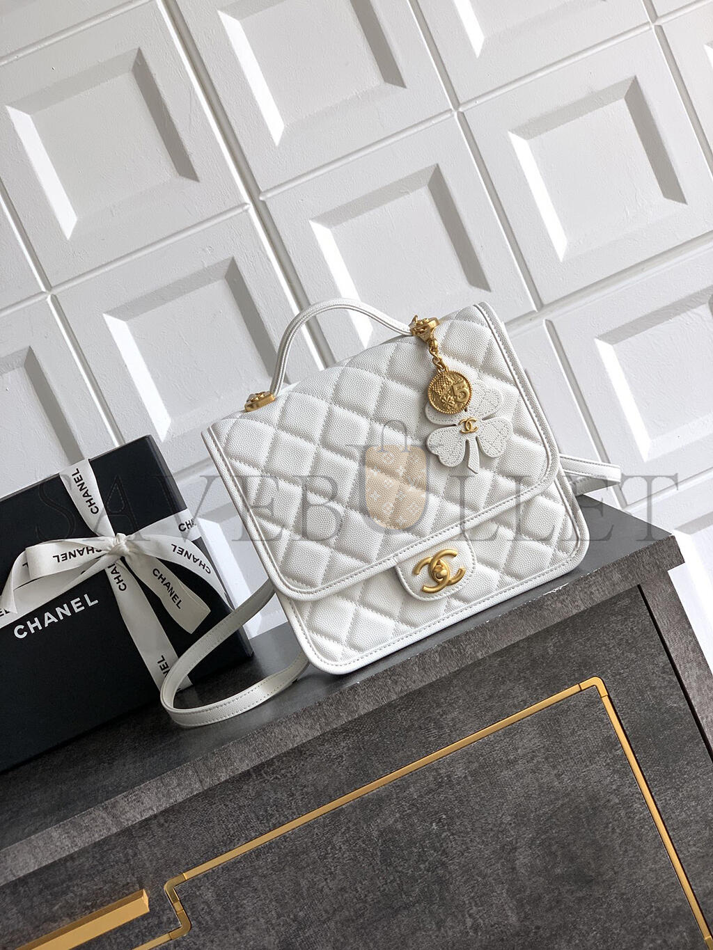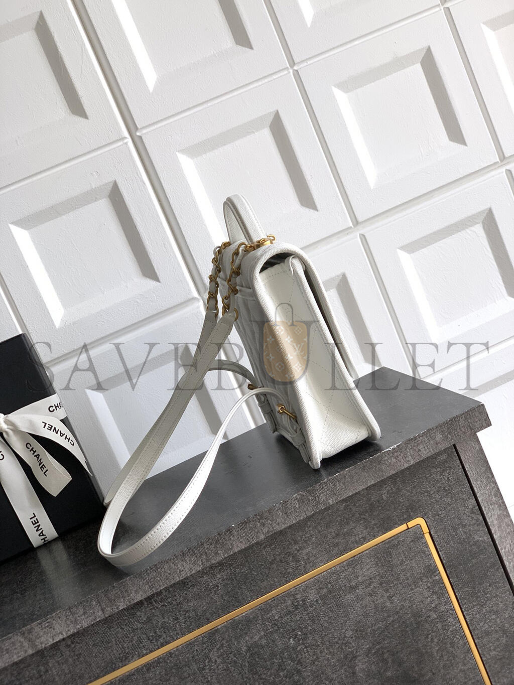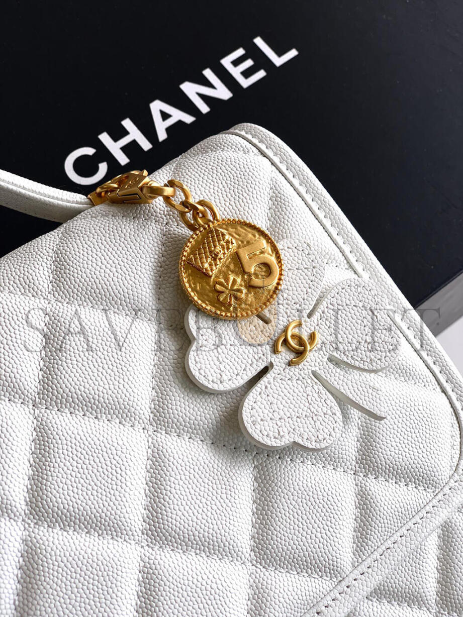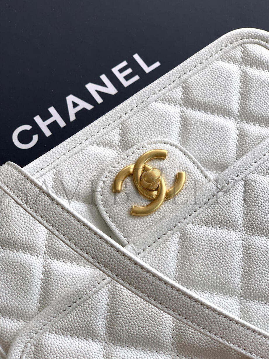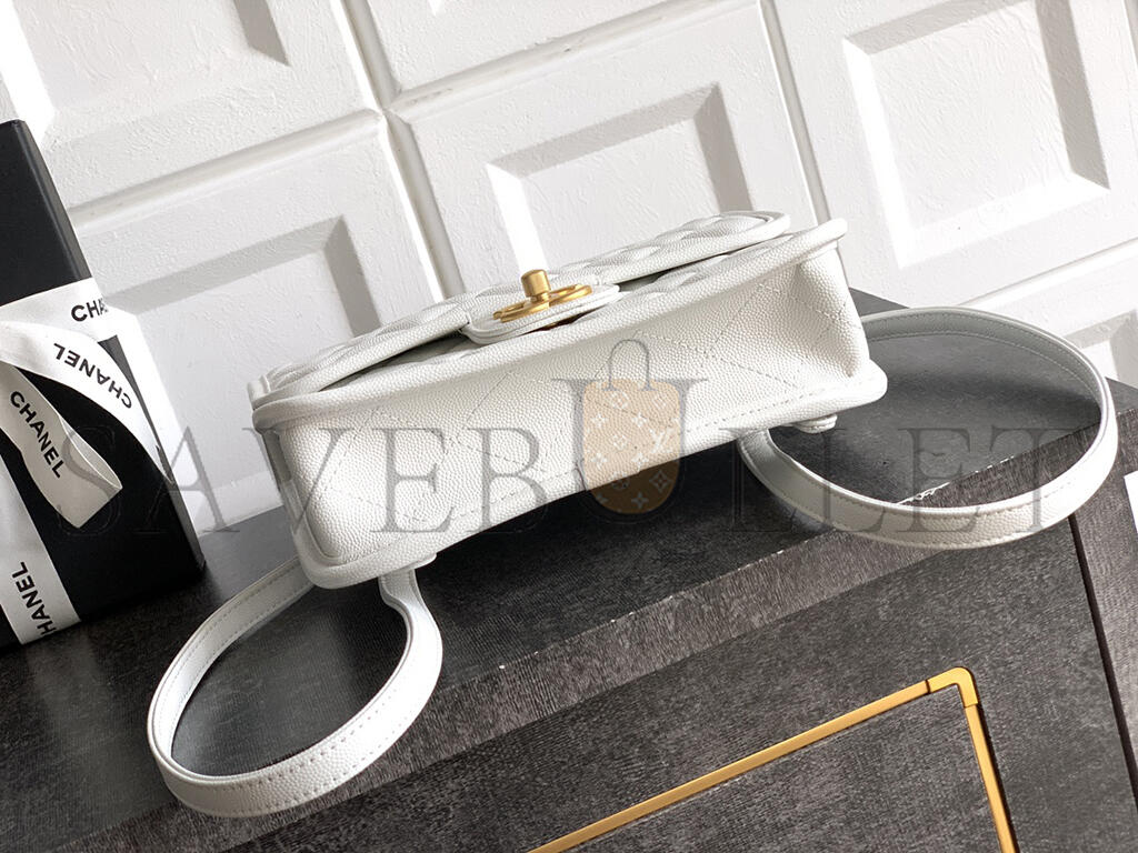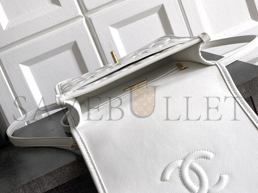 CHANEL BACKPACK GRAINED SHINY CALFSKIN & GOLD-TONE METAL WHITE AS5715 (22*19.5*7cm)