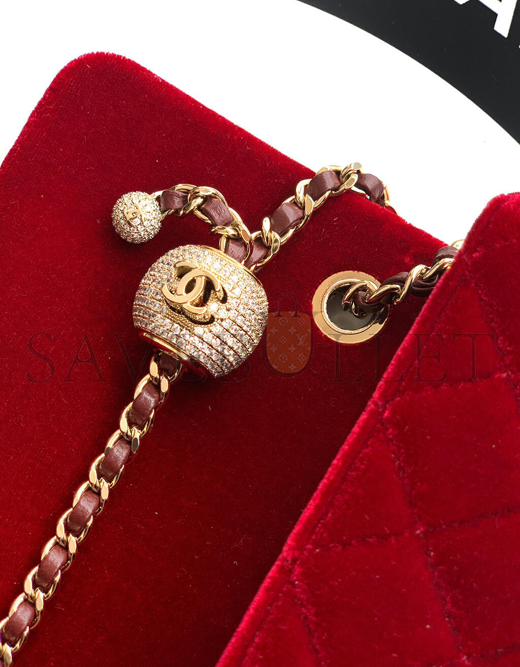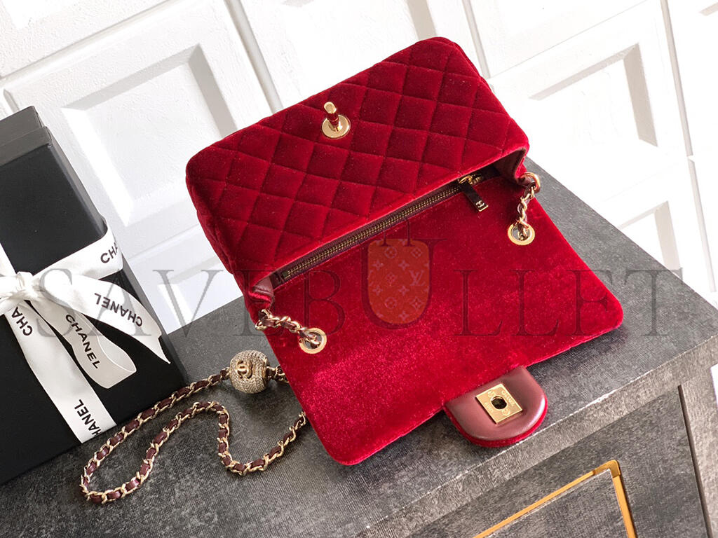 CHANEL MINI FLAP BAG VELVET, DIAMANT & GOLD-TONE METAL BRIGHT RED AS1787 (20*13*7cm)