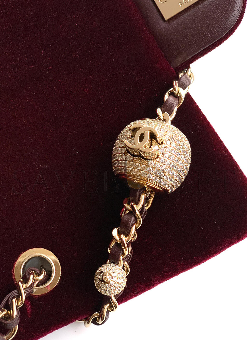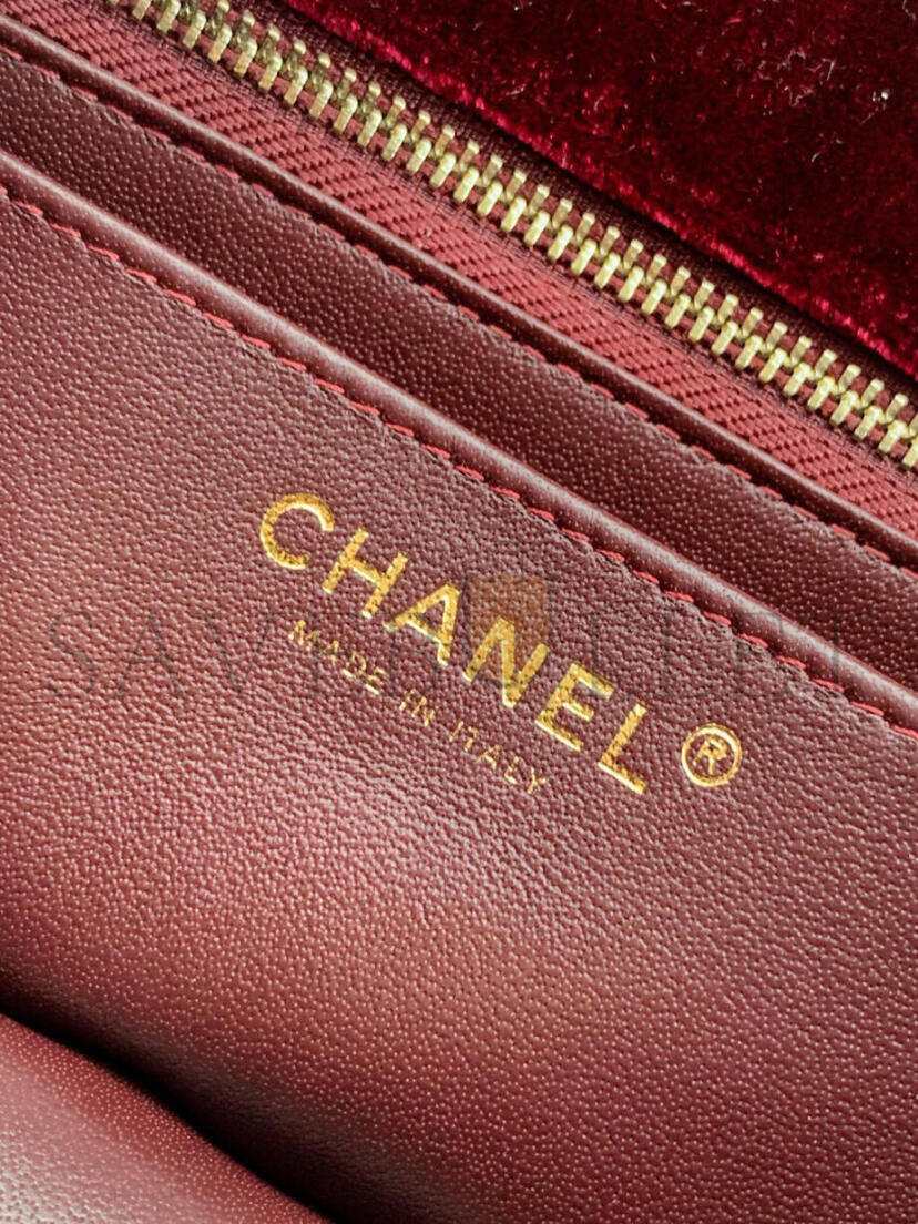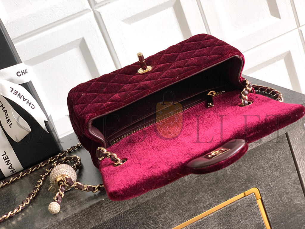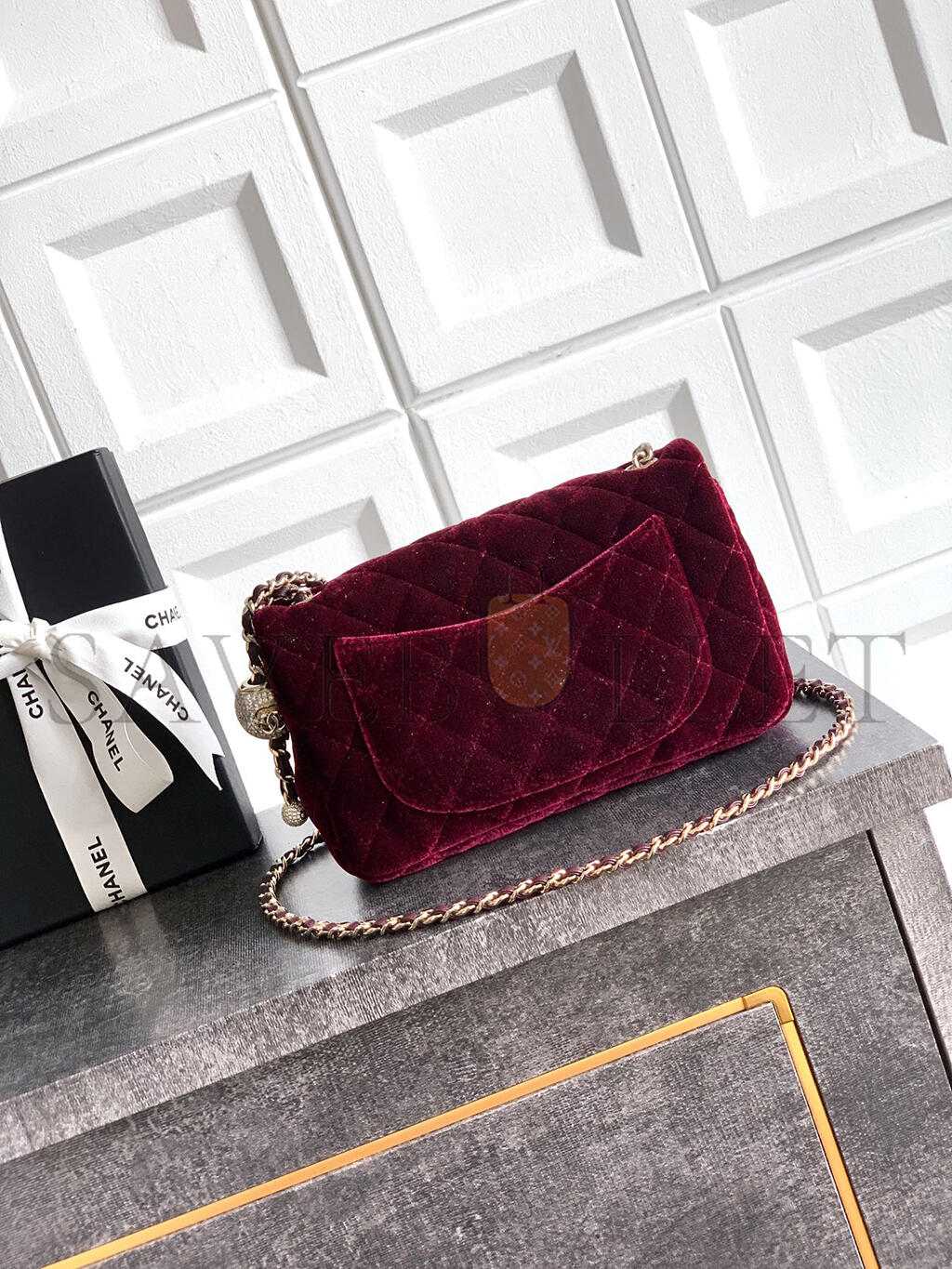 CHANEL MINI FLAP BAG VELVET, DIAMANT & GOLD-TONE METAL BURGUNDY AS1787 (20*13*7cm)