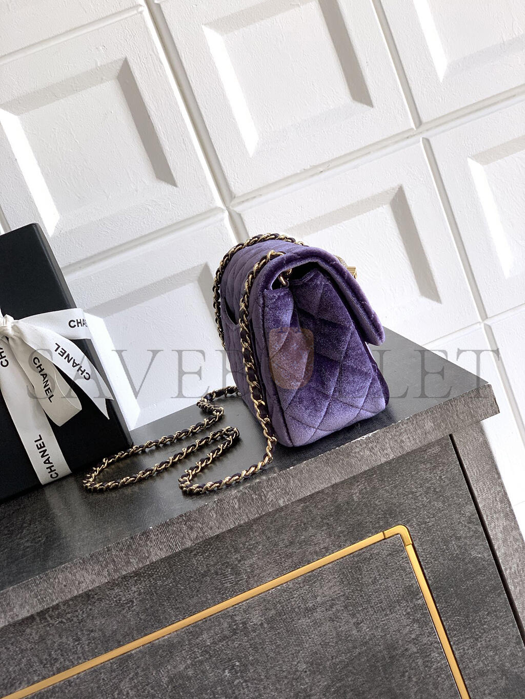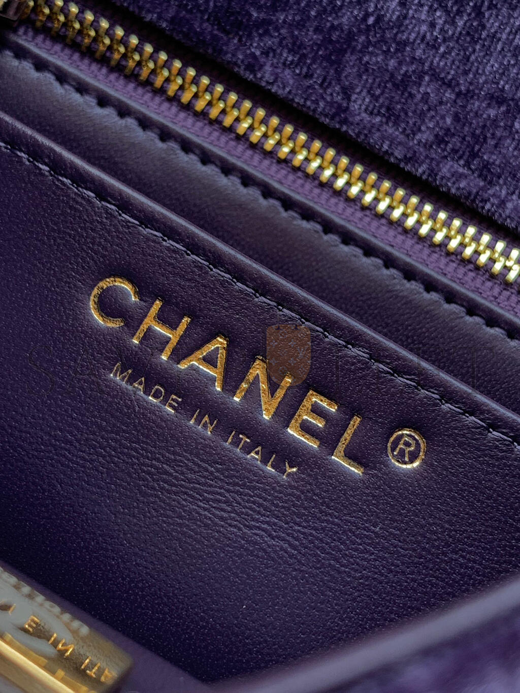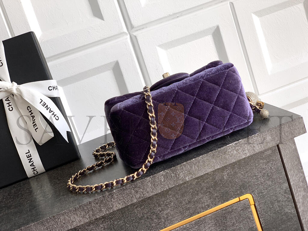 CHANEL MINI FLAP BAG VELVET, DIAMANT & GOLD-TONE METAL PURPLE AS1786 (18*13*7cm)