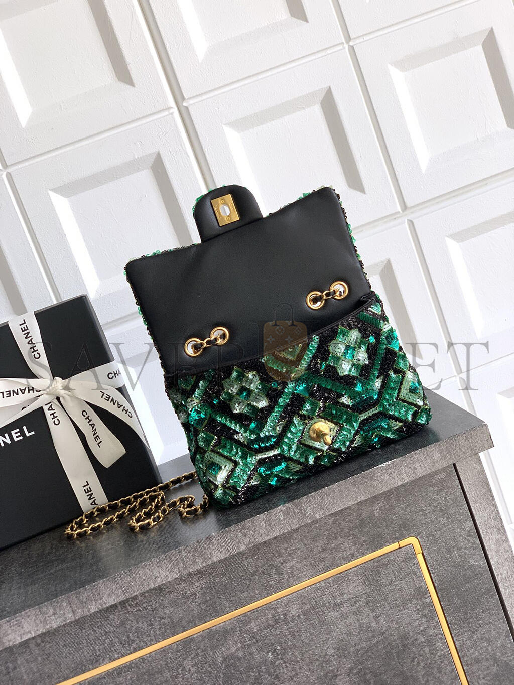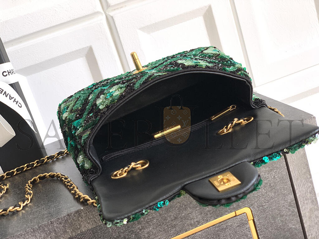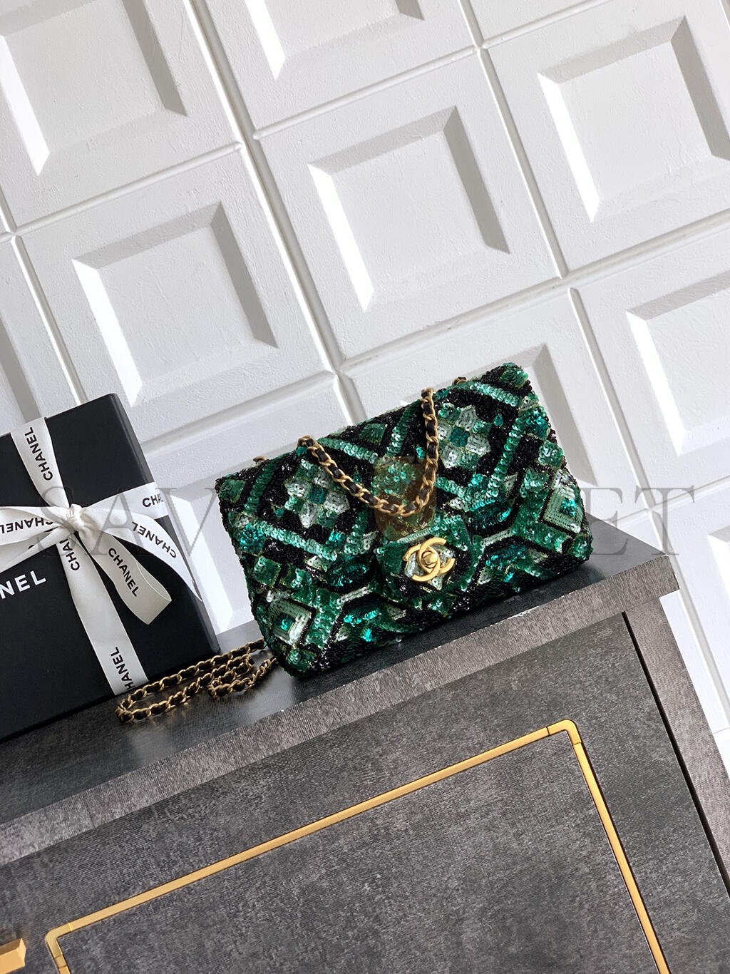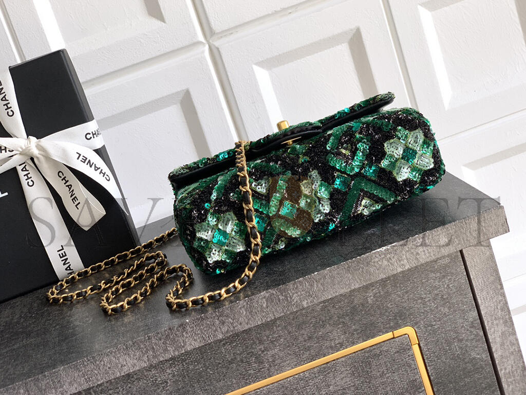 CHANEL SEQUIN MOSAIC MINI RECTANGULAR FLAP GREEN BLACK (20*11*8cm)