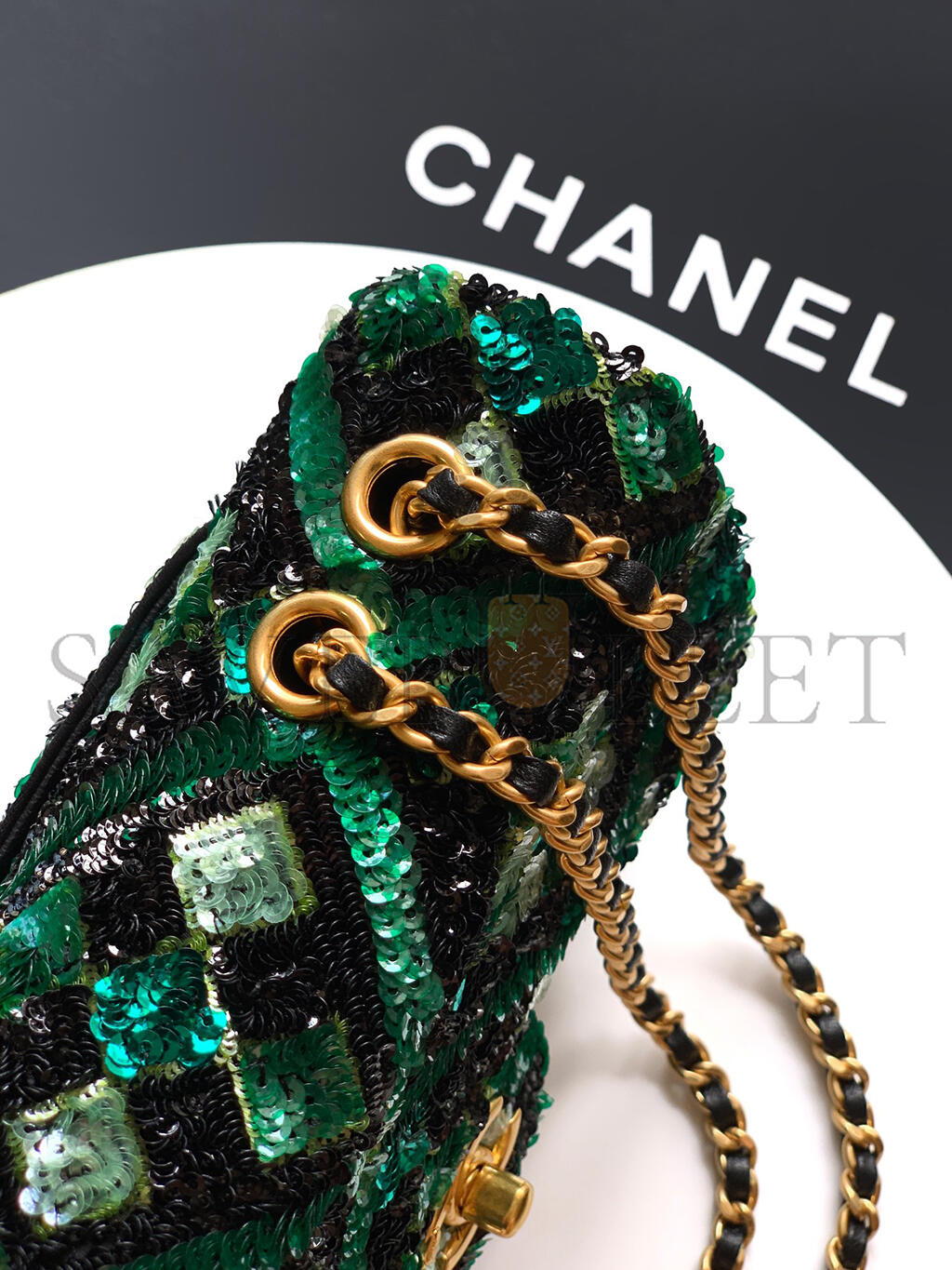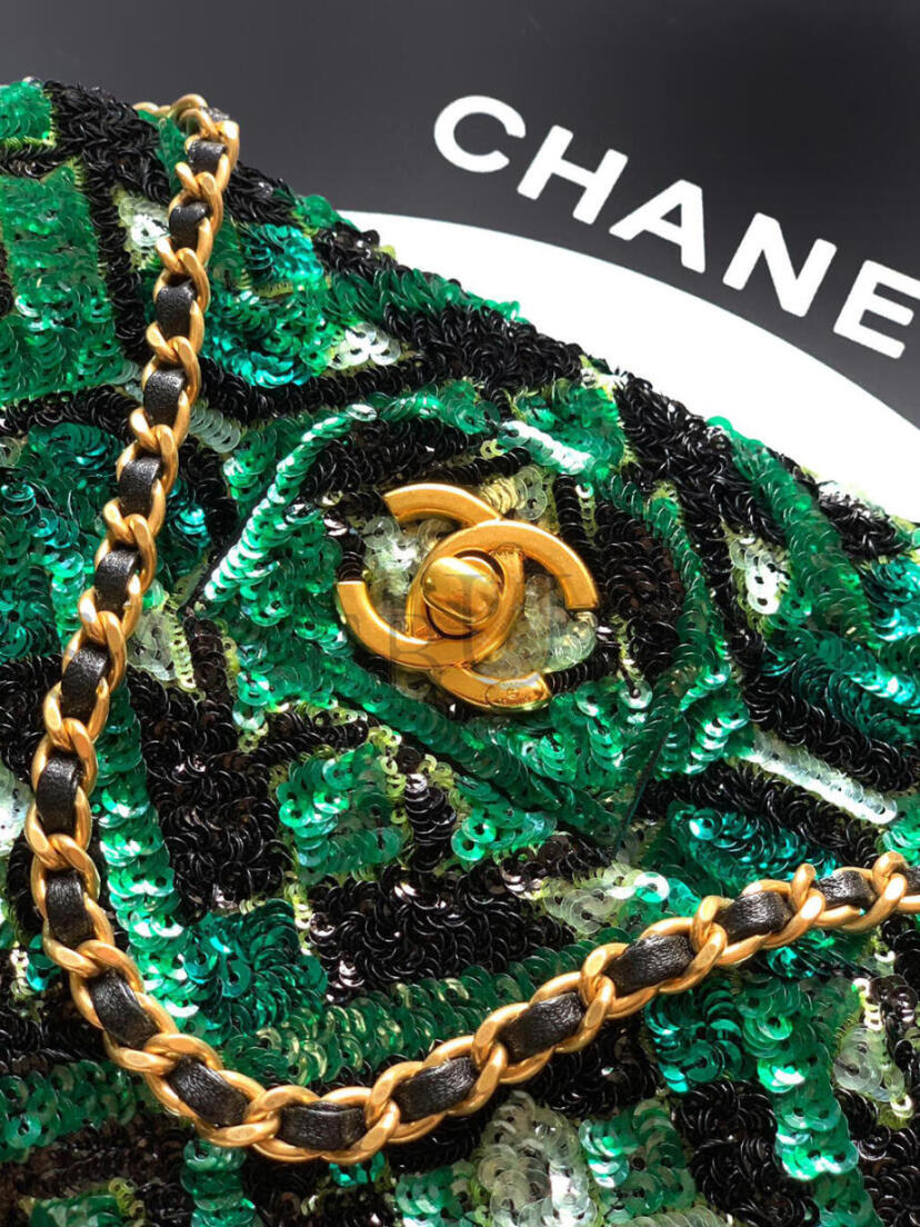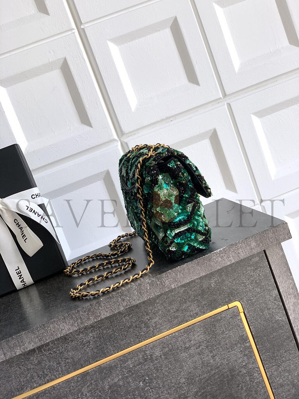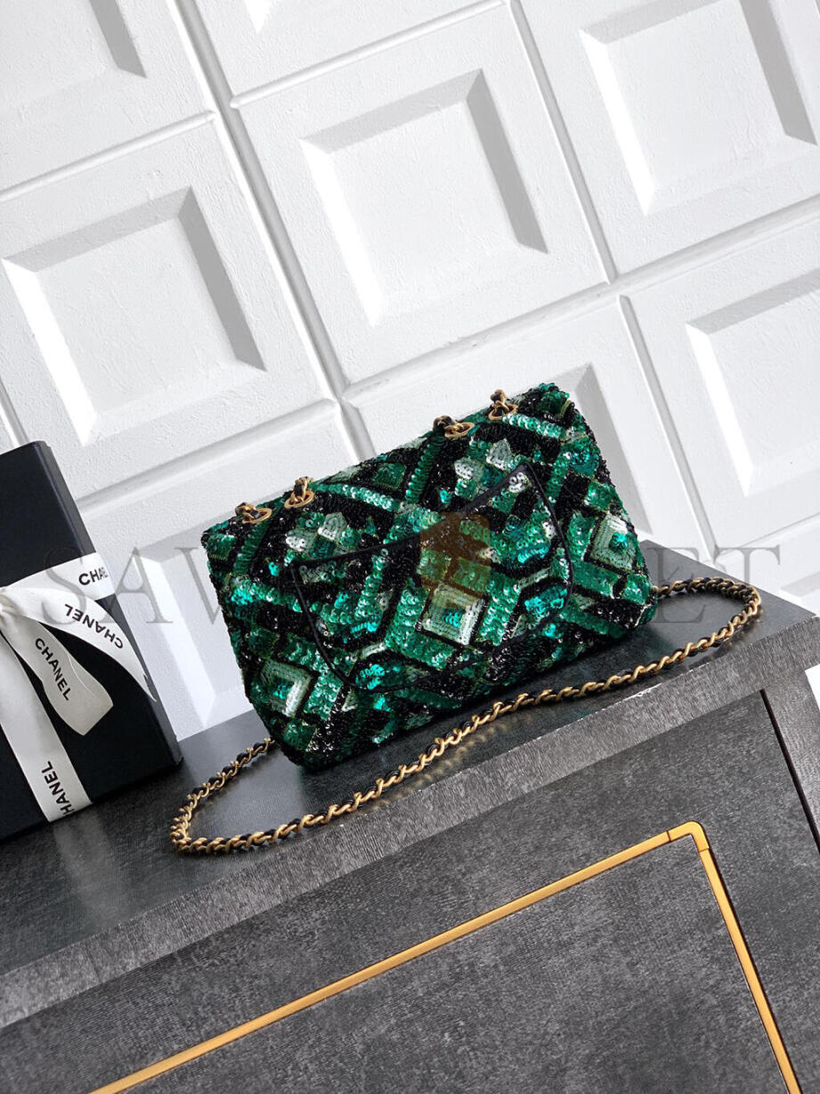 CHANEL SEQUIN MOSAIC MINI RECTANGULAR FLAP GREEN BLACK (20*11*8cm)