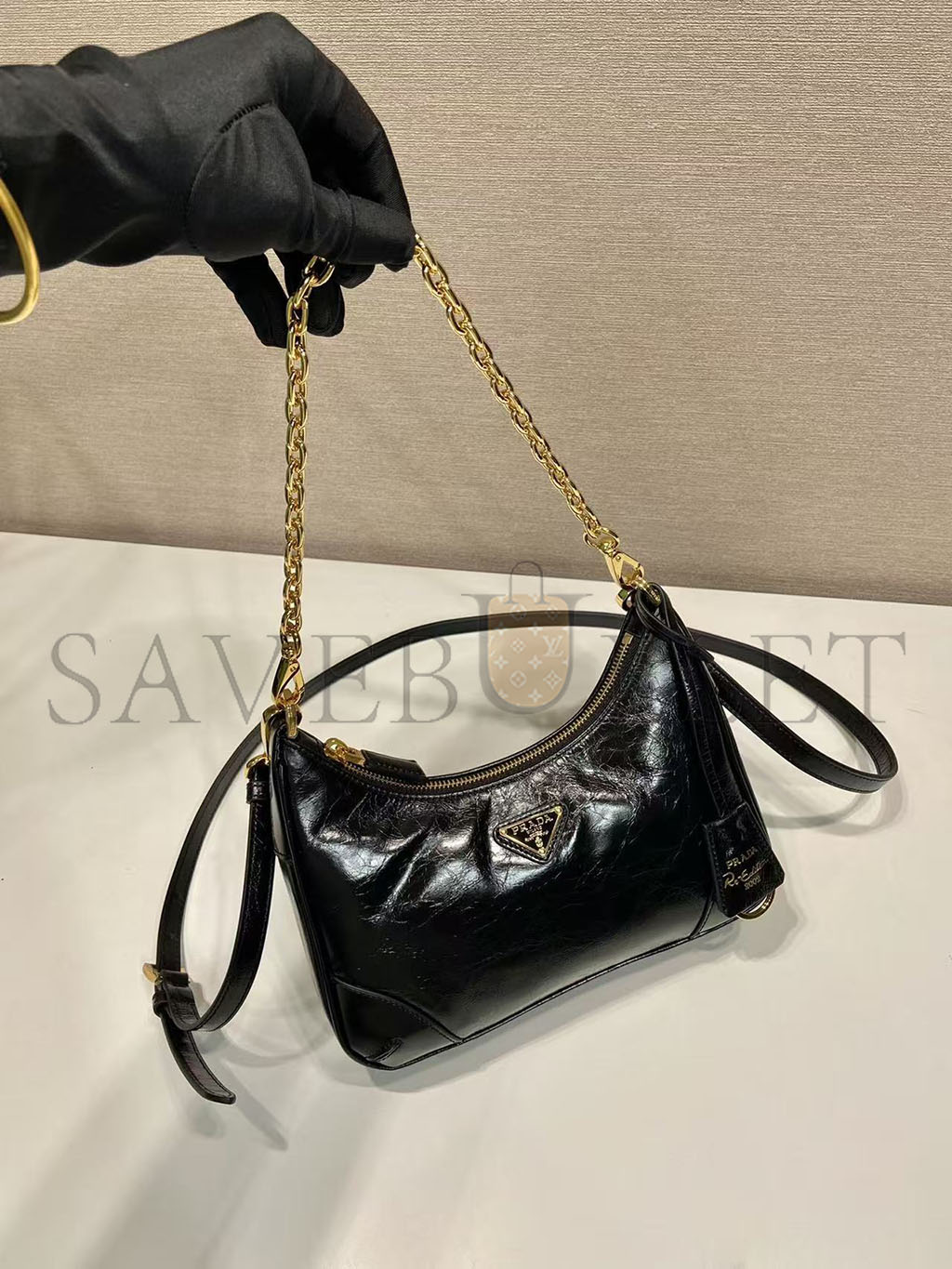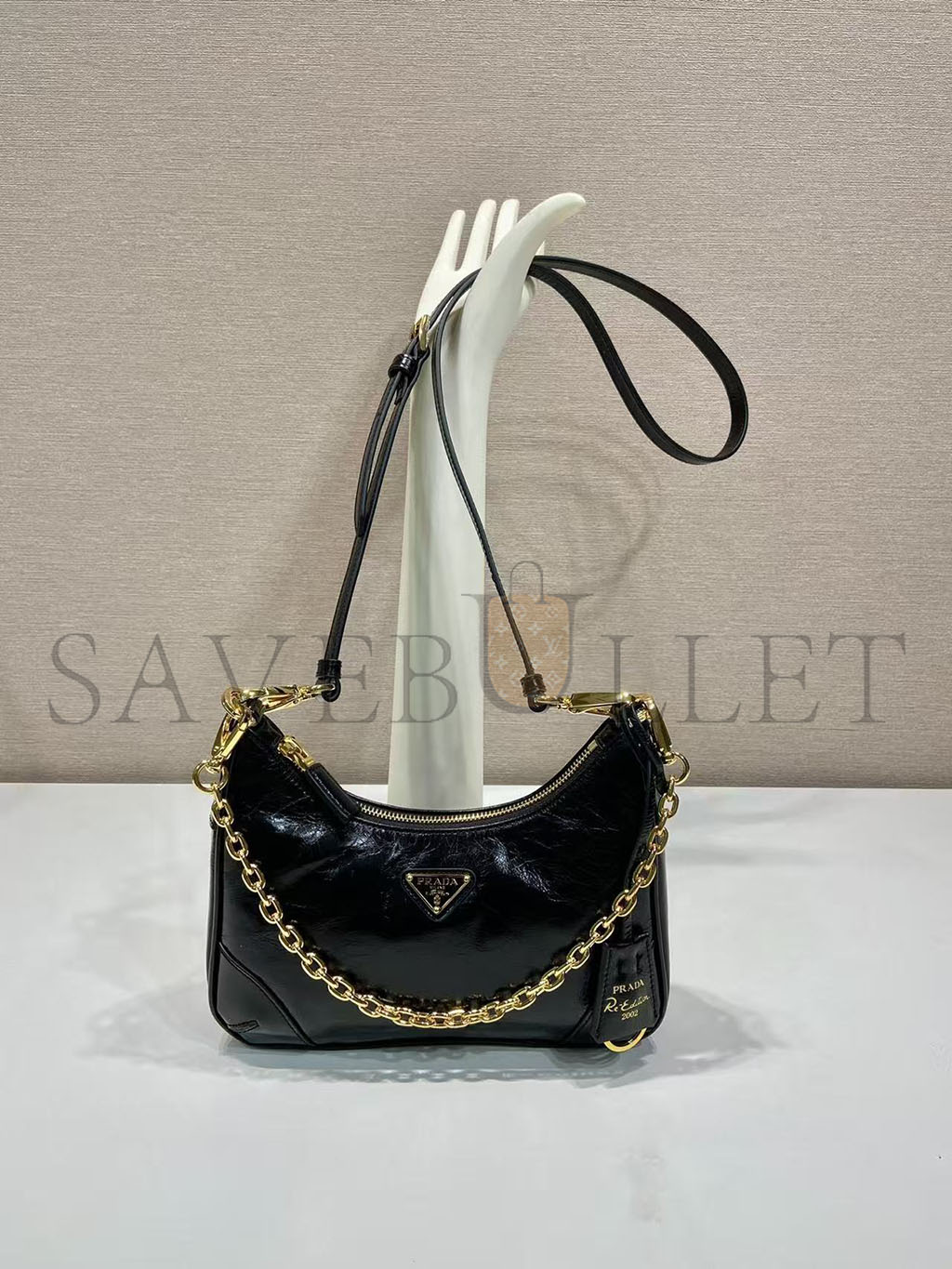 PRADA RE-EDITION MINI NAPLAK PATENT LEATHER BAG 1BC204 (22*18*6cm)