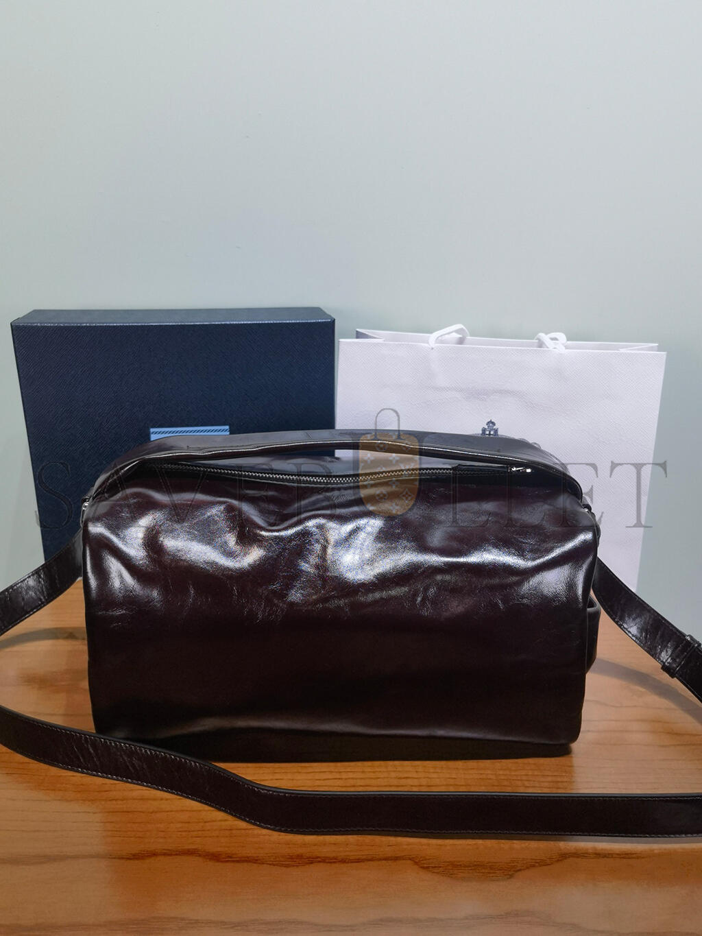 Detachable, adjustable leather shoulder strap with buckle Maximum length 125 cm - Minimum