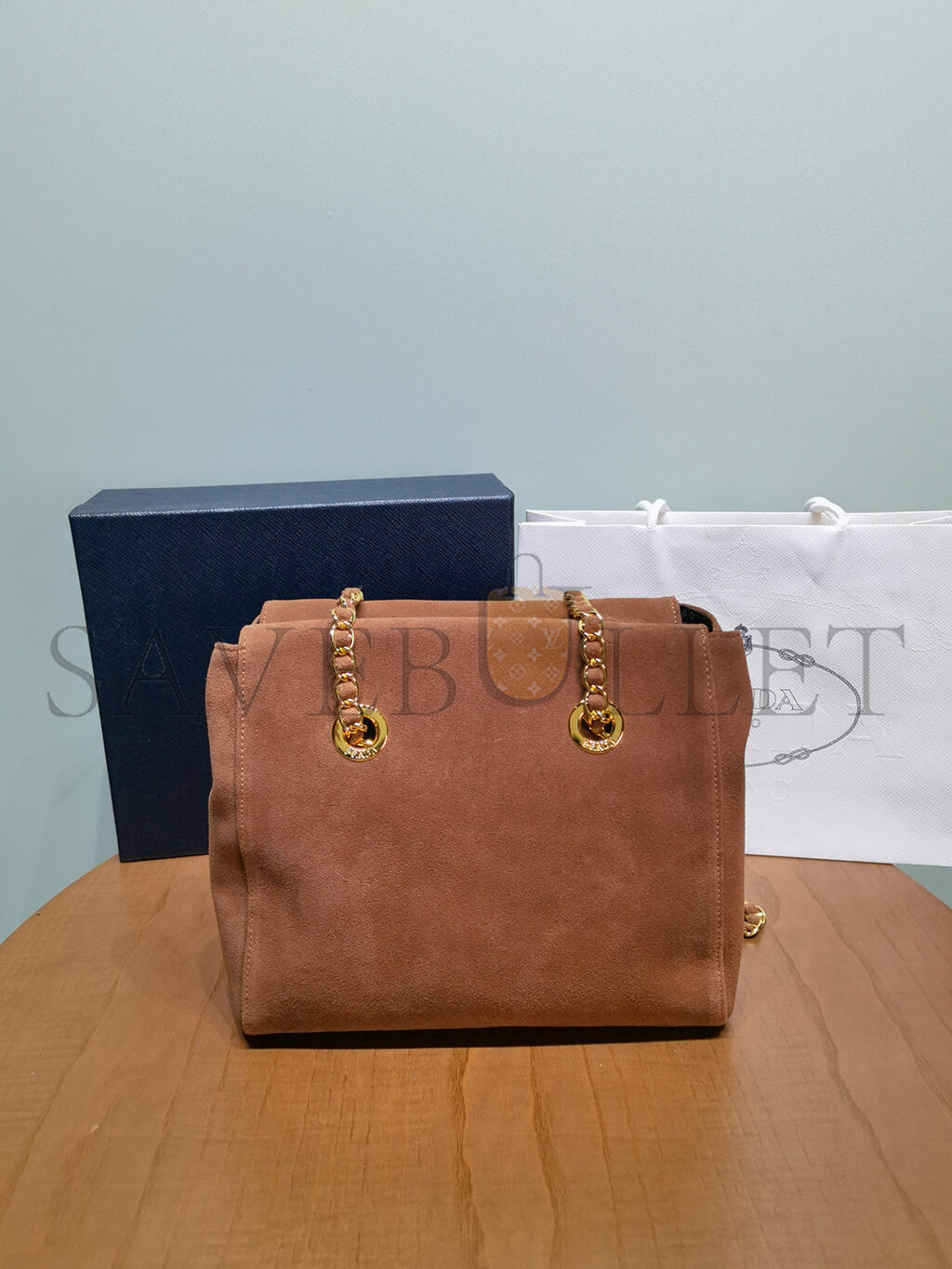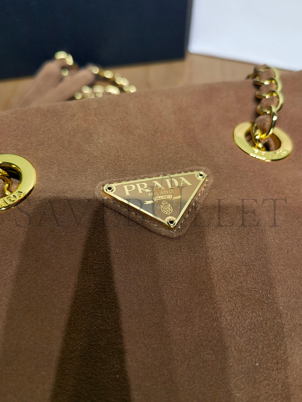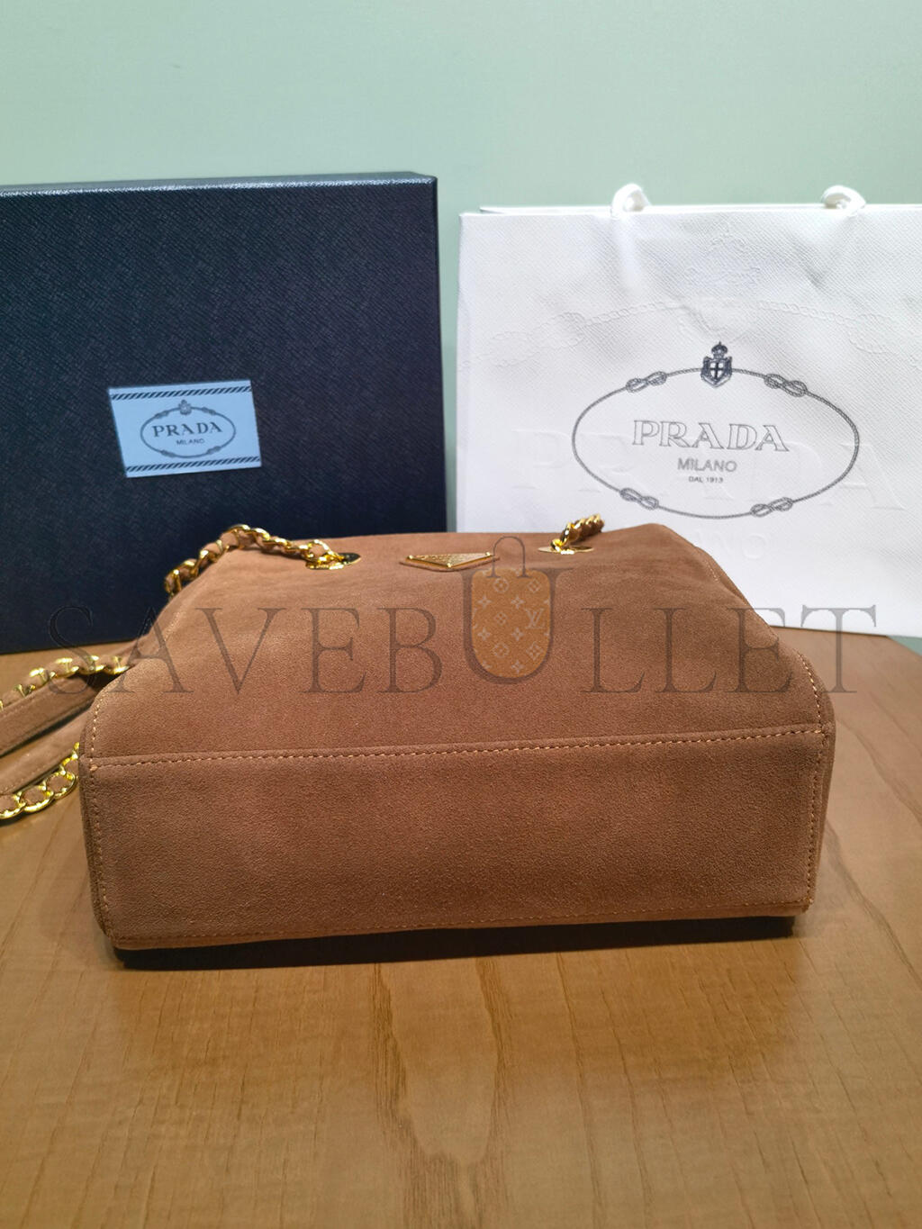 PRADA QUILTED BROWN SUEDE CHAIN SHOULDER BAG 1BD660 (26.5*25*7.5cm)