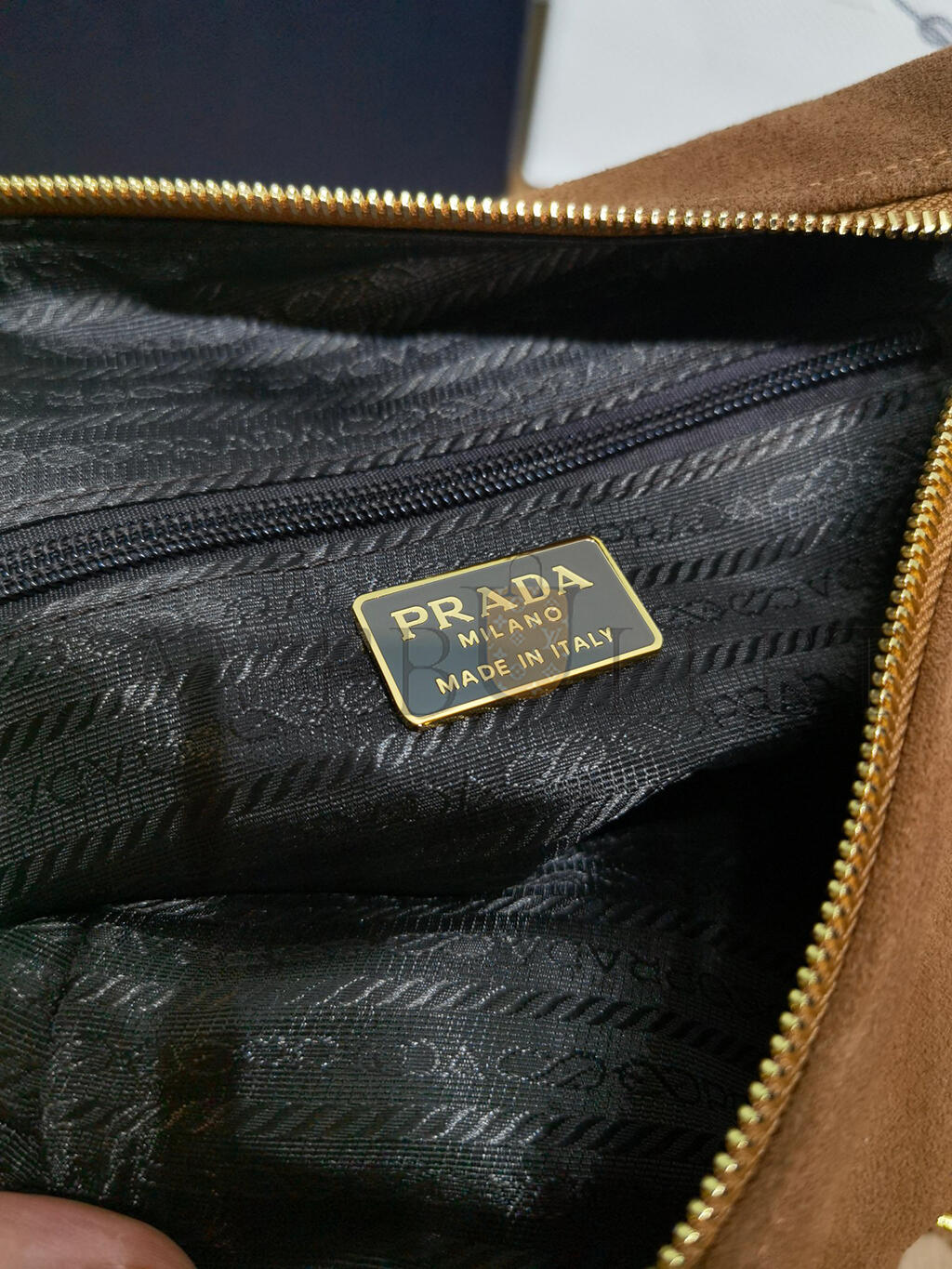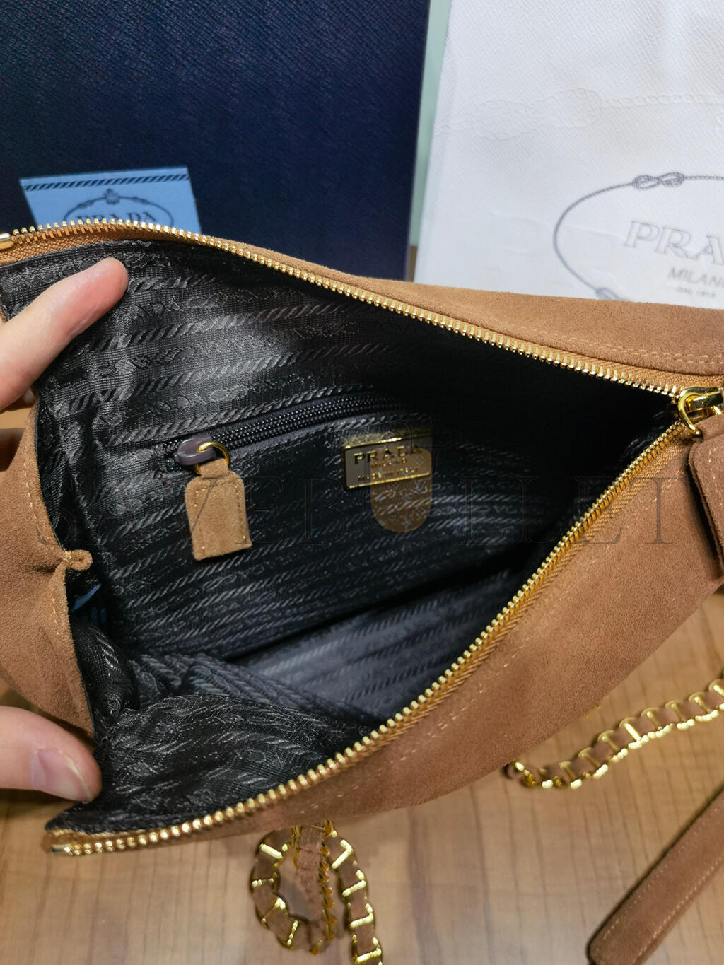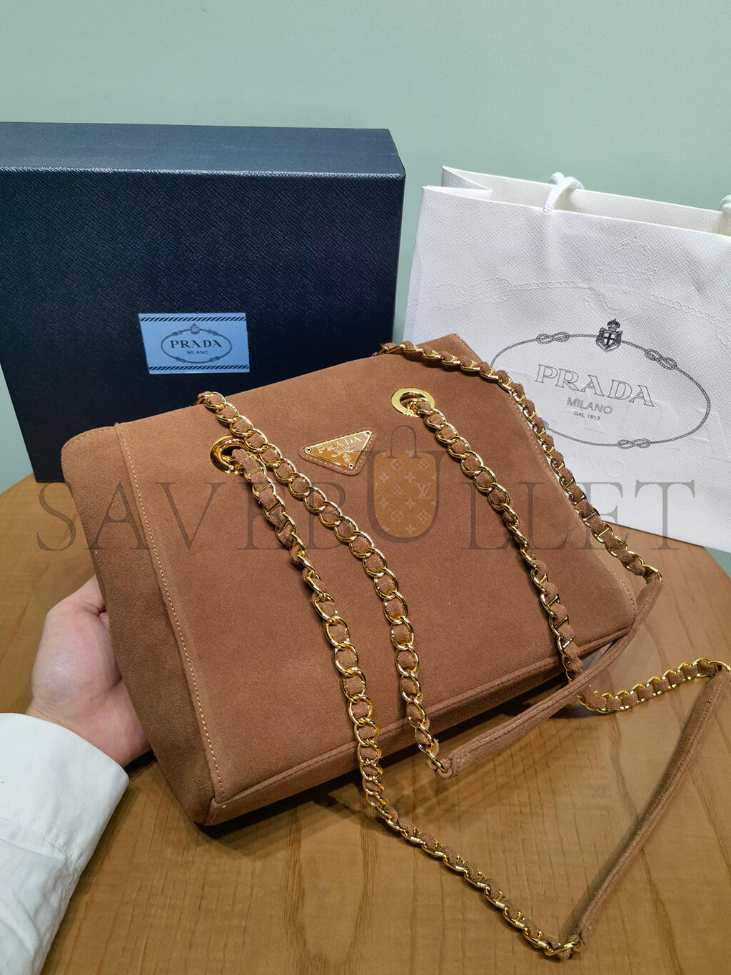 PRADA QUILTED BROWN SUEDE CHAIN SHOULDER BAG 1BD660 (26.5*25*7.5cm)