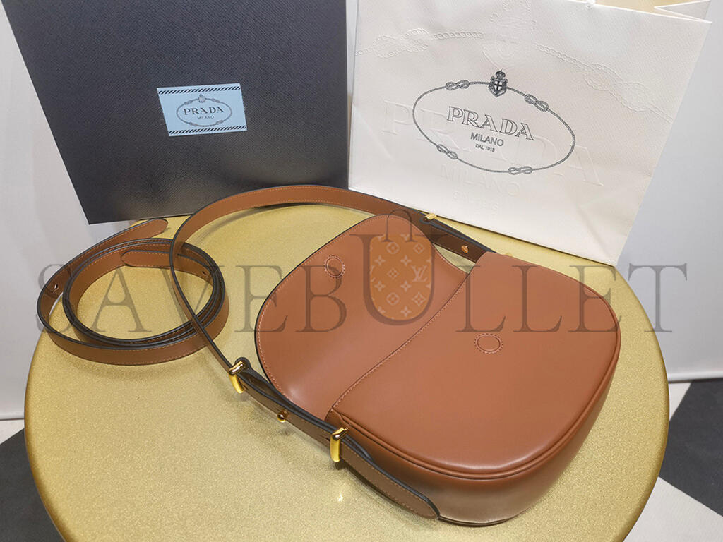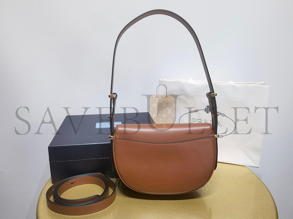 PRADA ARQUÉ LEATHER SHOULDER BAG WITH FLAP 1BD365 (23*12*6cm)