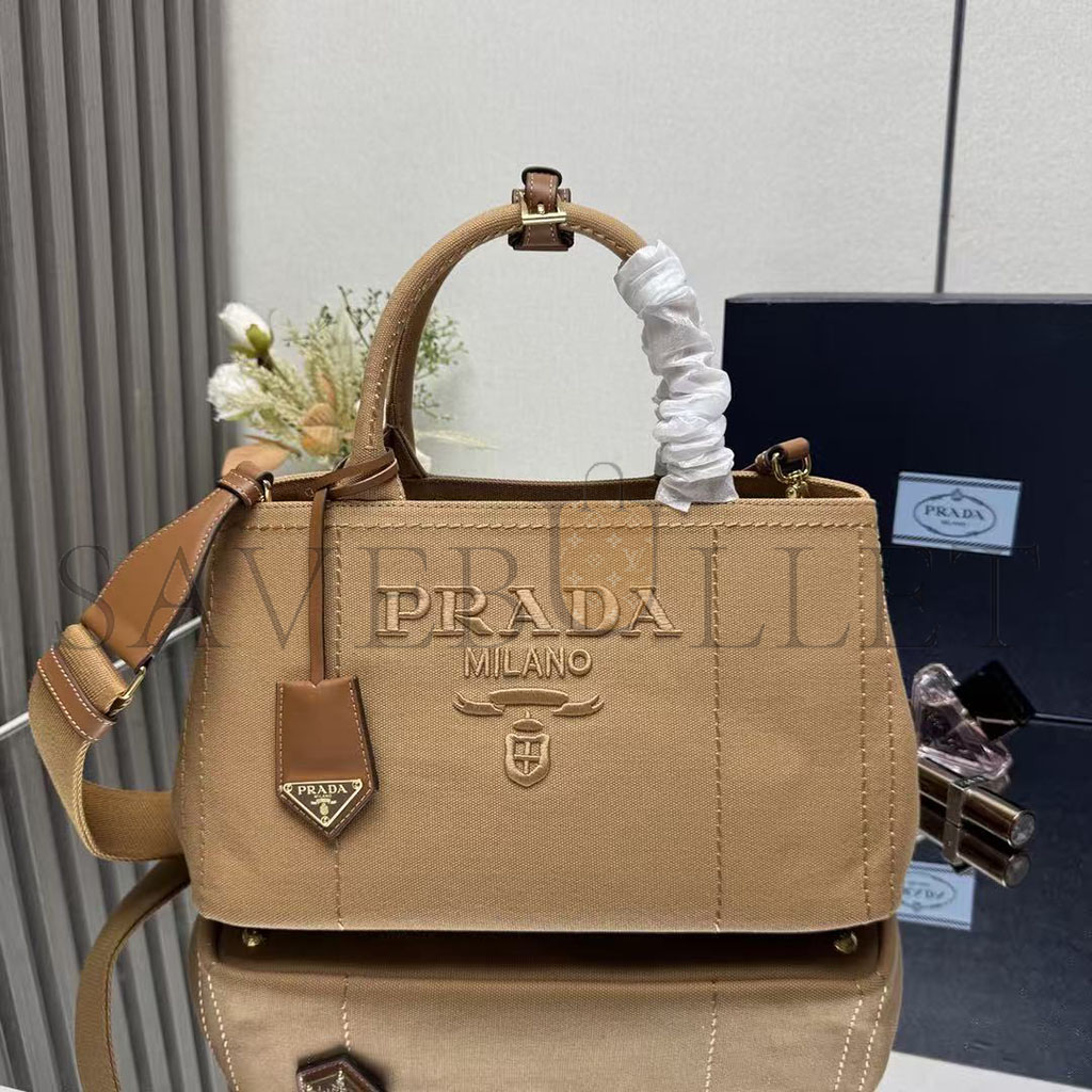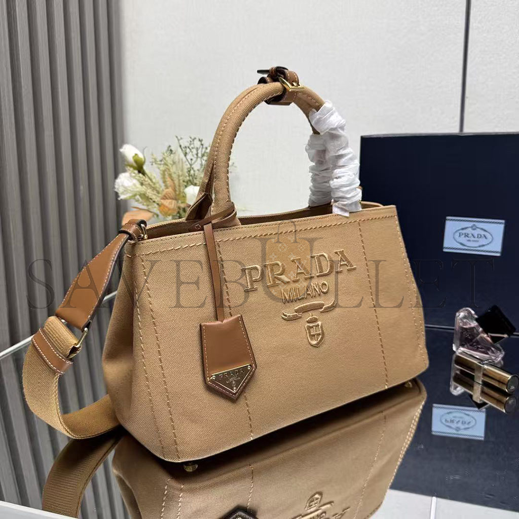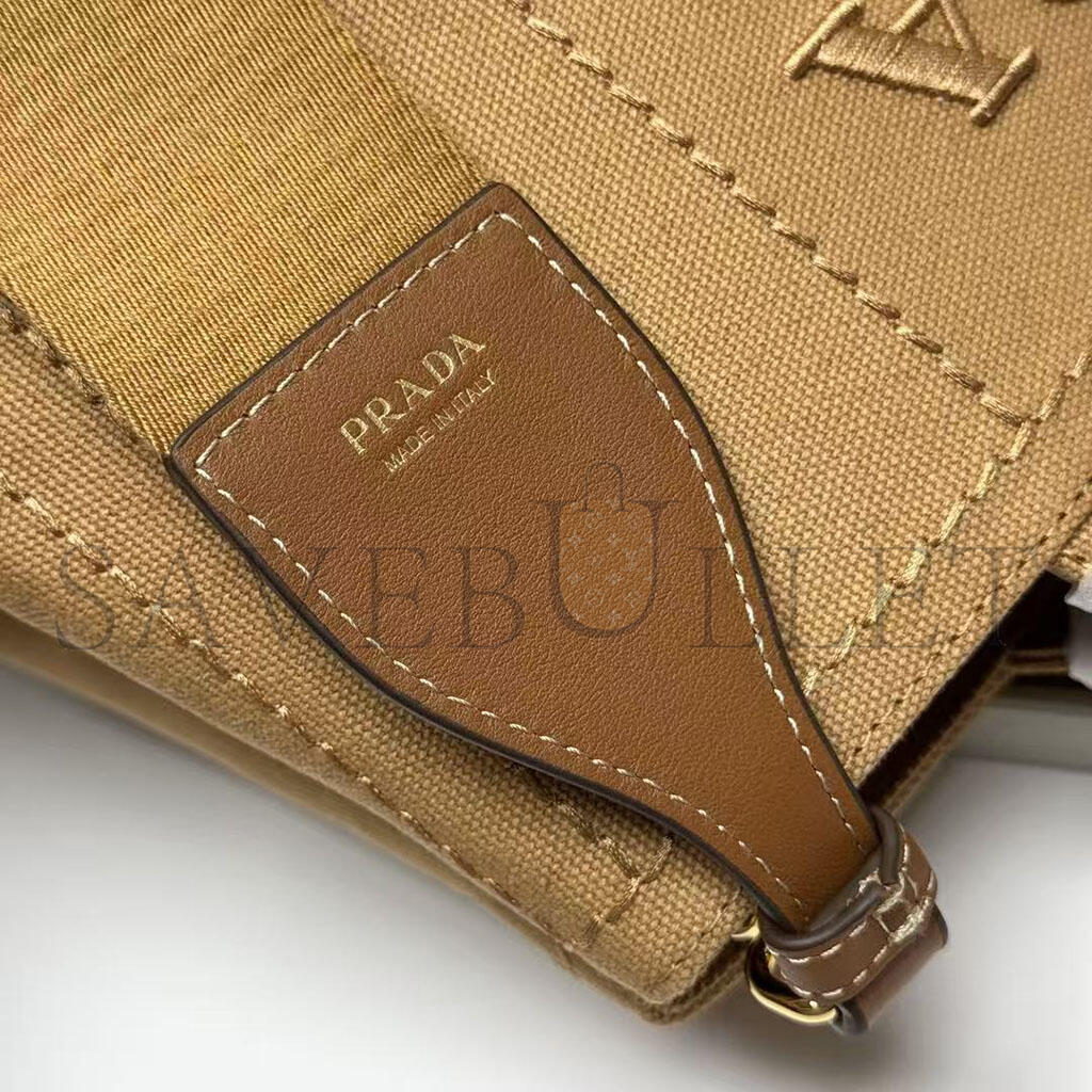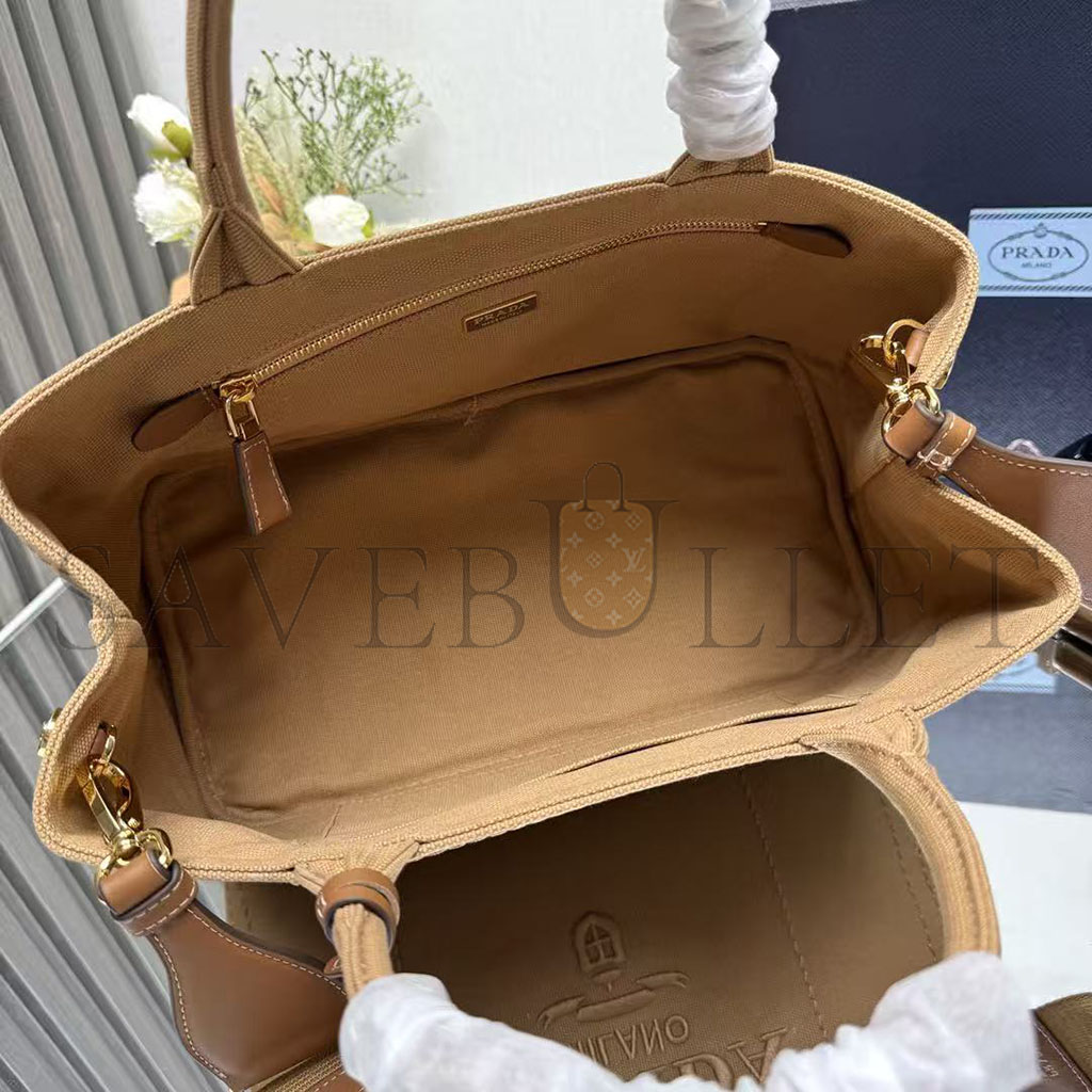 PRADA JARDINIÈRE LARGE LINEN BLEND HANDBAG 1BG554 01 (33*20*18cm)