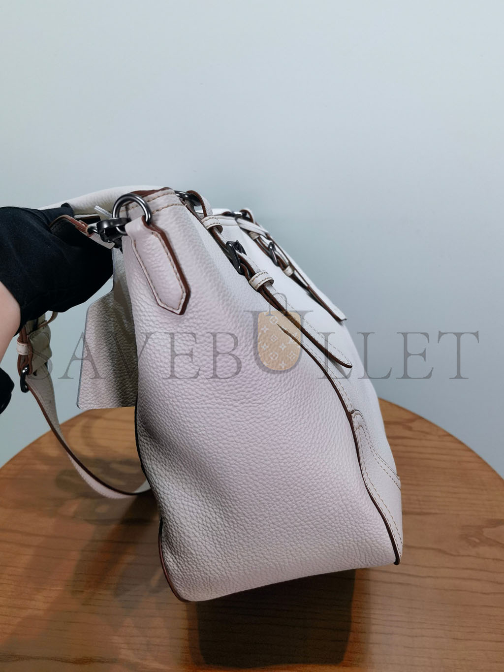 Dimensions: L13,8 x H9,2 x W4,3 inchSmooth calfskinHandbagOne handle (drop: 8,1 inch)Removable shoulder strap (drop: 22,6 inch)Removable leather key h..