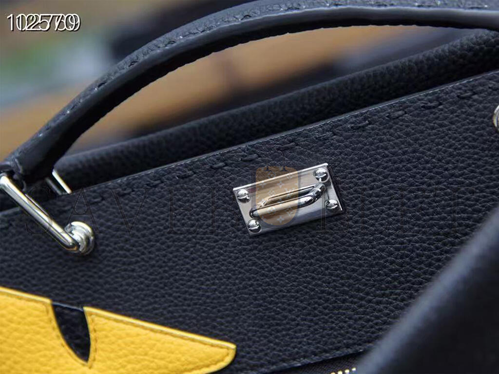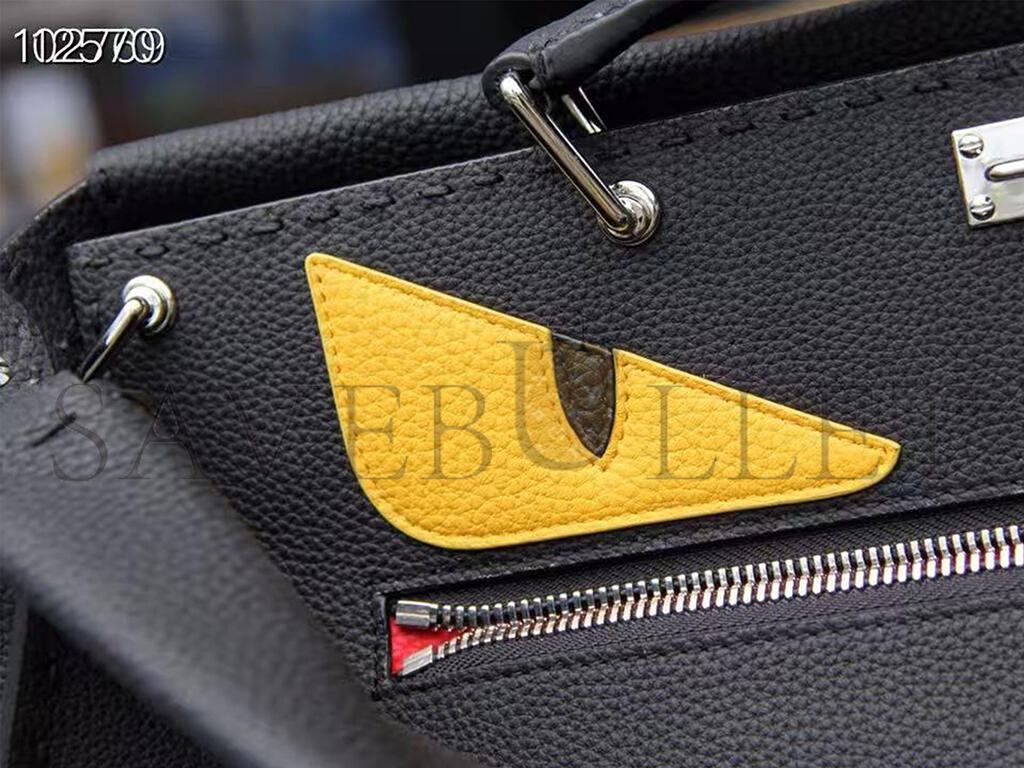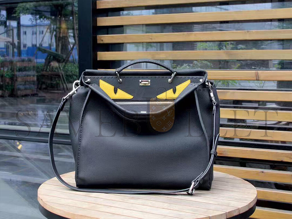 FENDI CUOIO ROMANO SELLERIA MONSTER EYES INLAY LARGE PEEKABOO SATCHEL BLACK SUNFLOWER (42*34*18cm)
