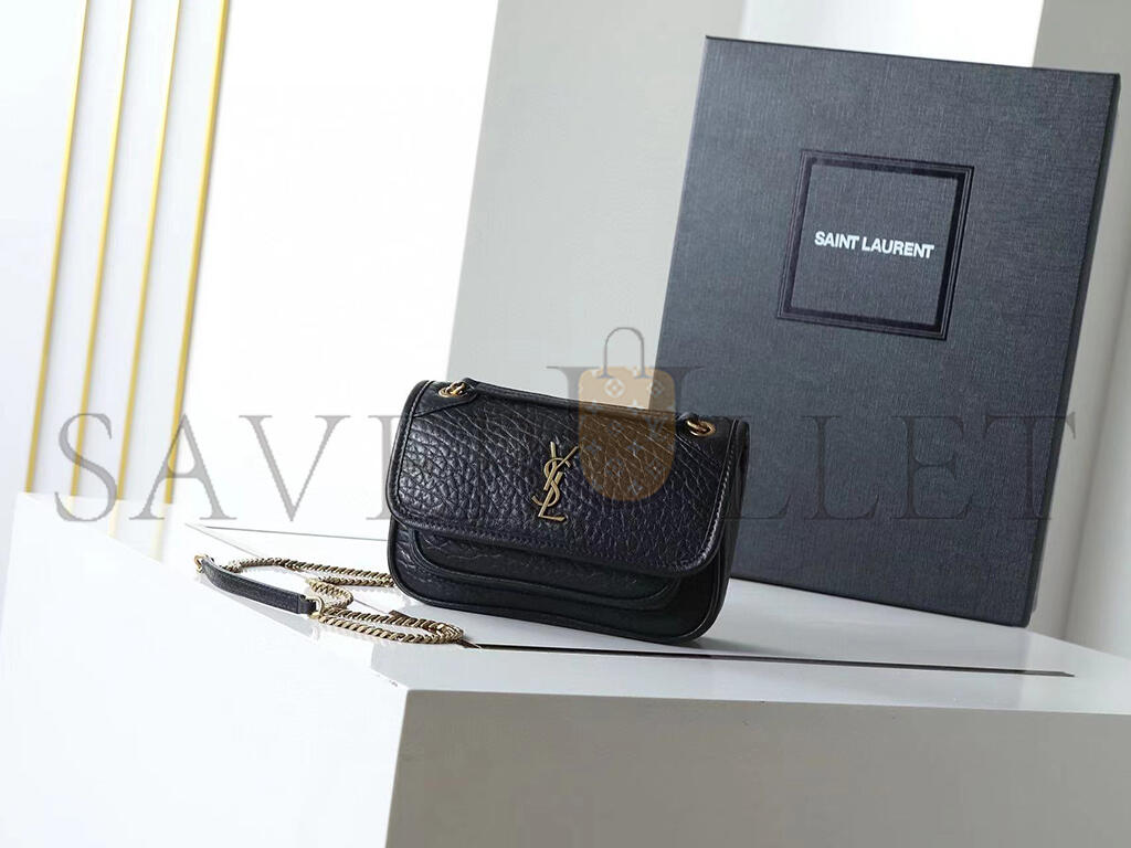 YSL NIKI CRINKLED-LEATHER SHOULDER BAG (18.5*12*7cm)