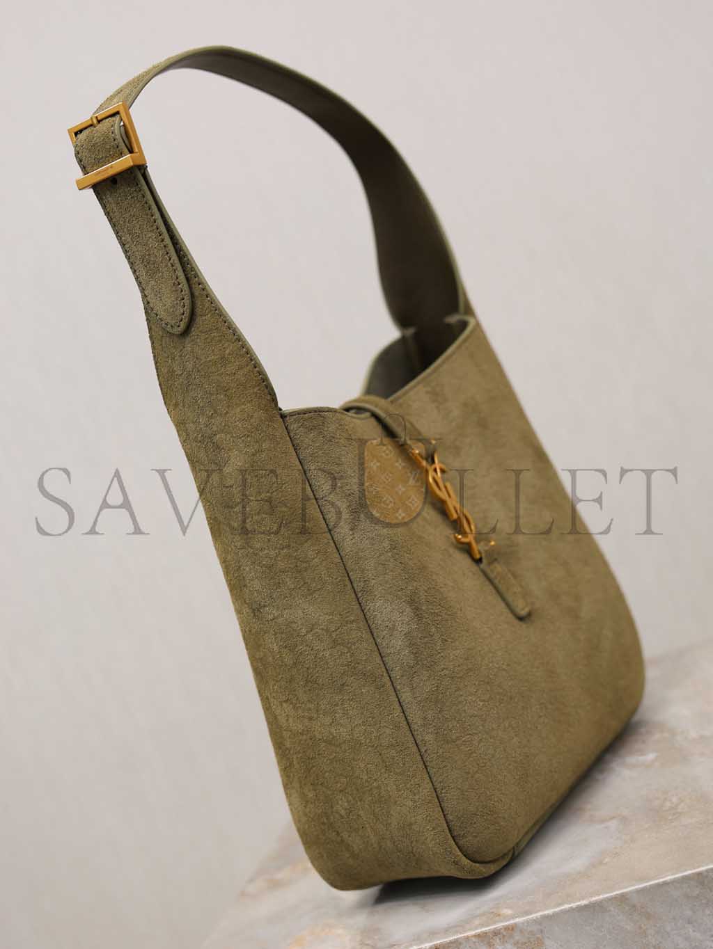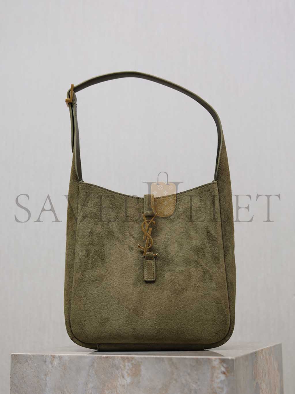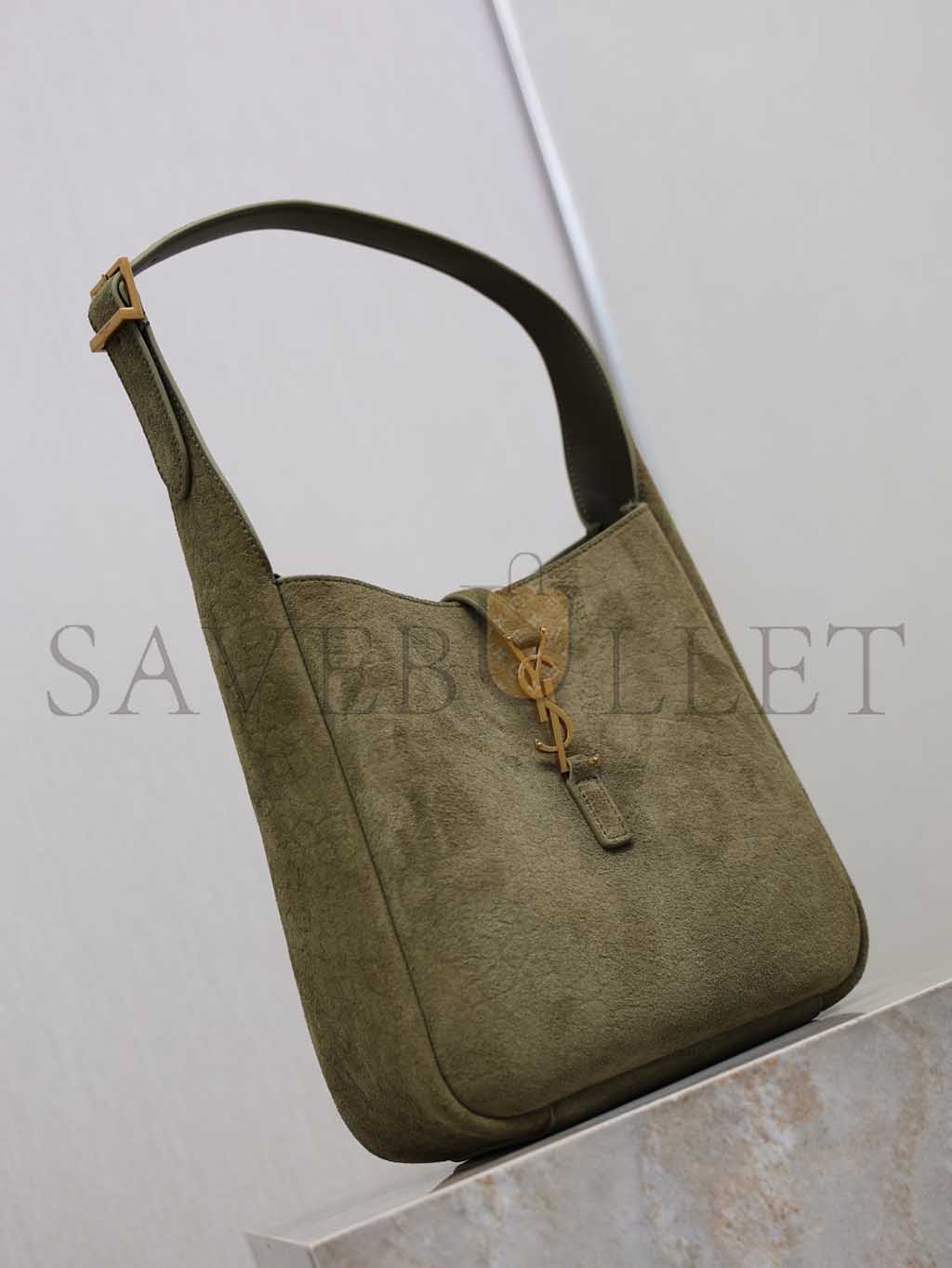 YSL LE 5 À 7 SUEDE HOBO BAG IN OLIVE 713938 (23*22*8.5cm)