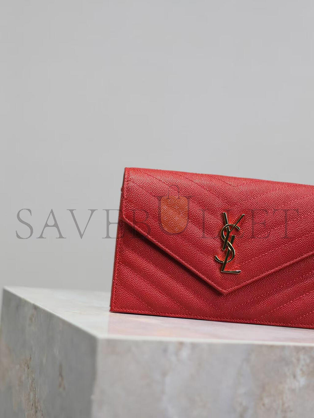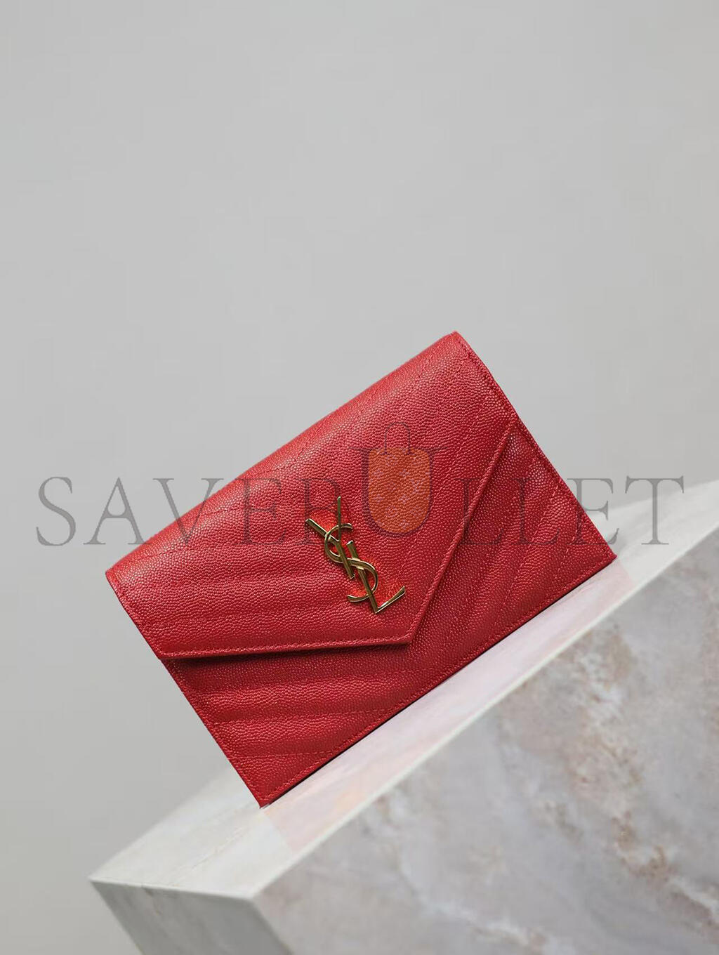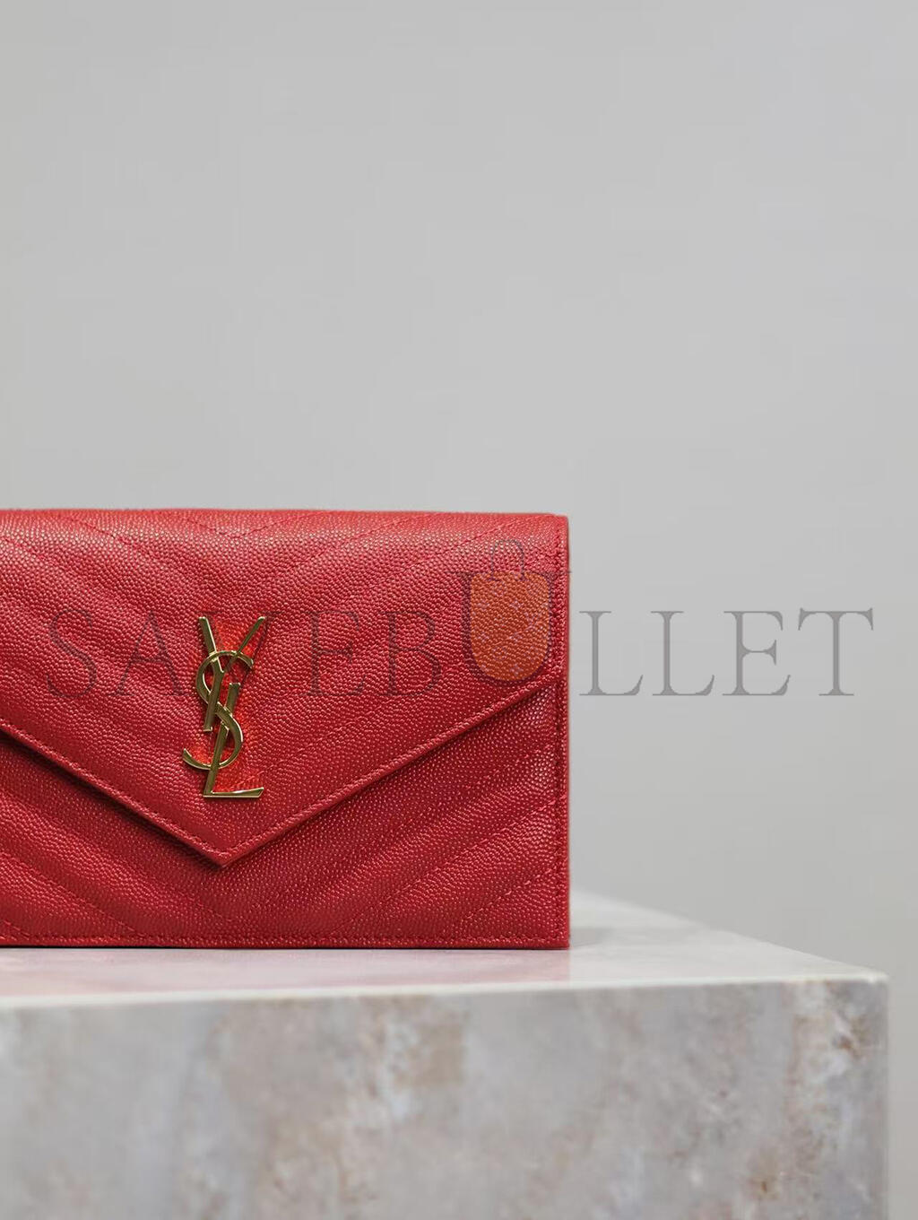 YSL CASSANDRE MATELASSÉ ENVELOPE CHAIN WALLET IN GRAIN DE POUDRE EMBOSSED LEATHER 393953BOW016515 (19*12.5*3.5cm)