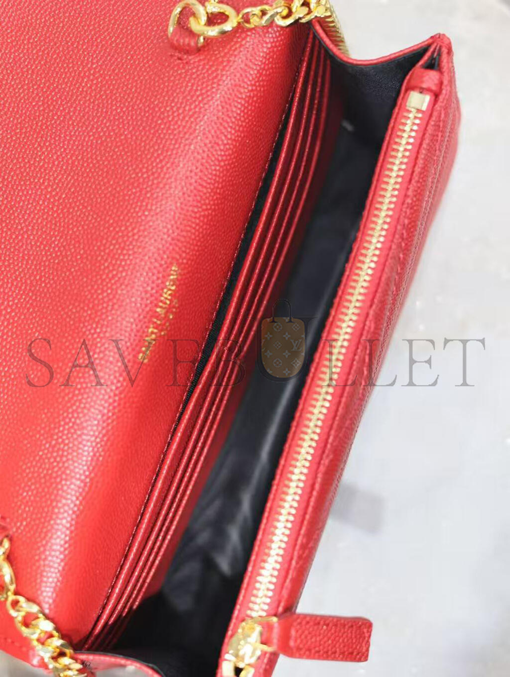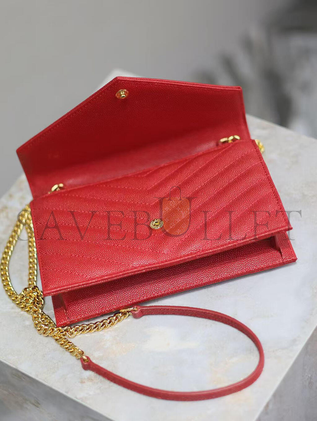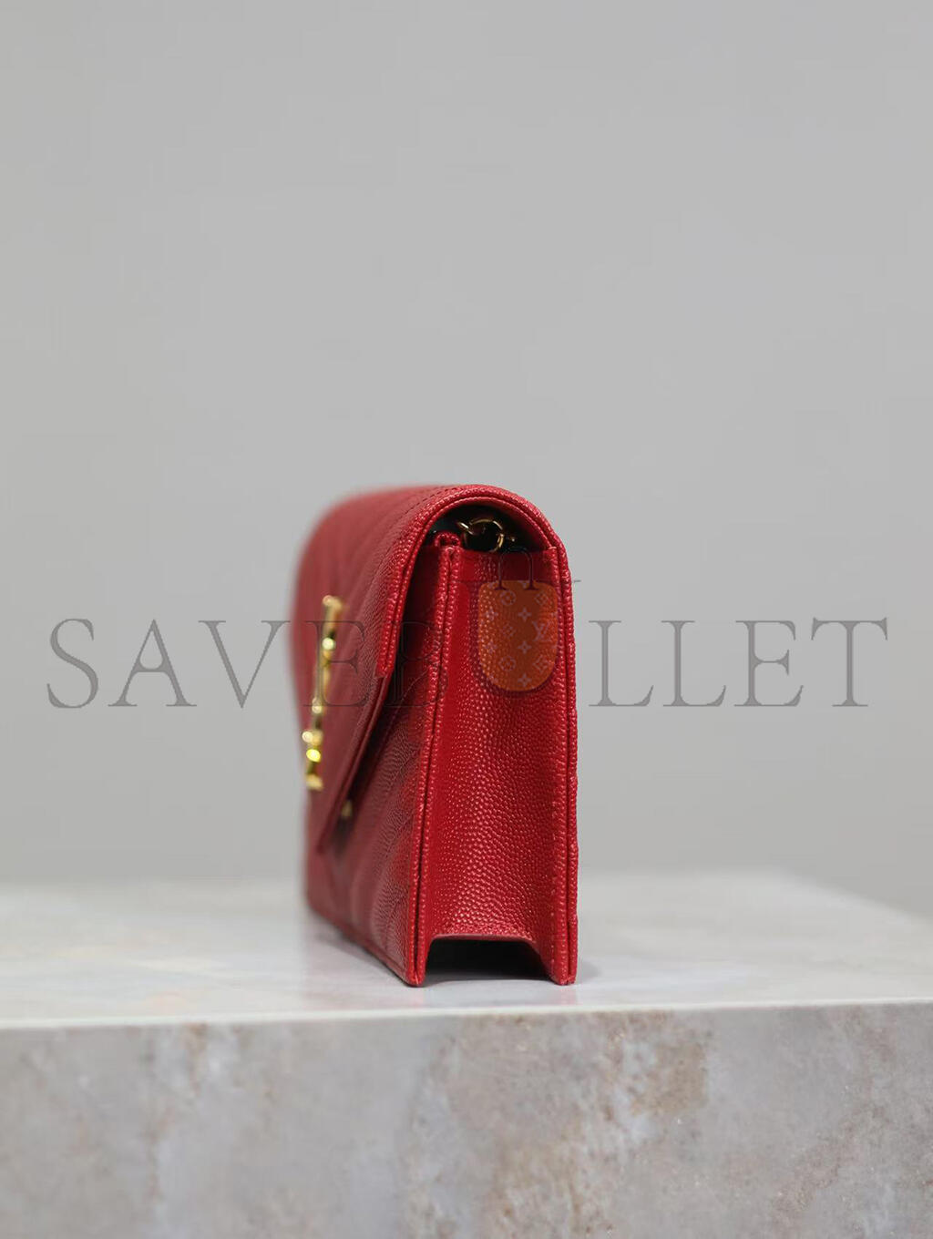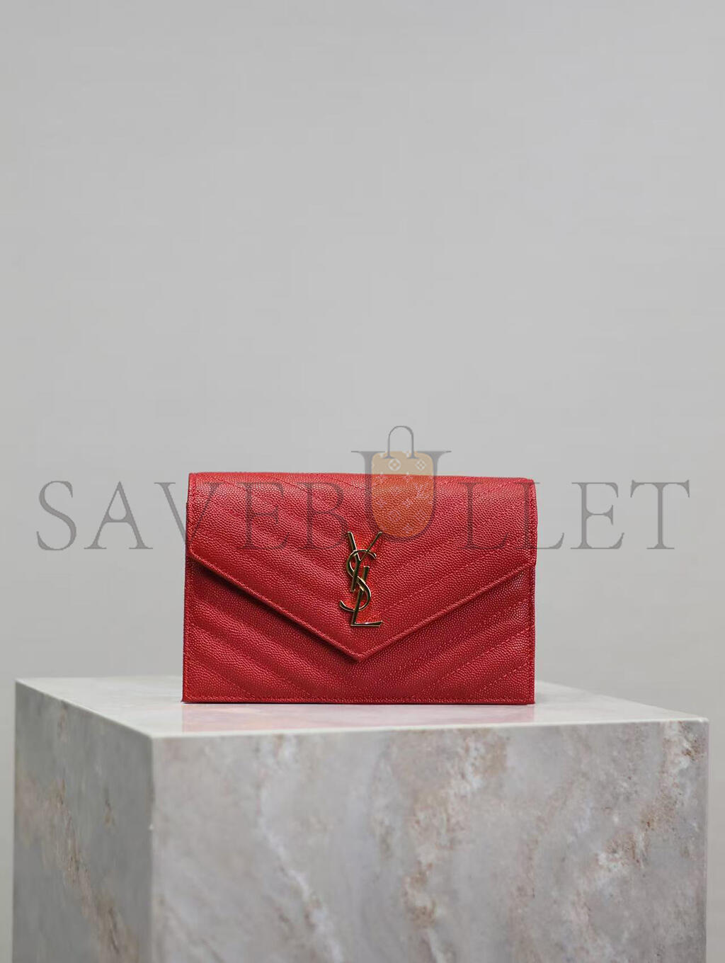 YSL CASSANDRE MATELASSÉ ENVELOPE CHAIN WALLET IN GRAIN DE POUDRE EMBOSSED LEATHER 393953BOW016515 (19*12.5*3.5cm)