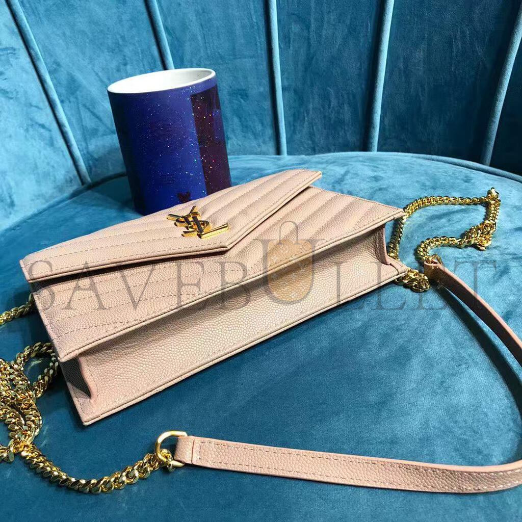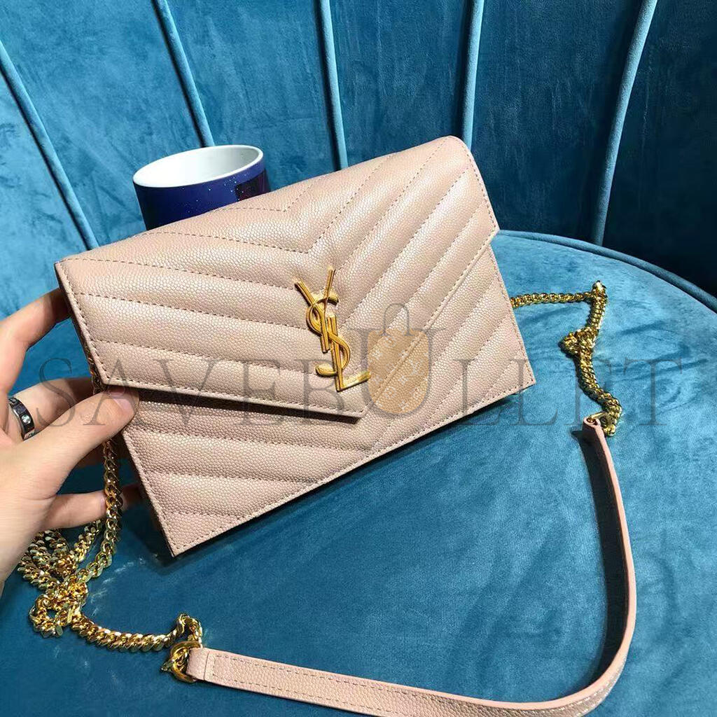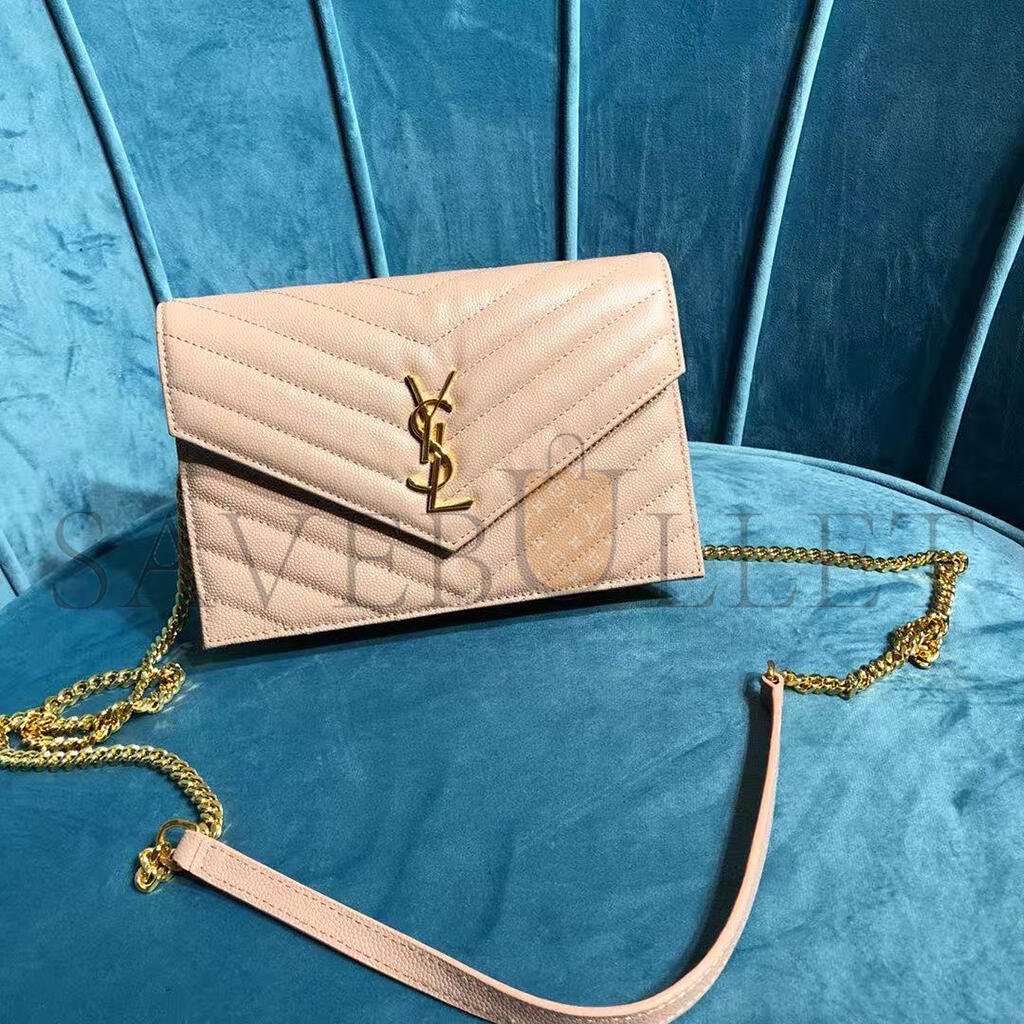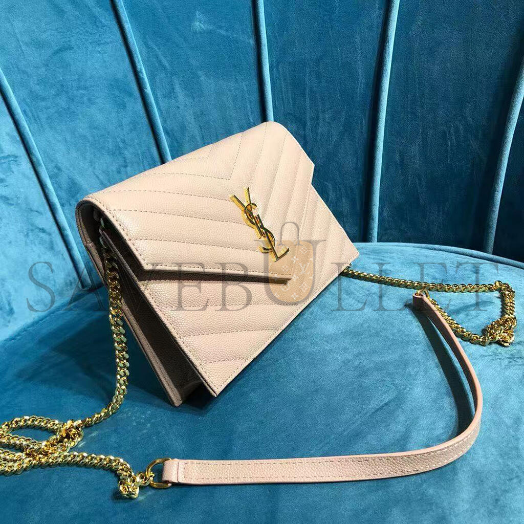 YSL CASSANDRE MATELASSÉ ENVELOPE CHAIN WALLET IN GRAIN DE POUDRE EMBOSSED LEATHER 742920BOW016920 (19*12.5*3.5cm)