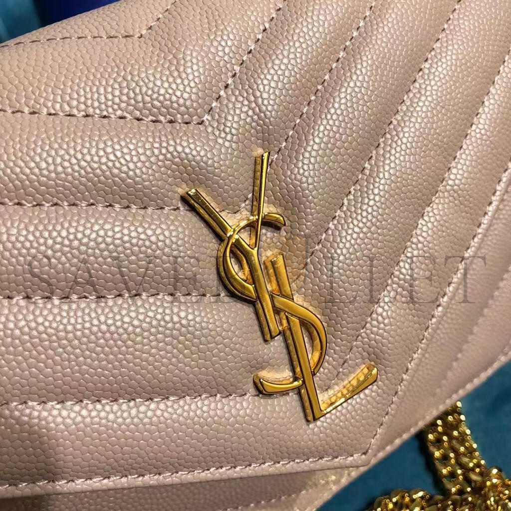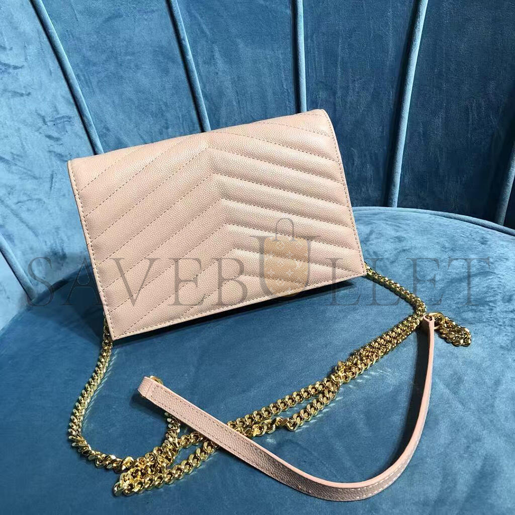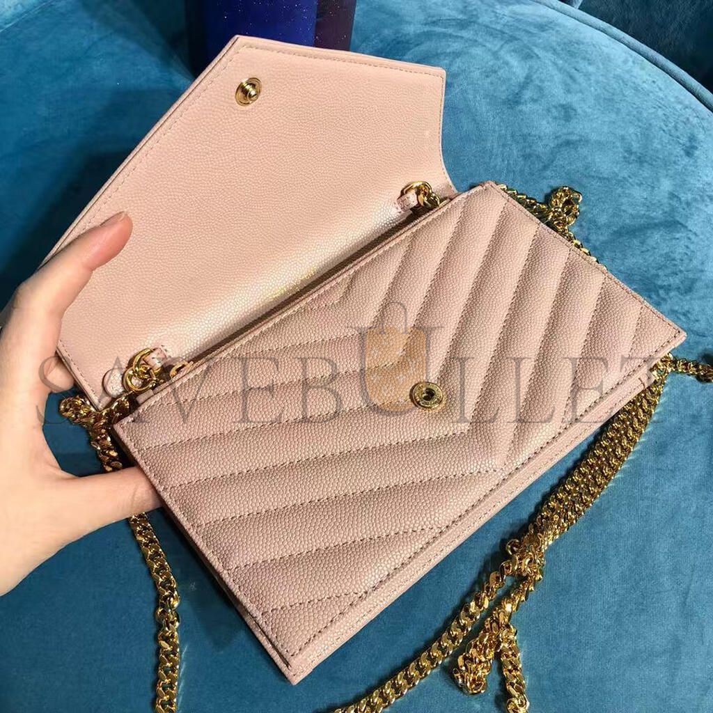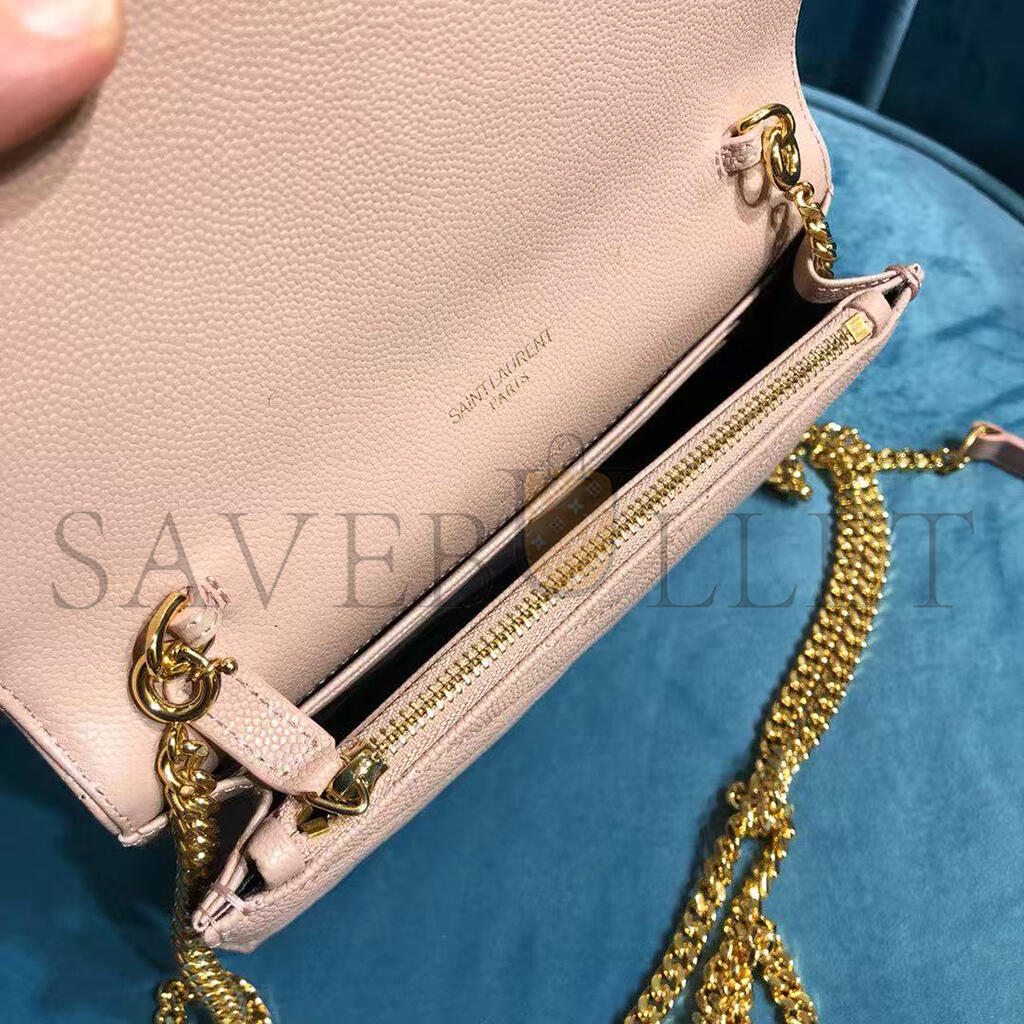 YSL CASSANDRE MATELASSÉ ENVELOPE CHAIN WALLET IN GRAIN DE POUDRE EMBOSSED LEATHER 742920BOW016920 (19*12.5*3.5cm)