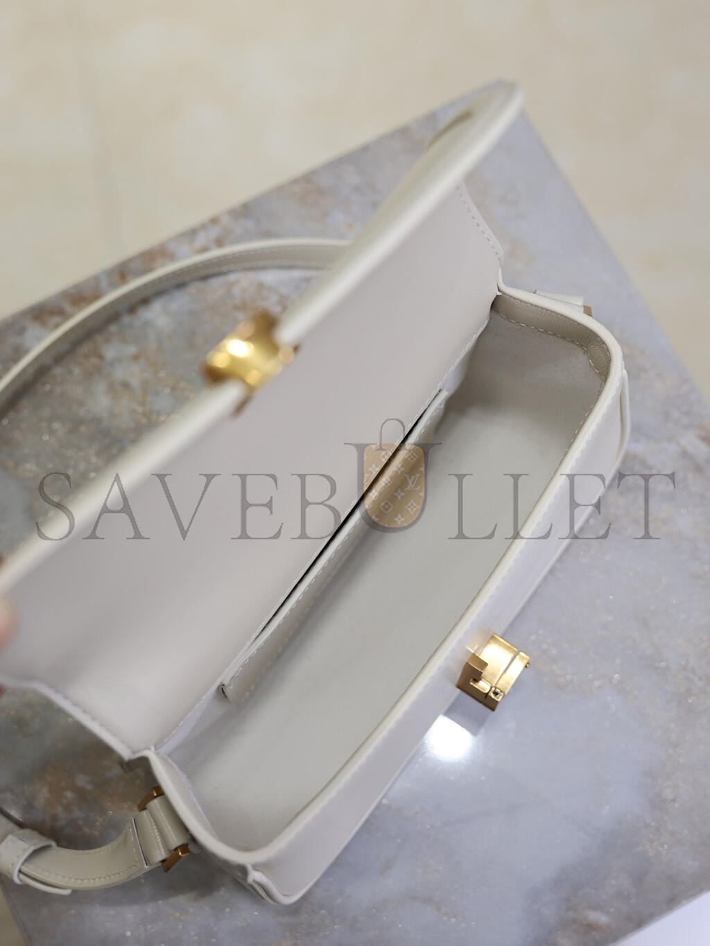 Matelassé workmanshipLeather handlesDetachable, adjustable 105 cm leather shoulder strapRemovable leather mirror caseGold-tone hardwareMetal lettering..