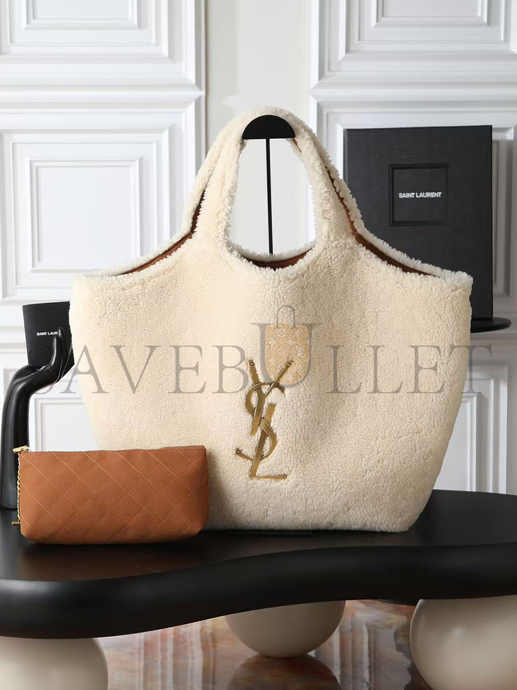 YSL ICARE LONG-HAIRED LAMBSKIN HANDBAG 698651AAFTG2910 (55*43*5cm)