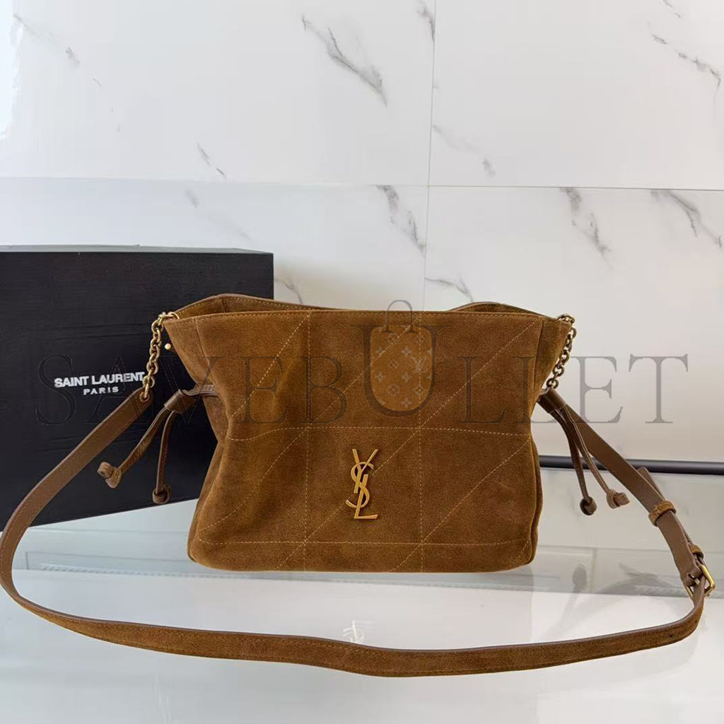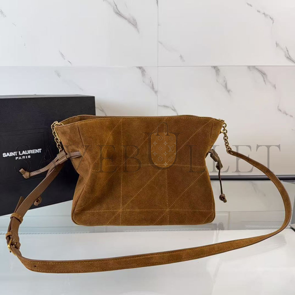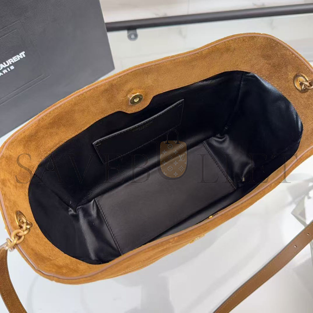 YSL JAMIE LEATHER-TRIMMED QUILTED SUEDE SHOULDER BAG (31*24*11cm)