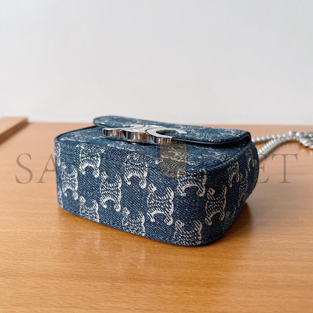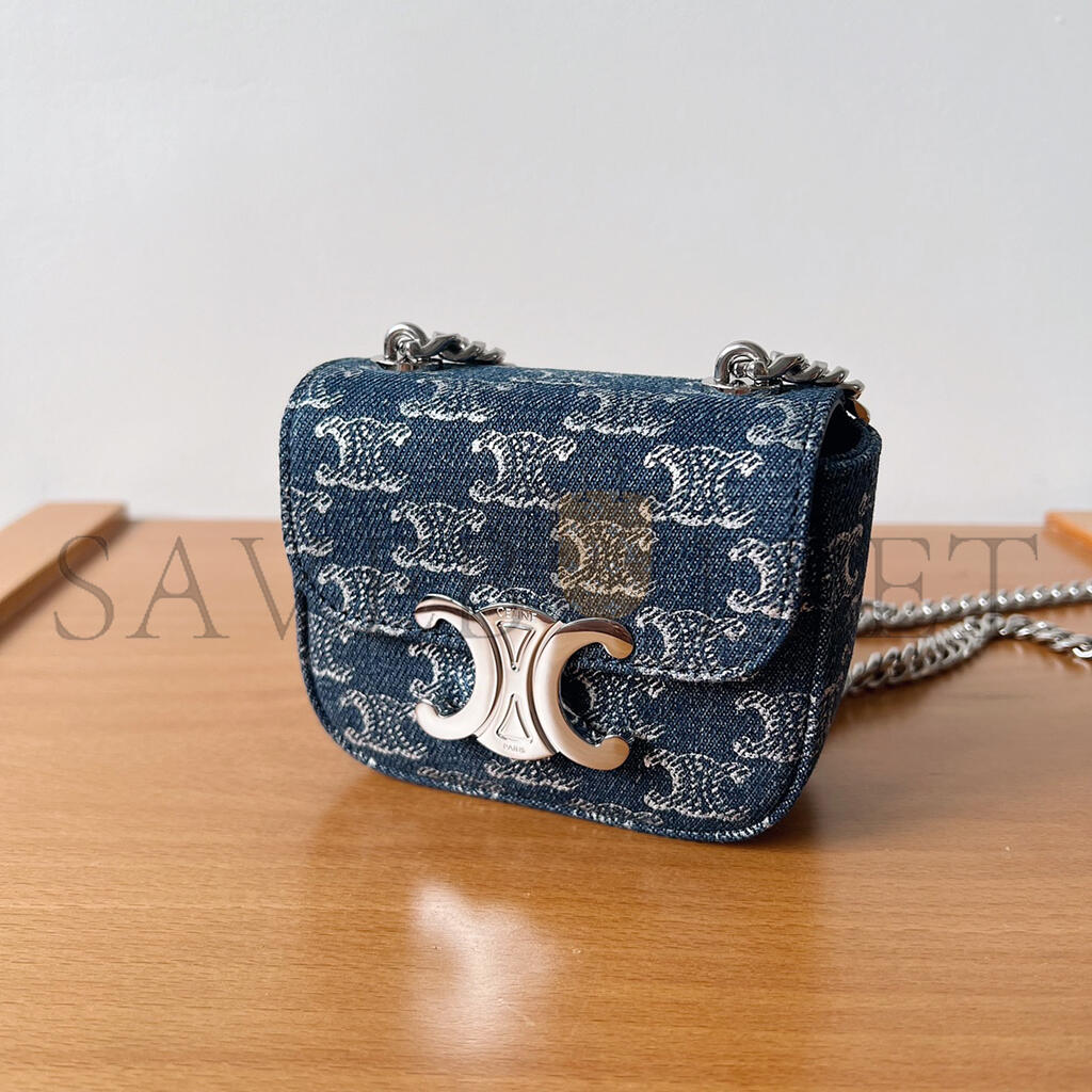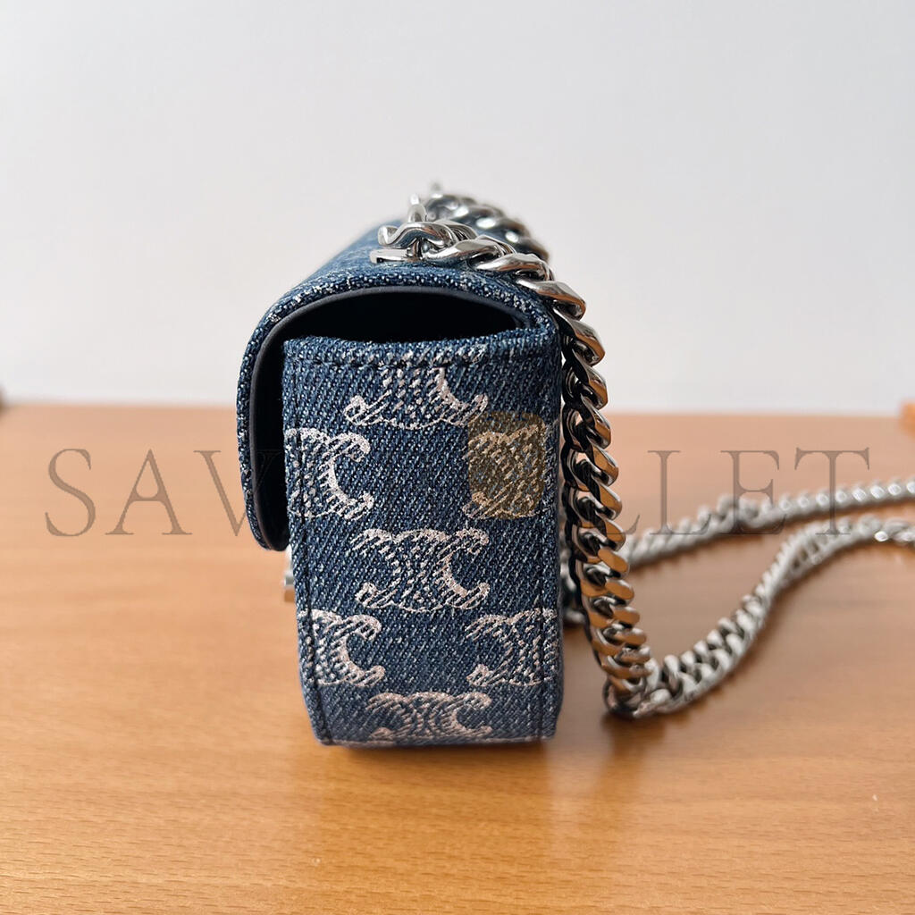 CELINE MINI CHAIN CLAUDE IN DENIM WITH TRIOMPHE 10L842FIN.05DS (11*9.5*4cm)