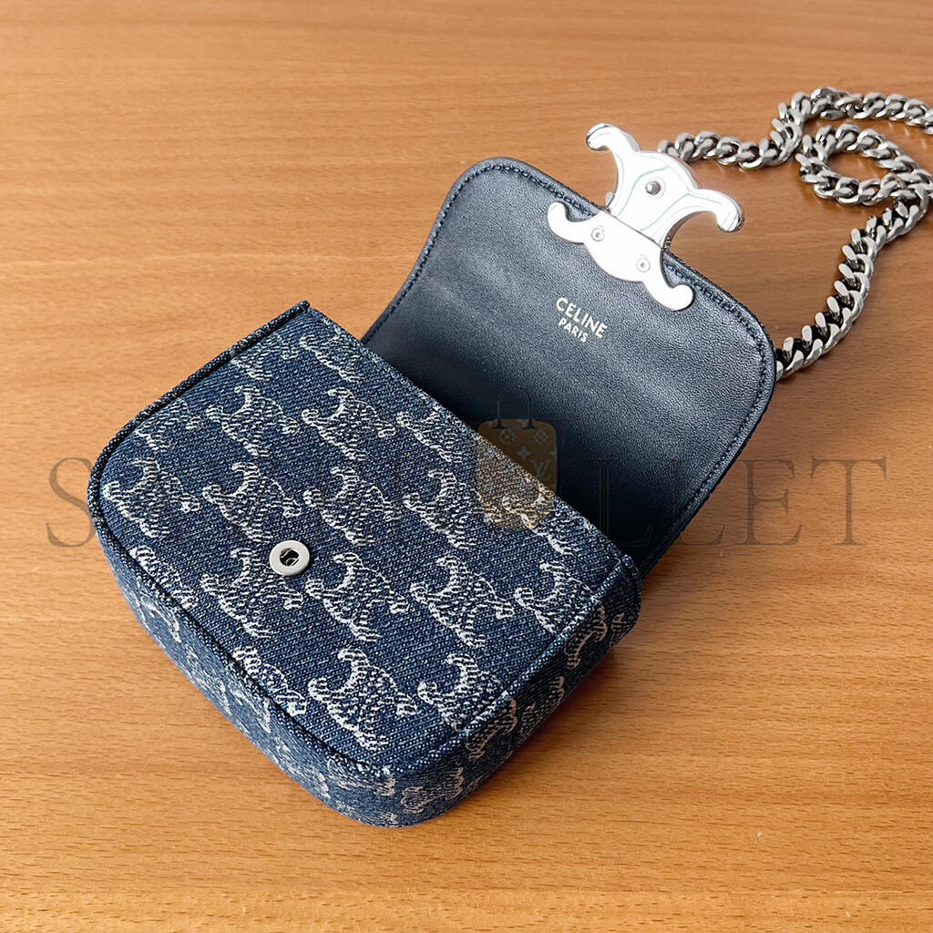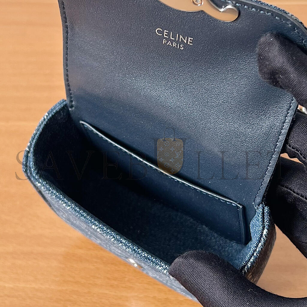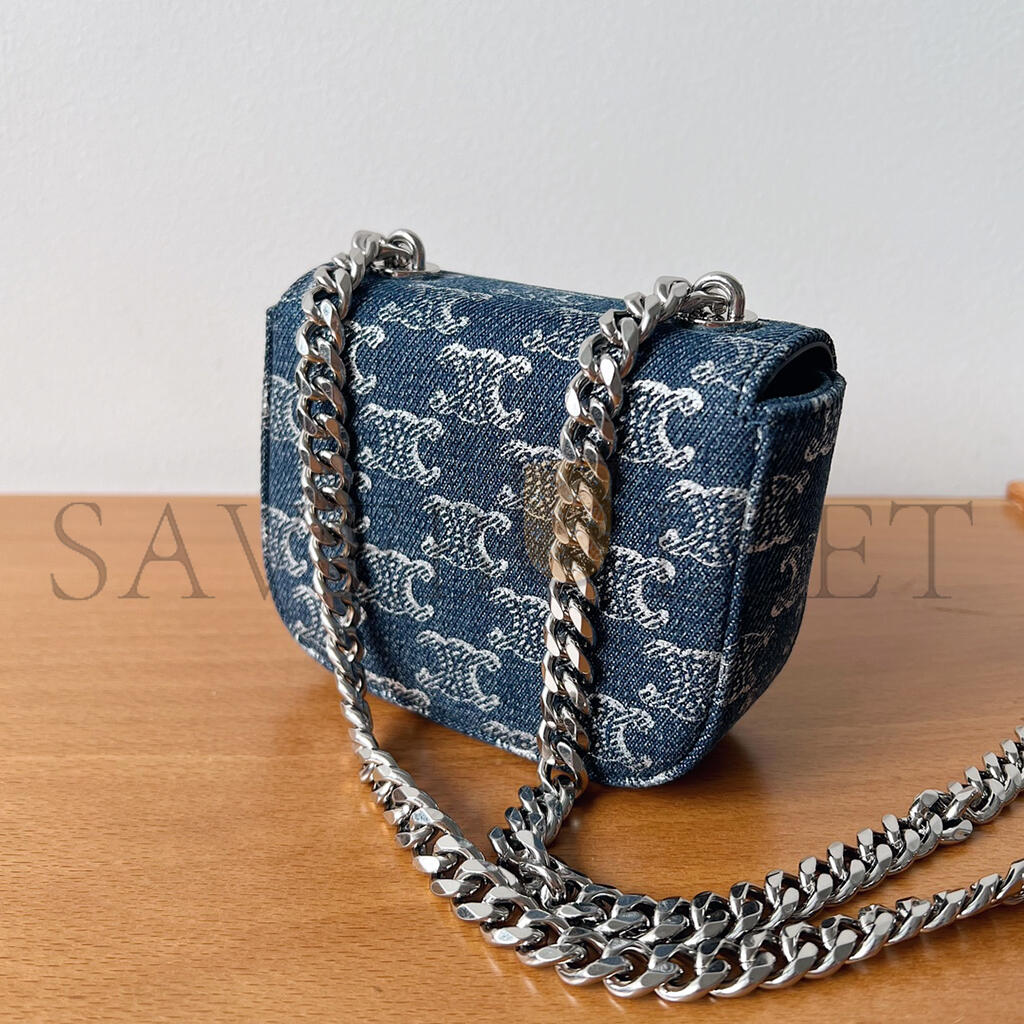 CELINE MINI CHAIN CLAUDE IN DENIM WITH TRIOMPHE 10L842FIN.05DS (11*9.5*4cm)