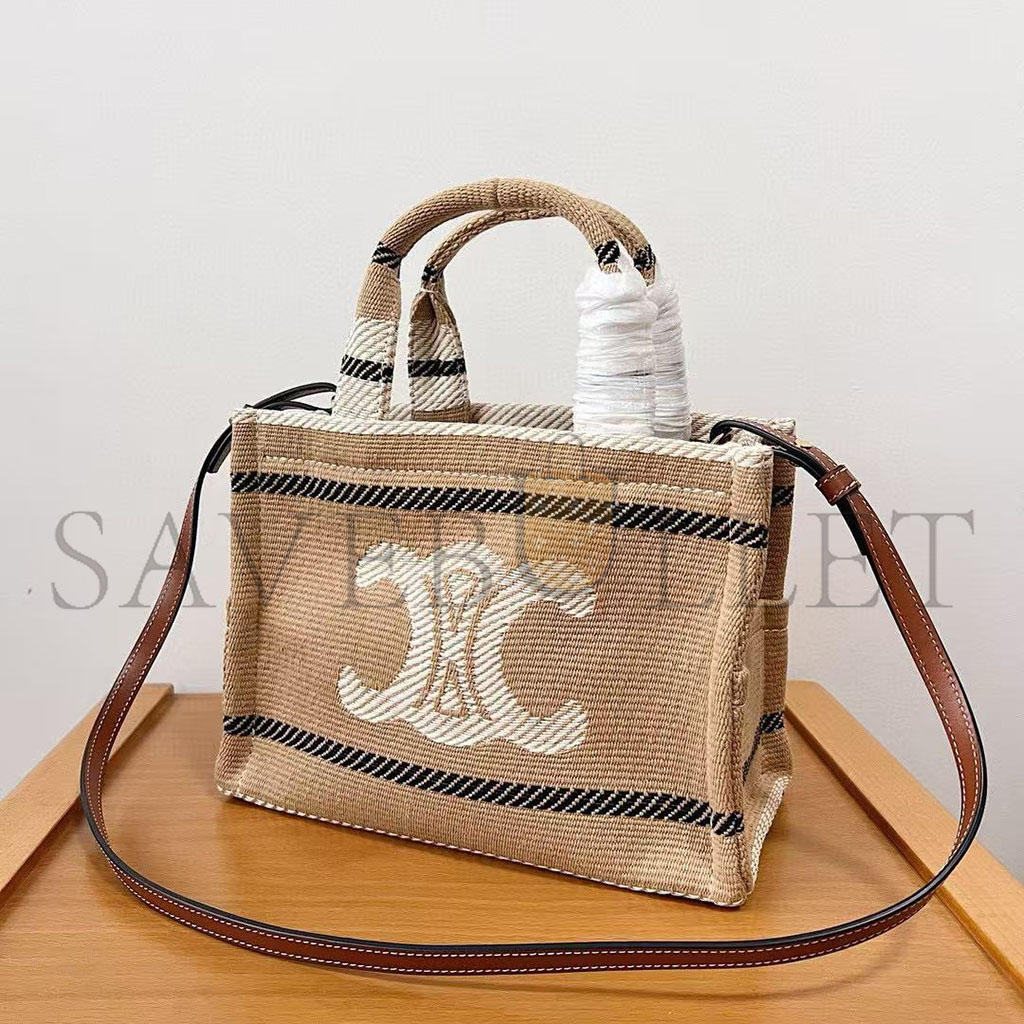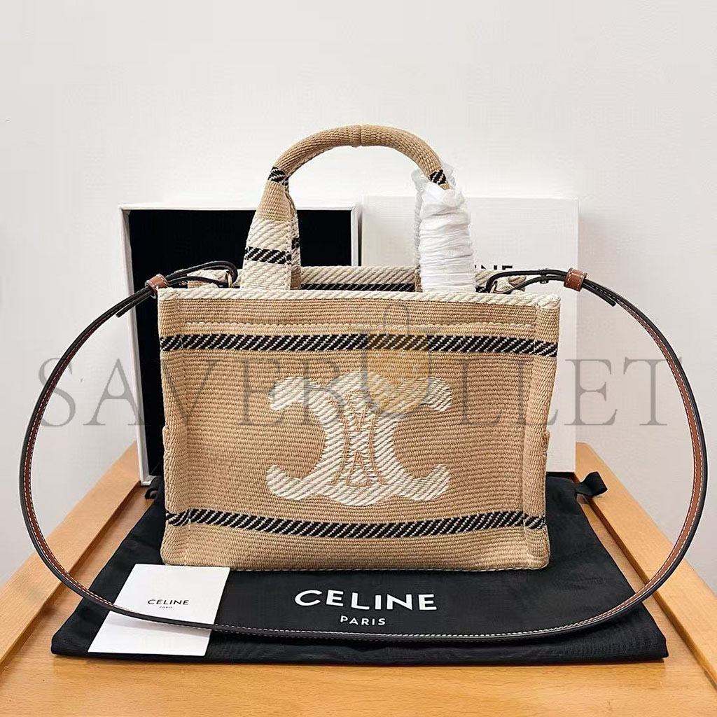 CELINE SMALL CABAS THAIS IN STRIPED TEXTILE WITH TRIOMPHE 199162FV2.02BL (25.5*18.5*12cm)