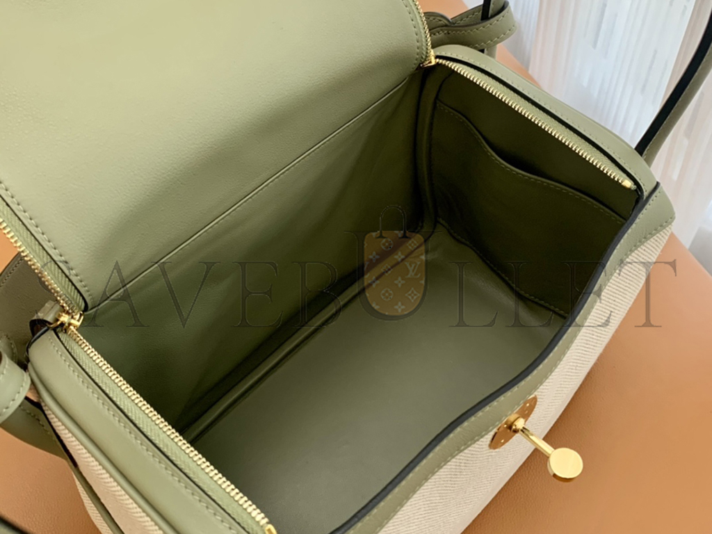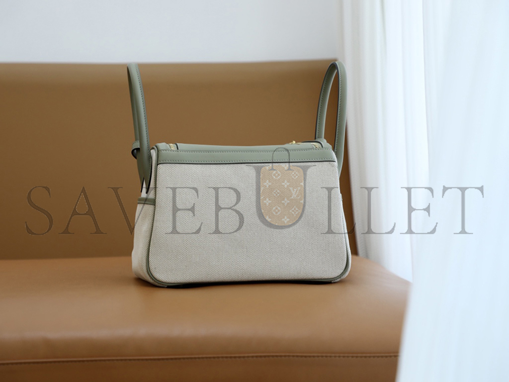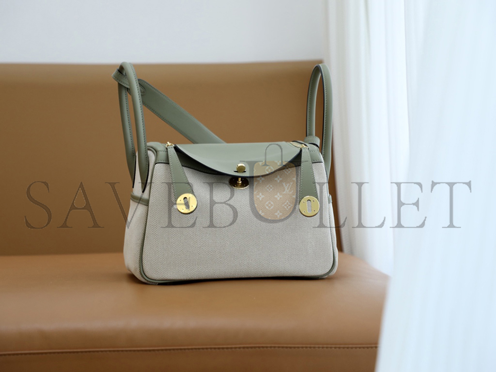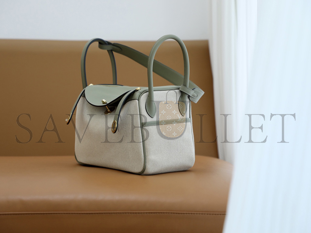 HERMÈS MASTER LINDY 26 BAG CANVAS AND LEATHER GOLD HARDWARE (26*18*12cm)