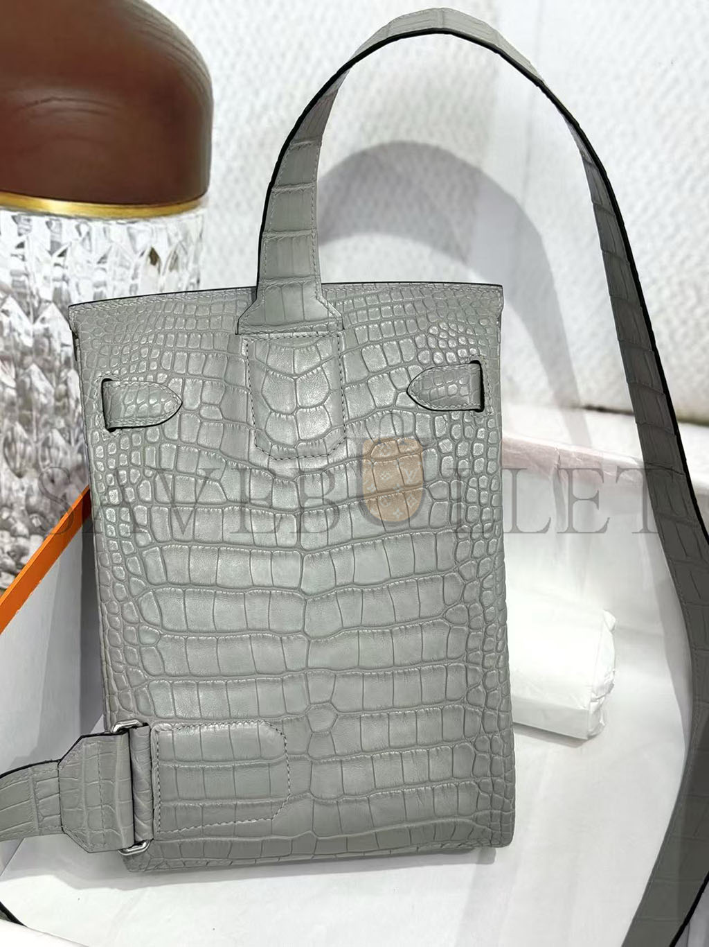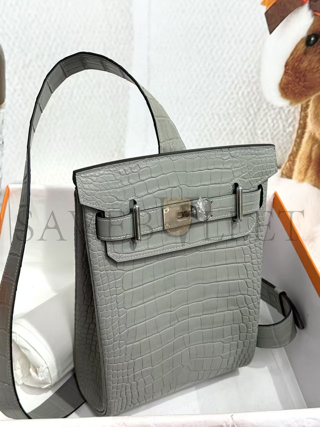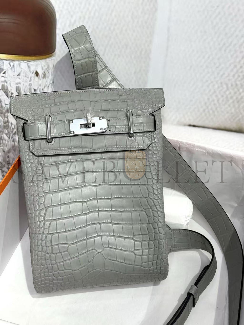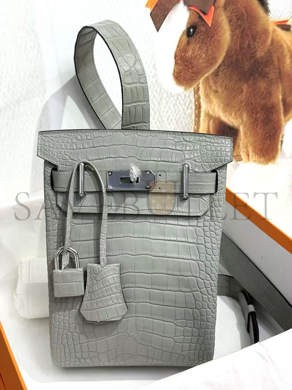 HERMÈS MASTER HAC A DOS PM BACKPACK IN GRIS CIMENT ALLIGATOR (26*17*8cm)