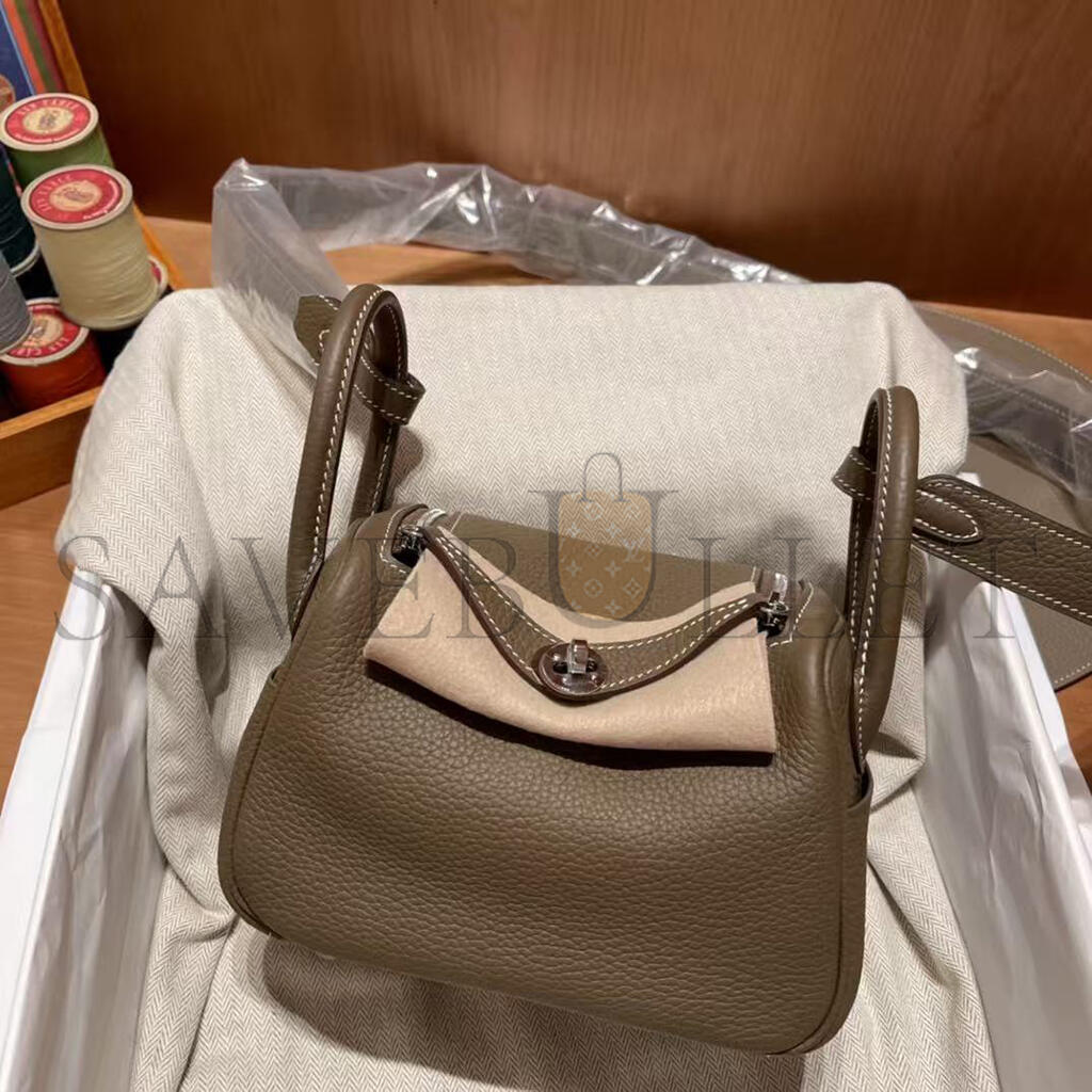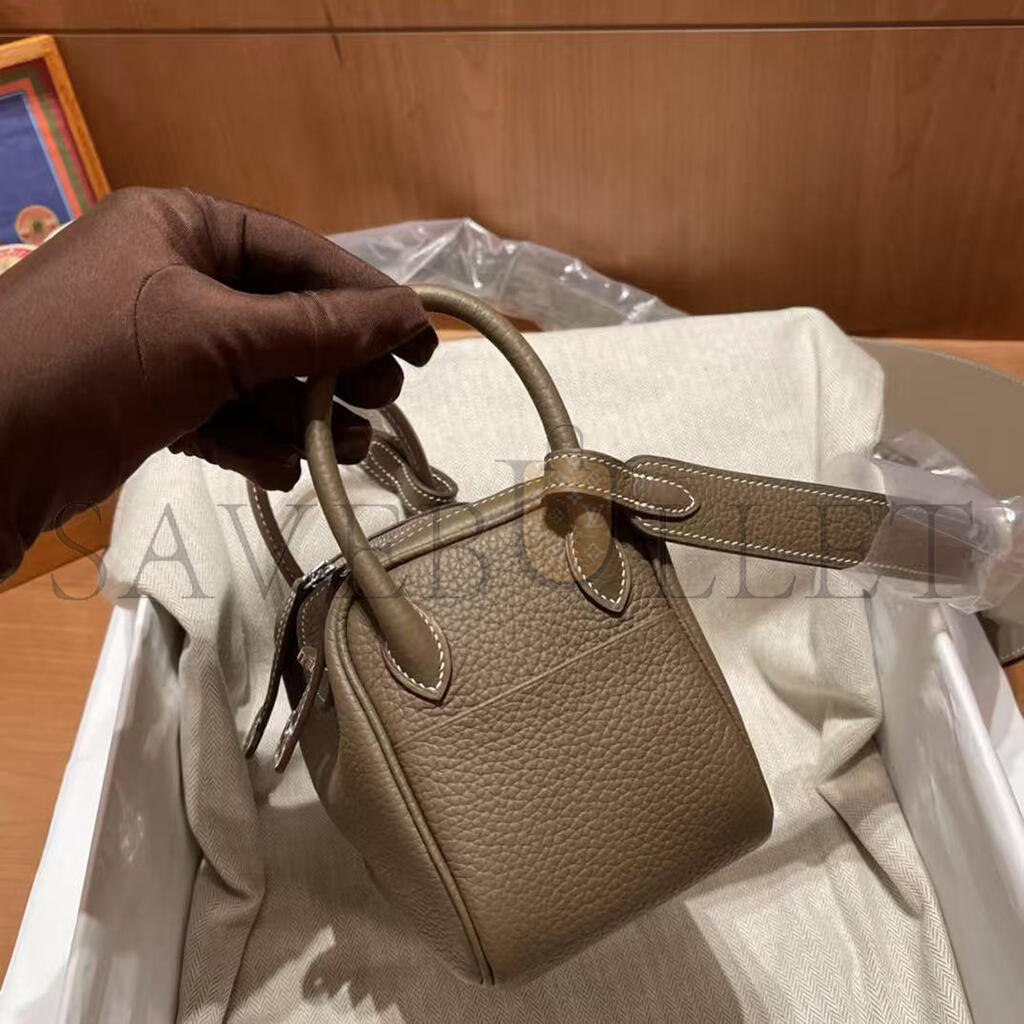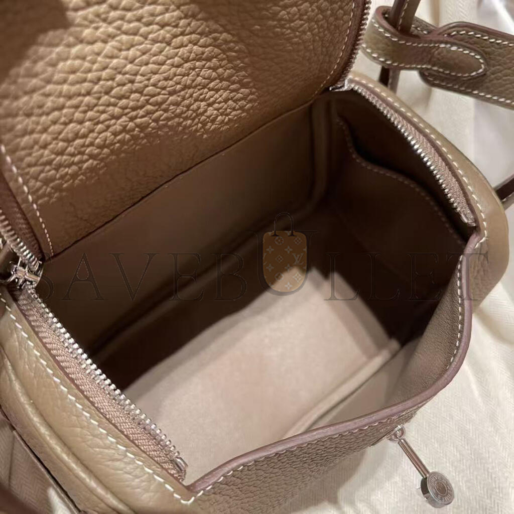 HERMÈS MINI LINDY IITAURILLON CLEMENCE ETOUPE SILVER METAL FITTINGS (19*13*9.5cm)