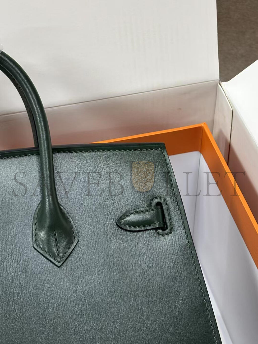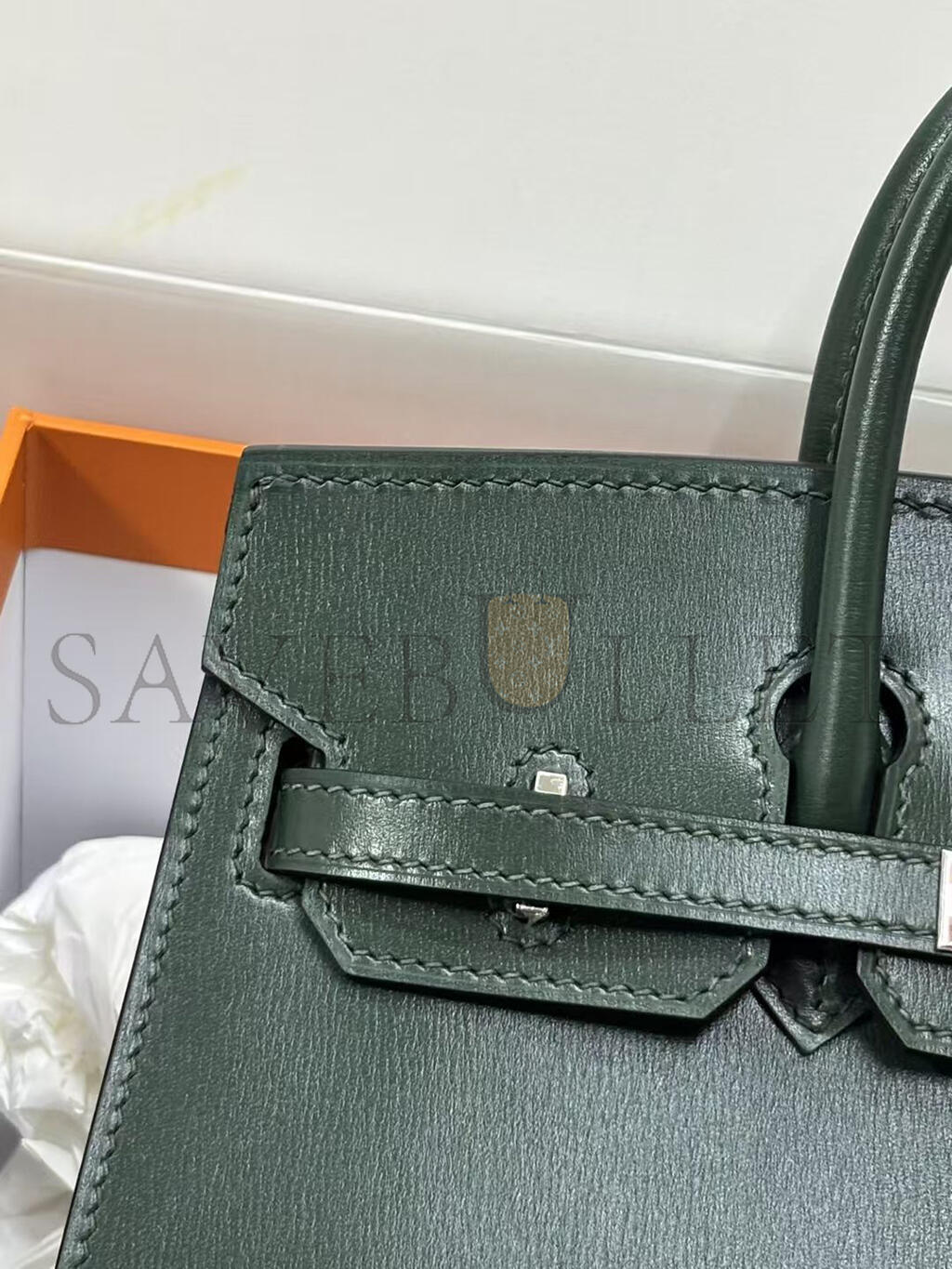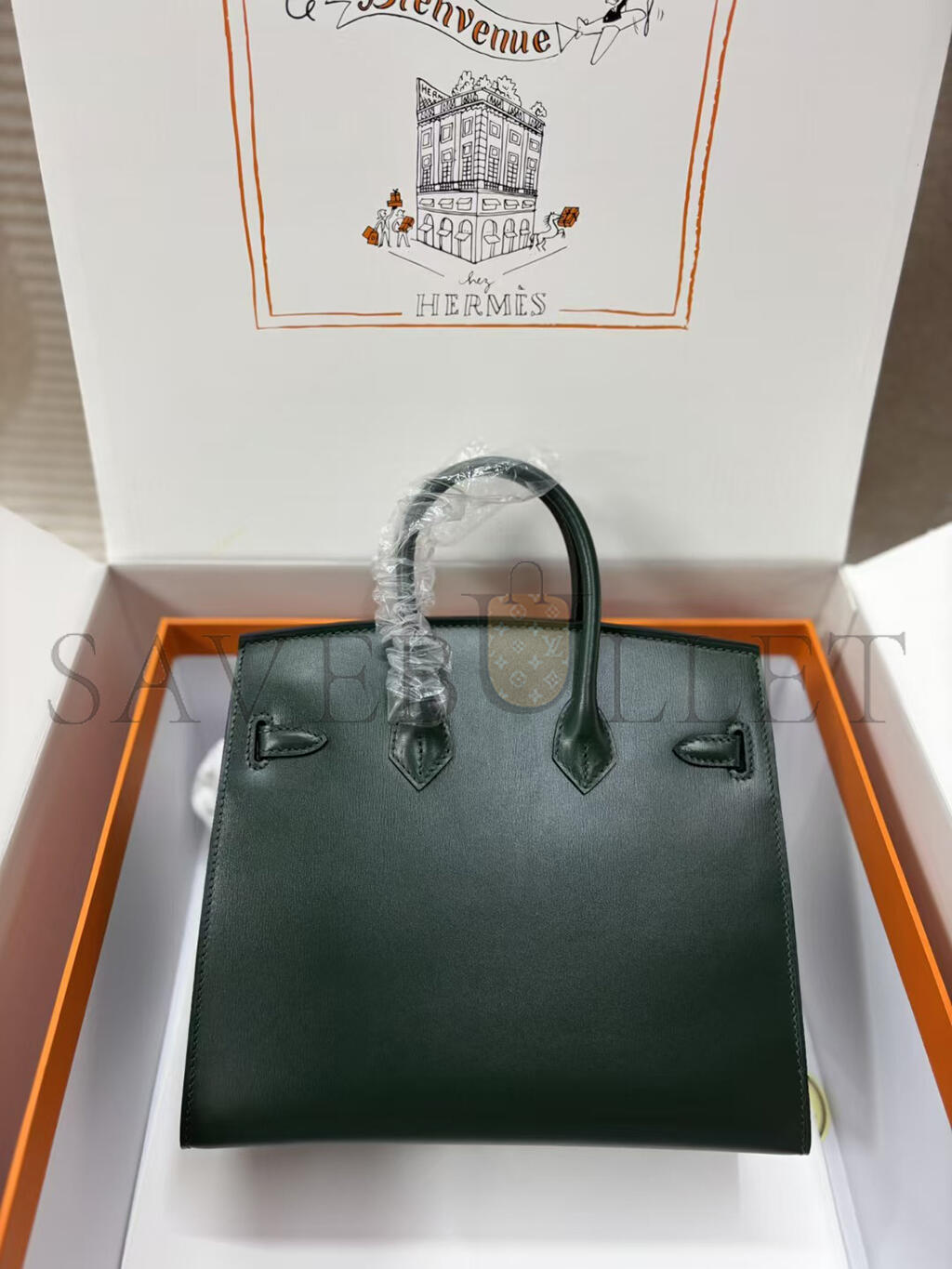 HERMÈS BIRKIN 25 SELLIER VERT FONCE BOX CALF PALLADIUM HARDWARE (25*20*13cm)