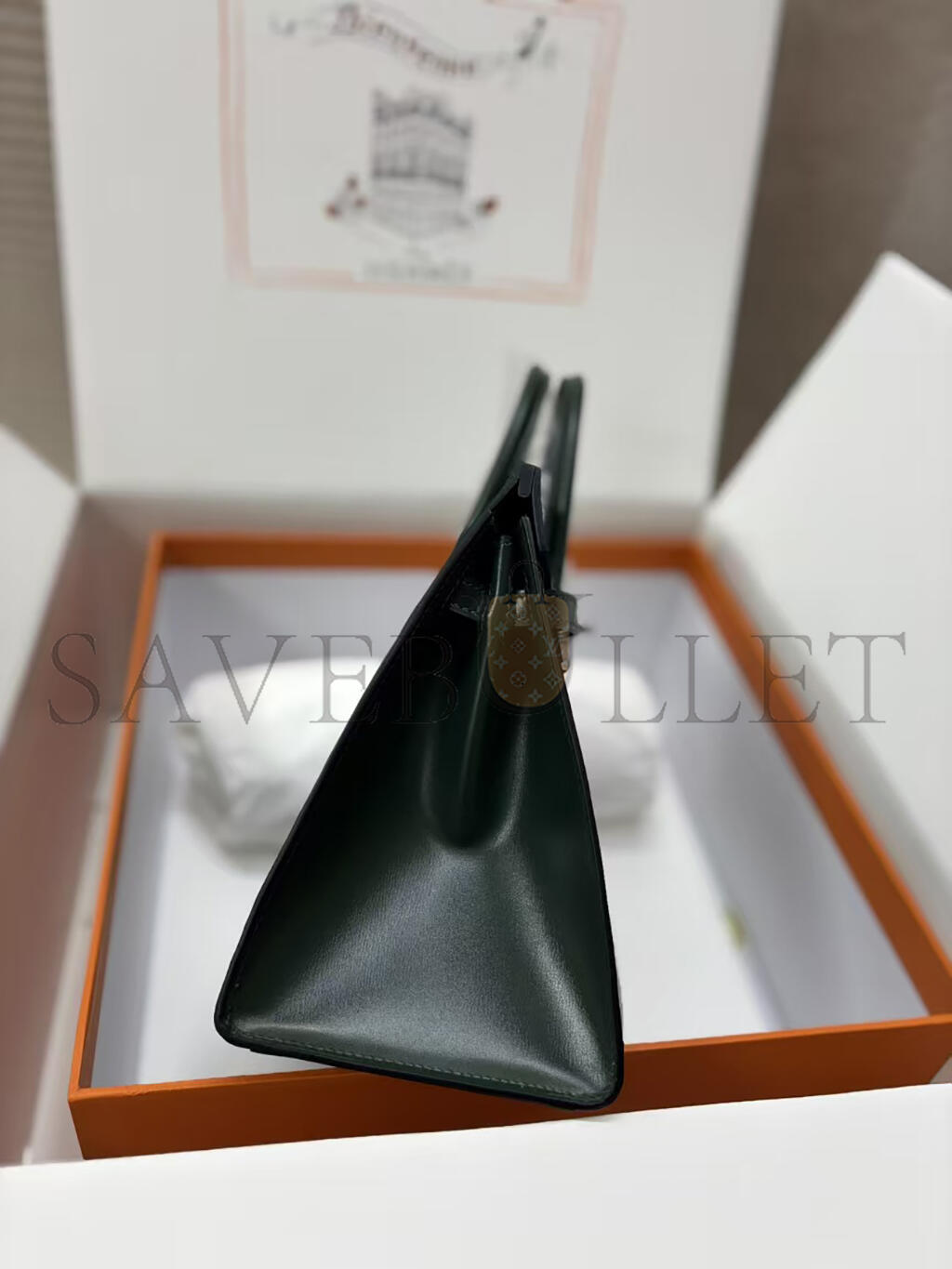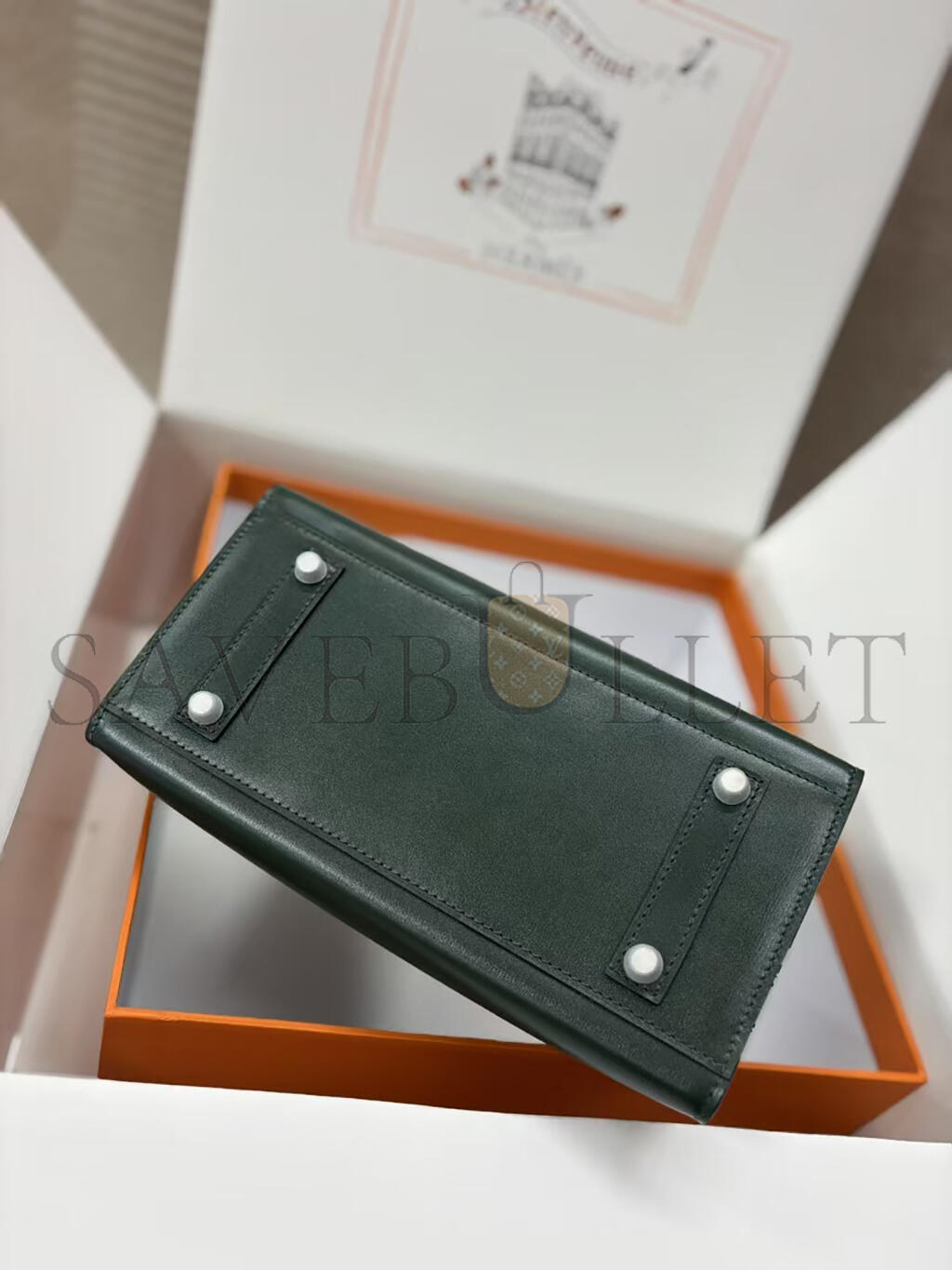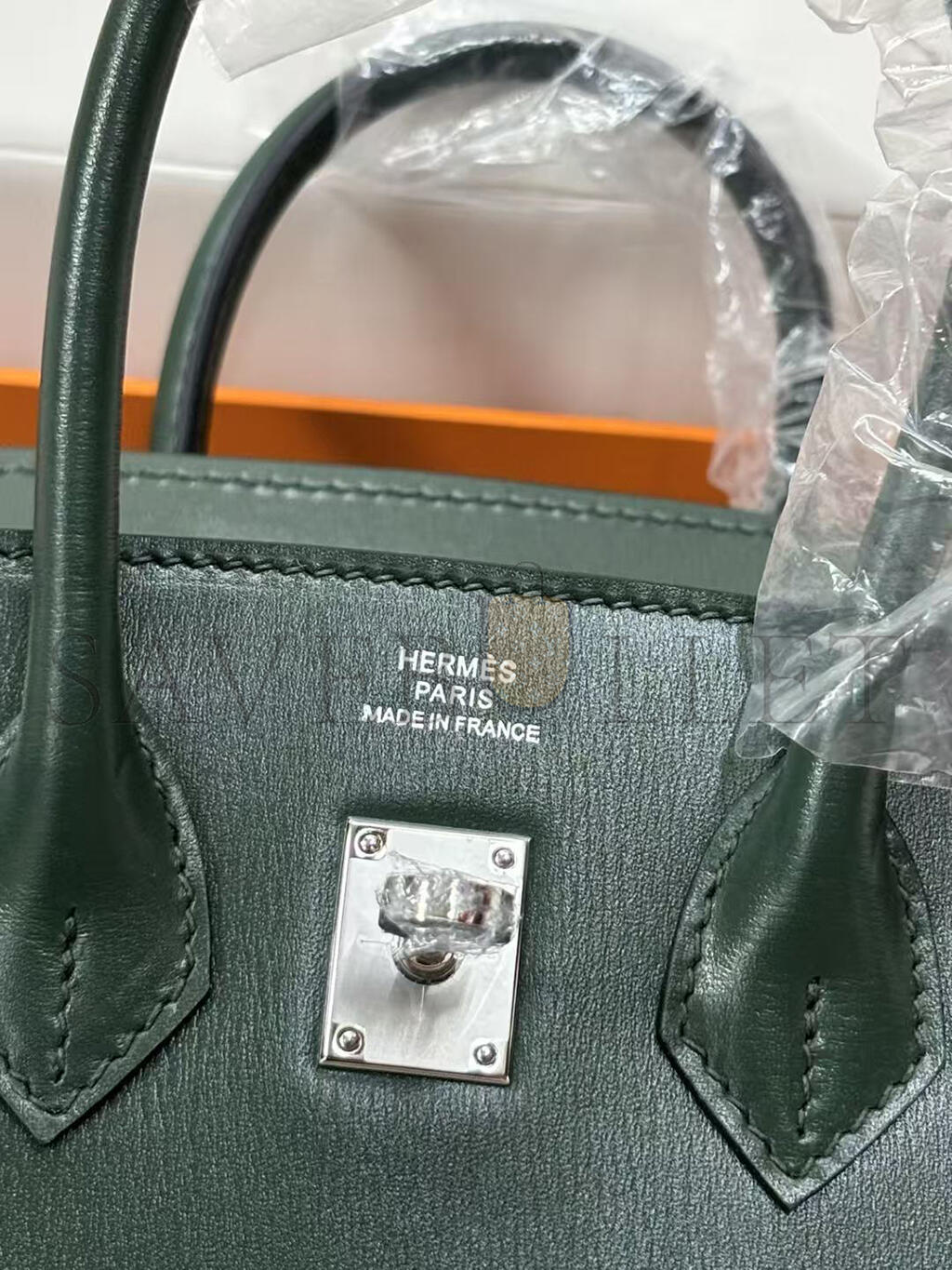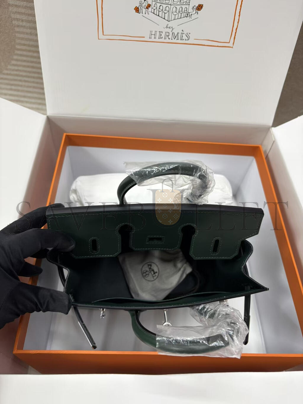 HERMÈS BIRKIN 25 SELLIER VERT FONCE BOX CALF PALLADIUM HARDWARE (25*20*13cm)